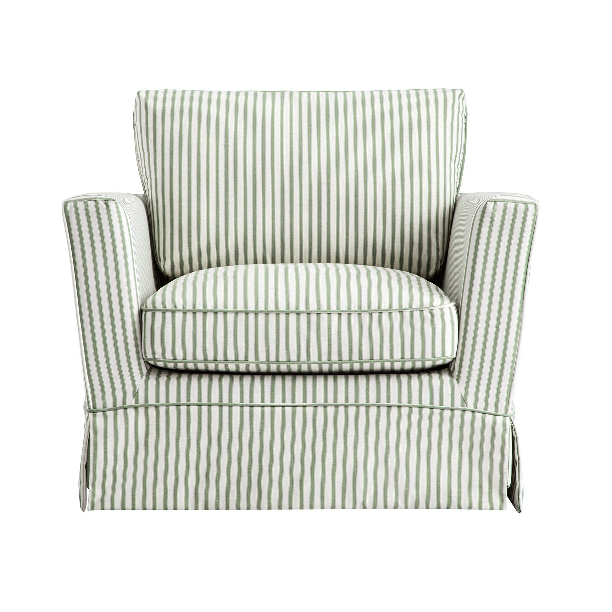 Fitz Skirted Armchair, Sage Striped Linen Blend
