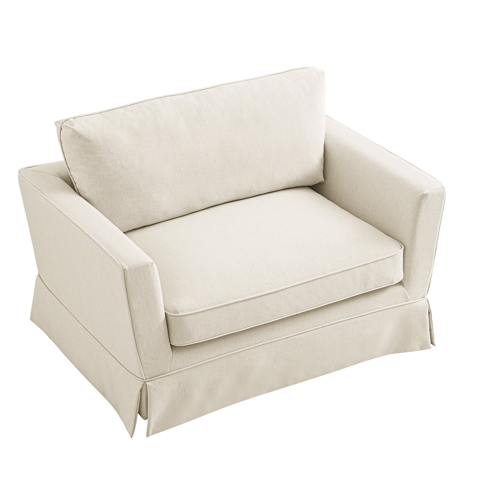 Fitz Skirted Loveseat, Oatmeal Linen Blend