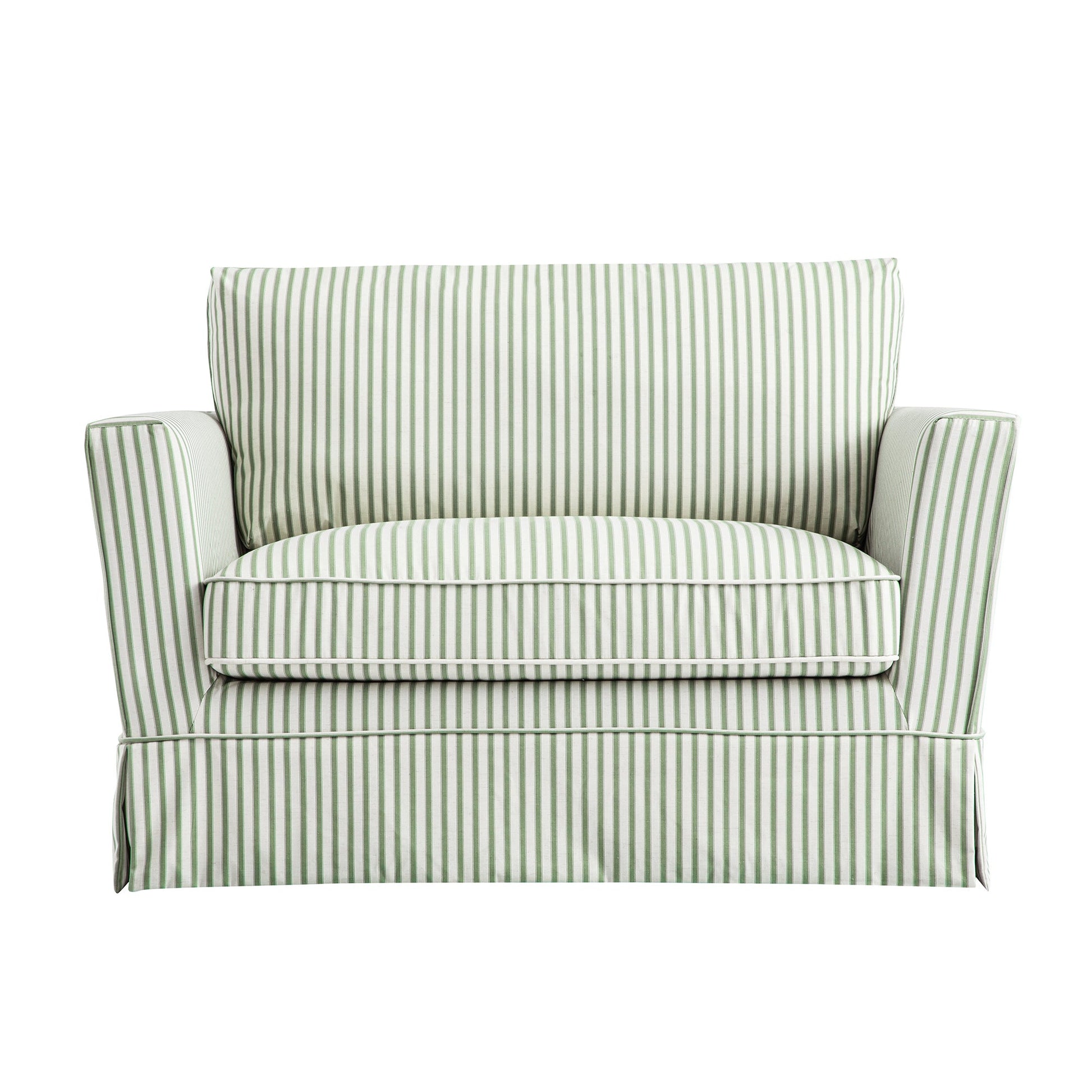 Fitz Skirted Loveseat, Sage Striped Linen Blend