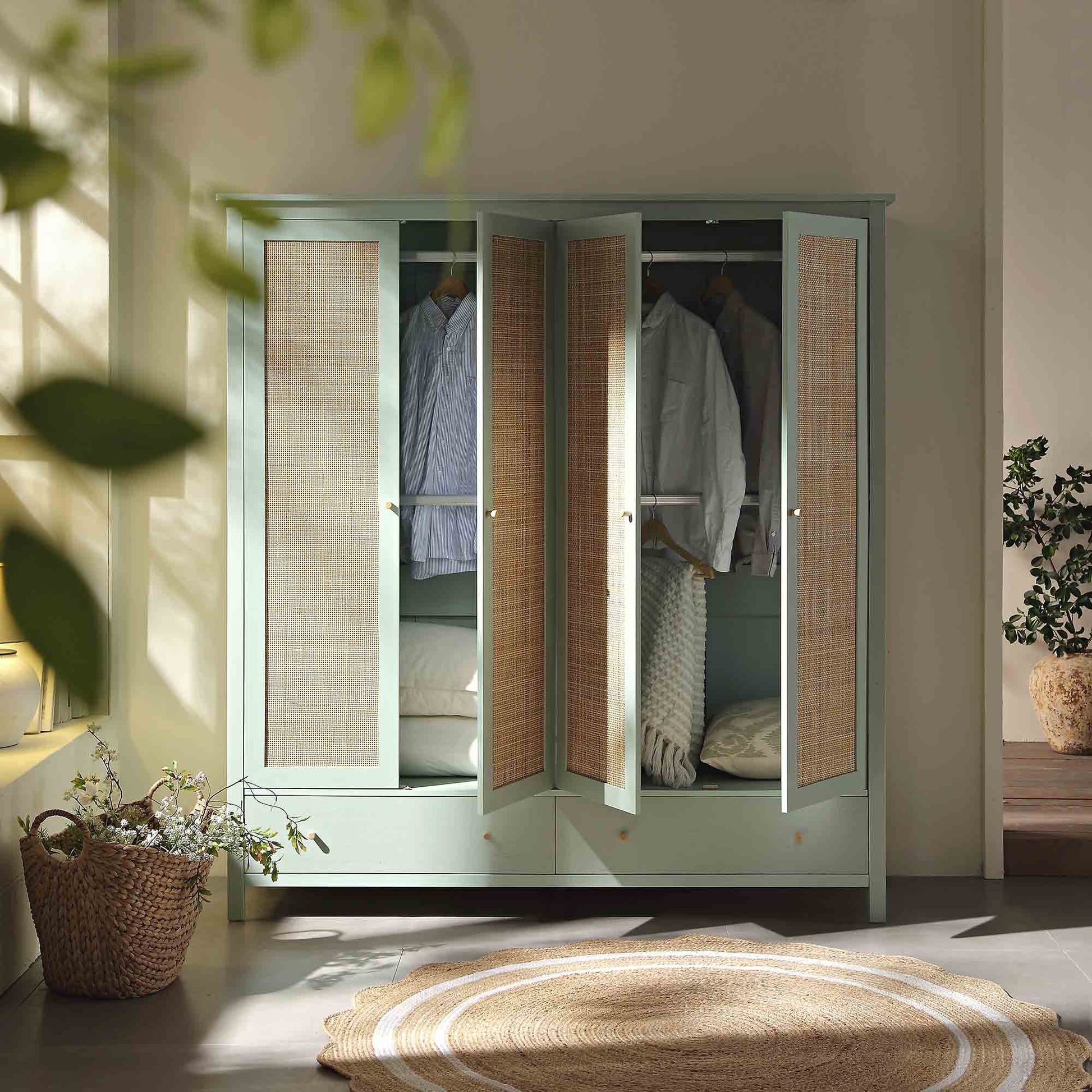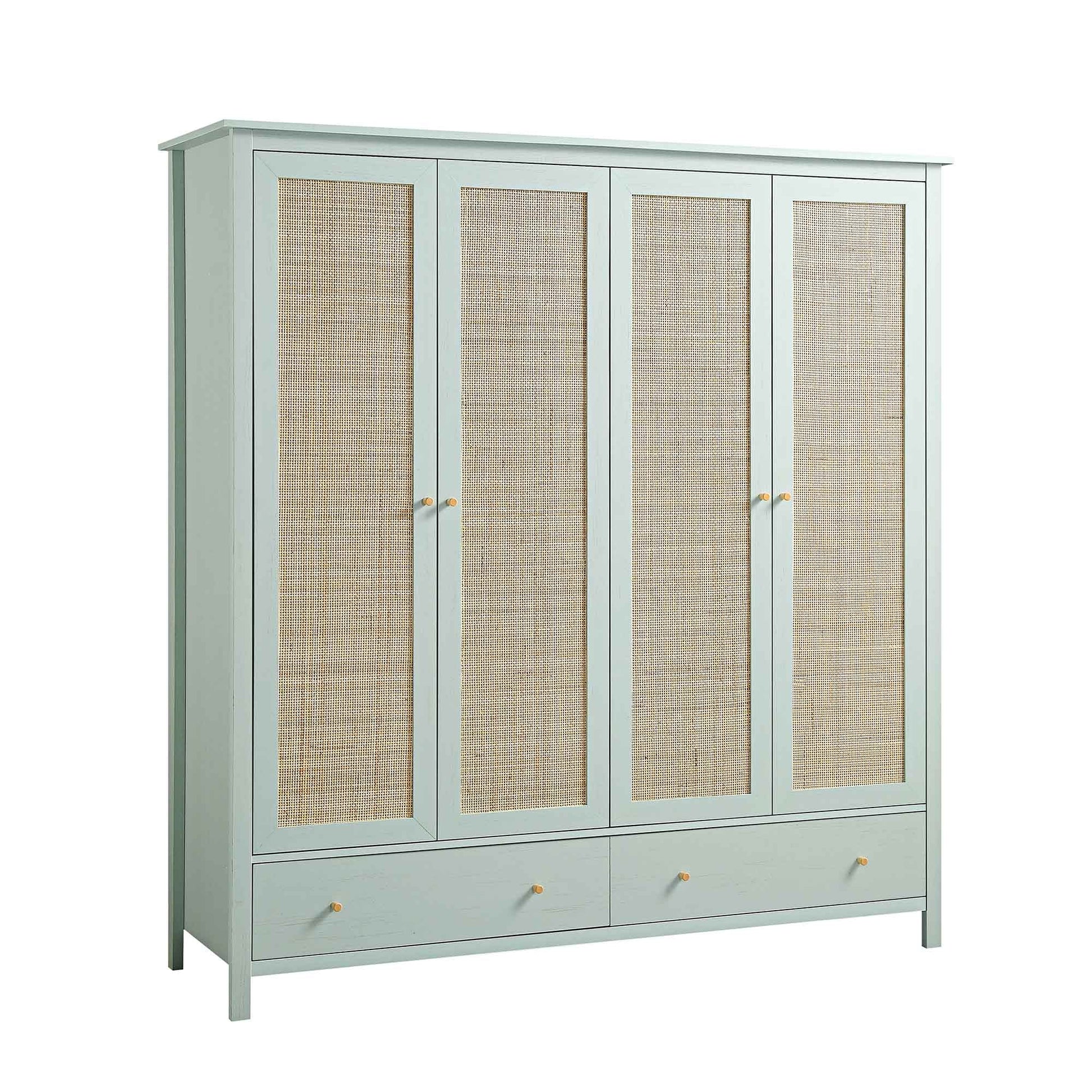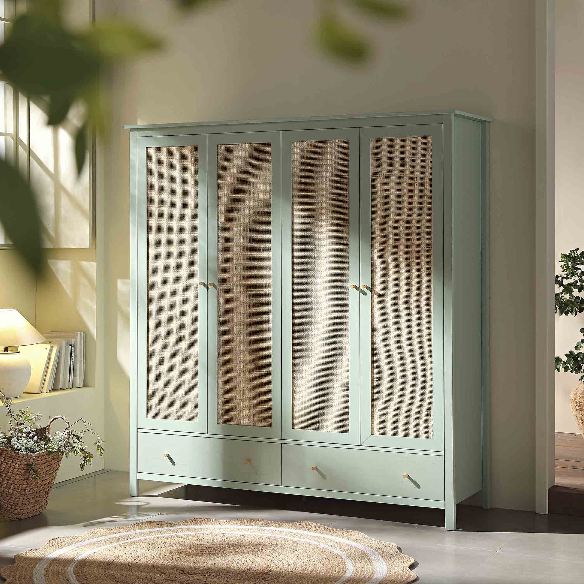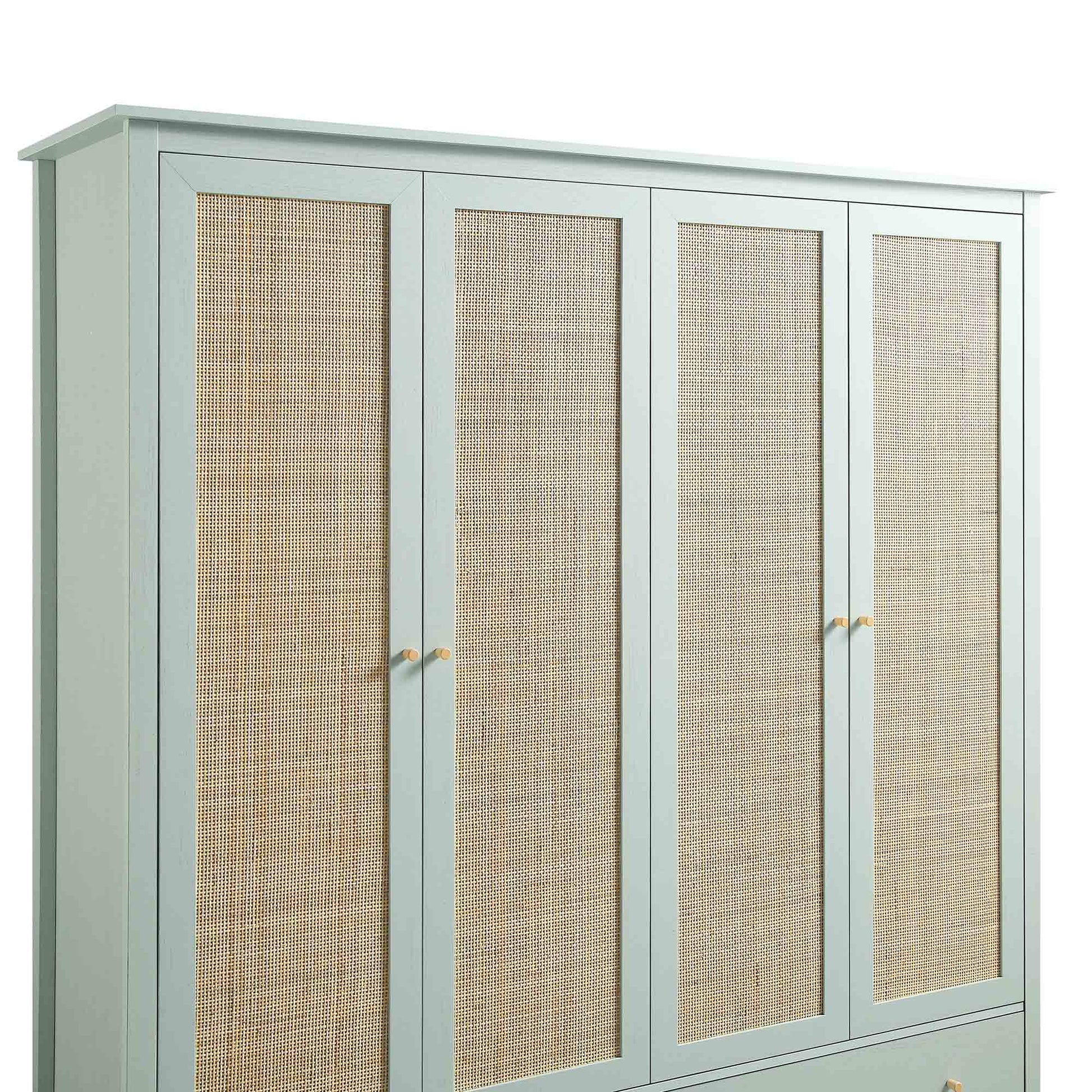 Frances Rattan 4-Door Wardrobe with 2 Drawers, Mint