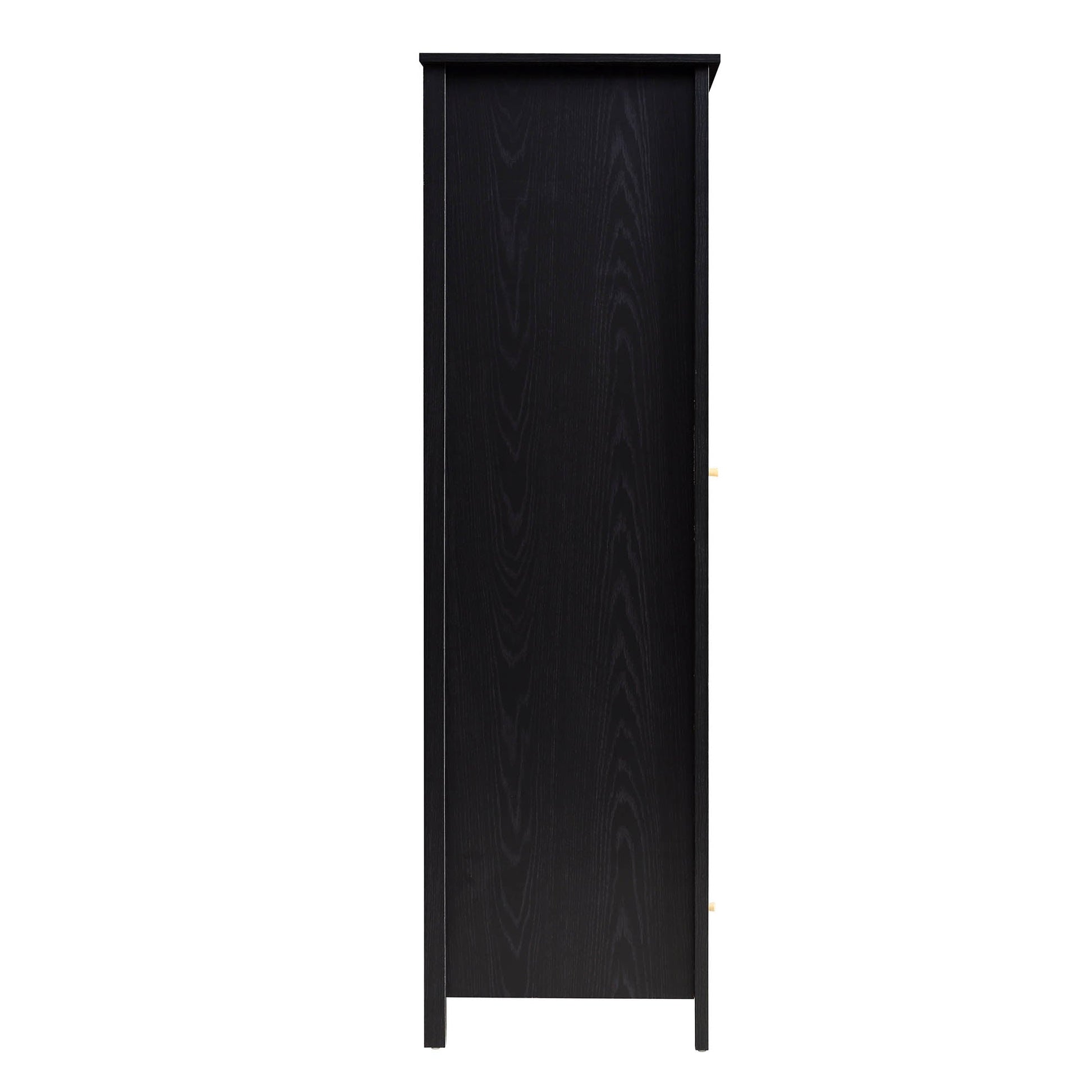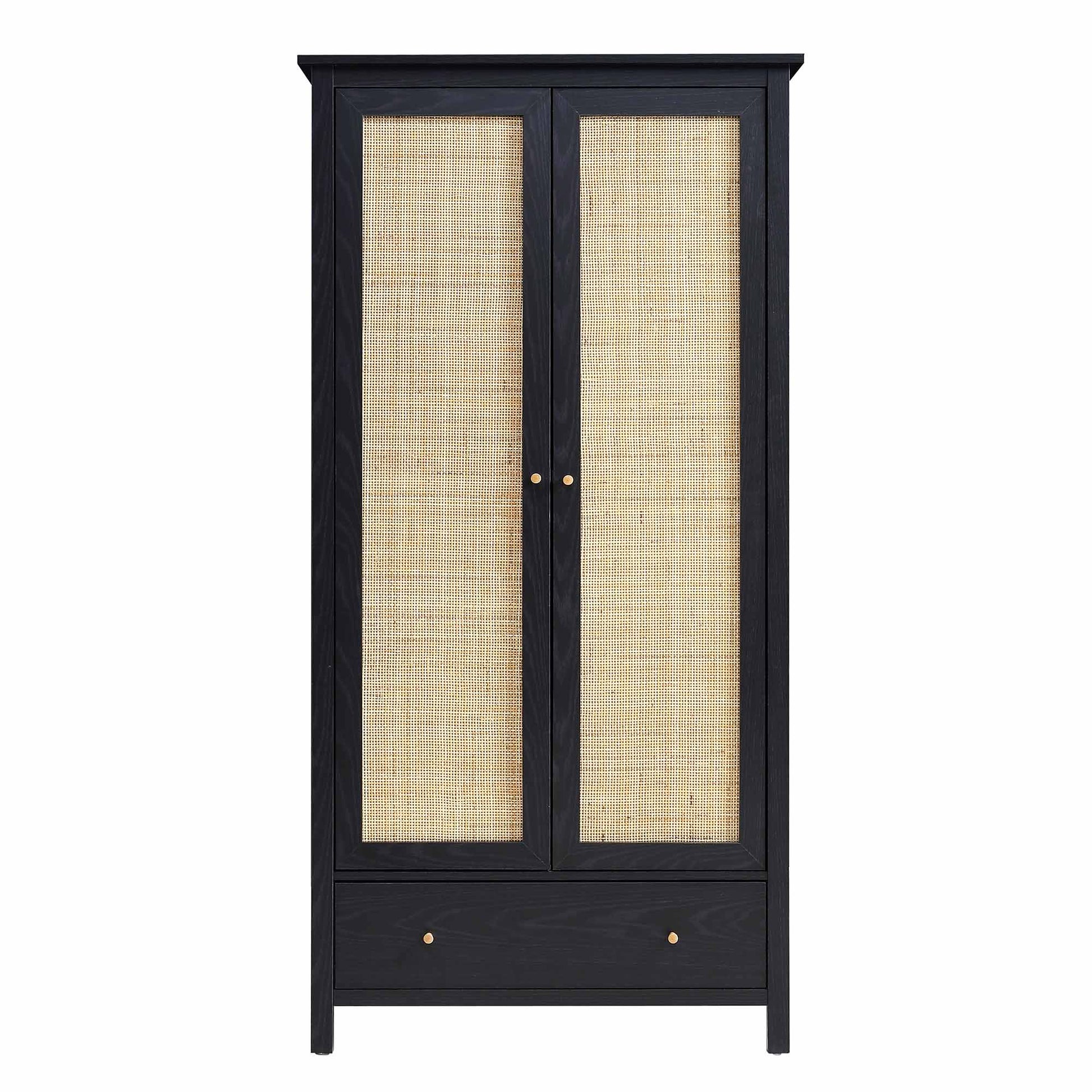Frances Rattan Double Wardrobe with 1 Drawer, Black