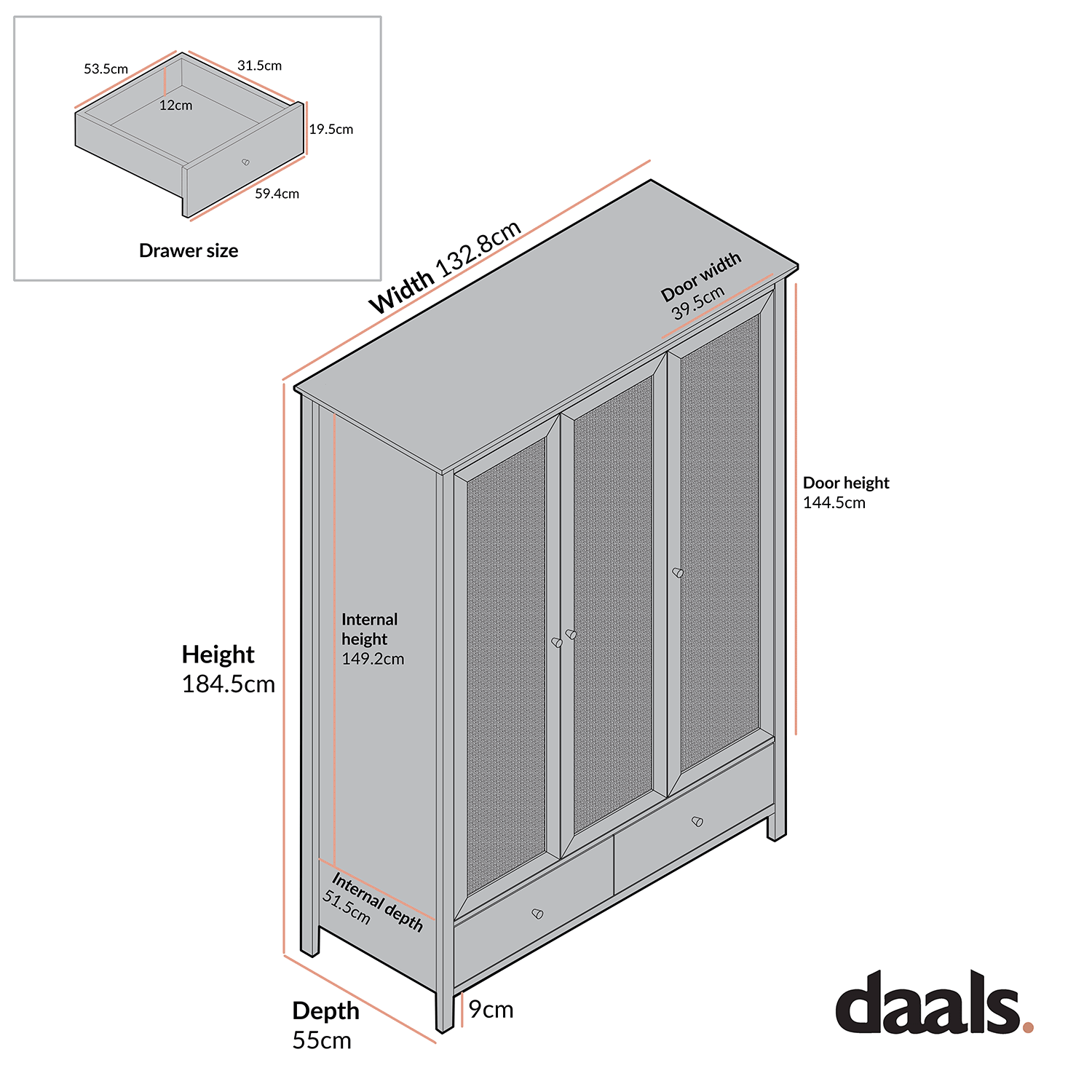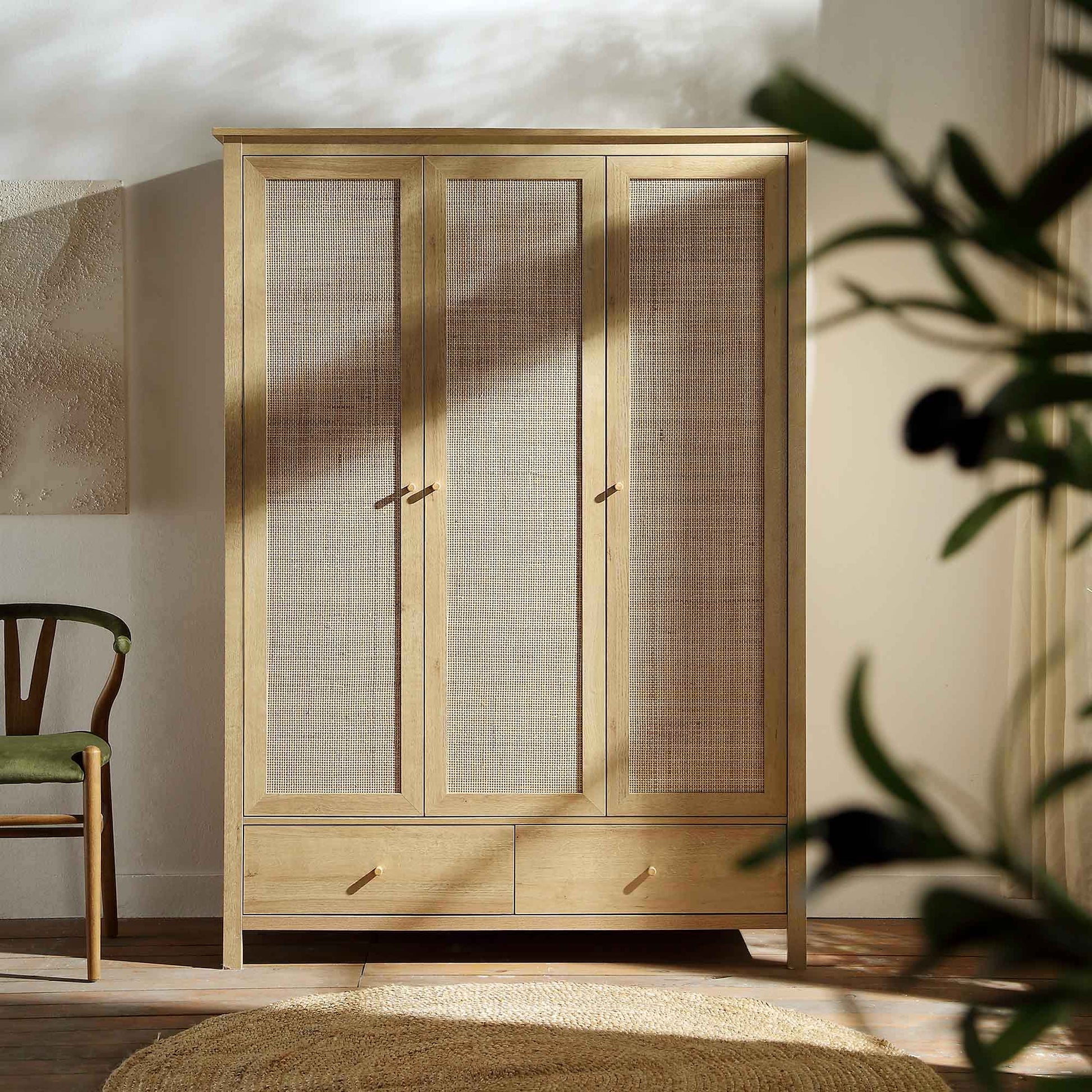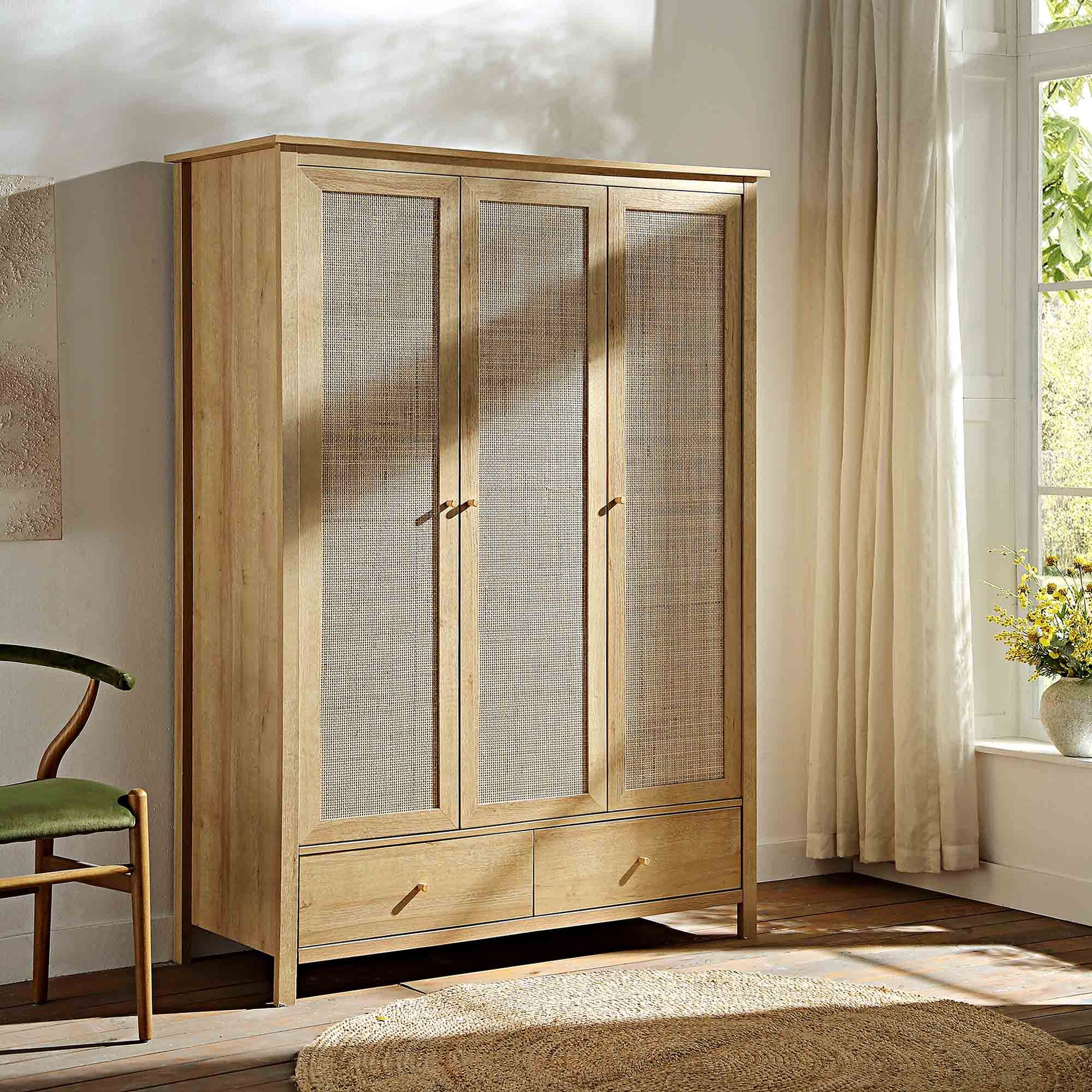 Frances Rattan Triple Wardrobe with 2 Drawers, Natural