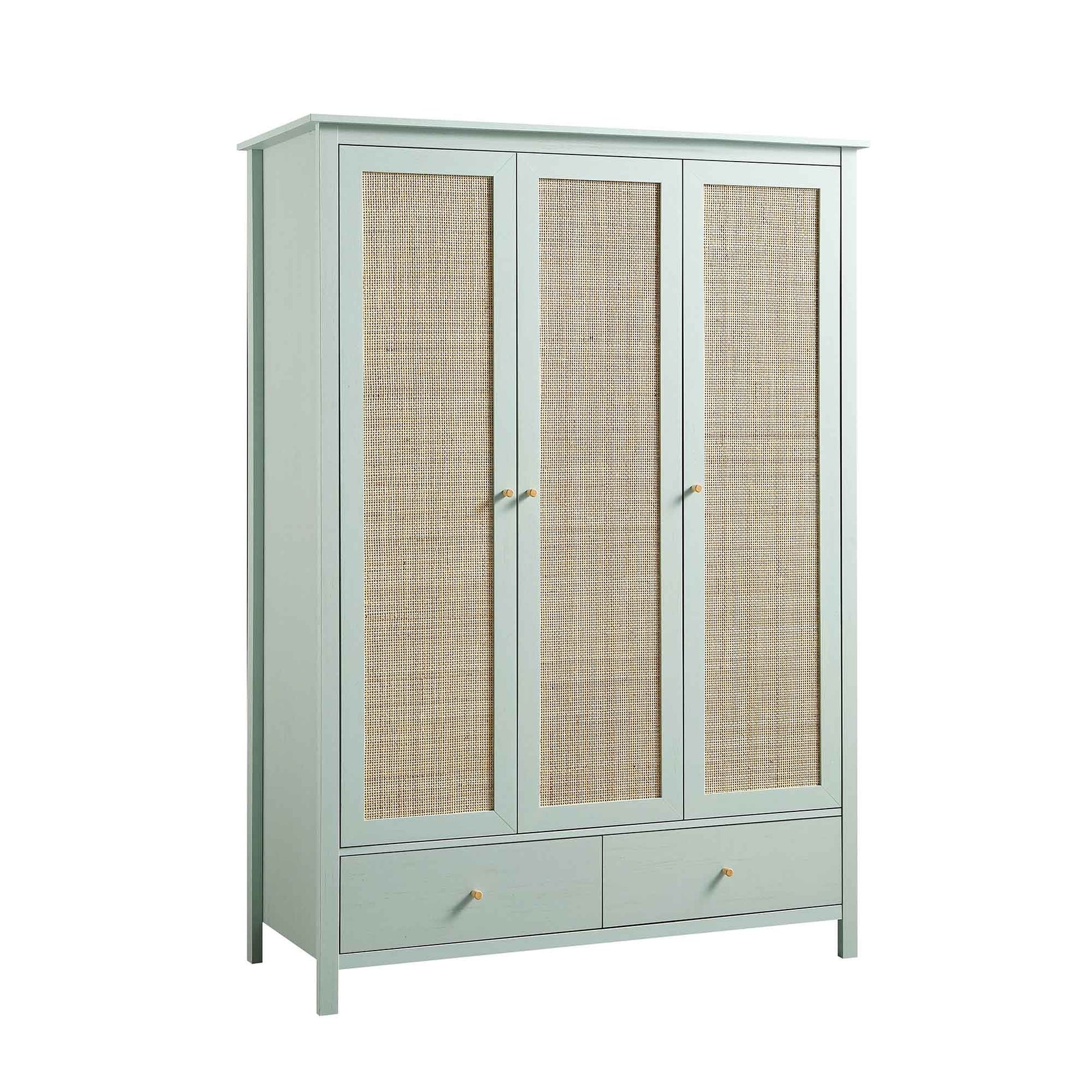 Frances Rattan Triple Wardrobe with 2 Drawers, Mint