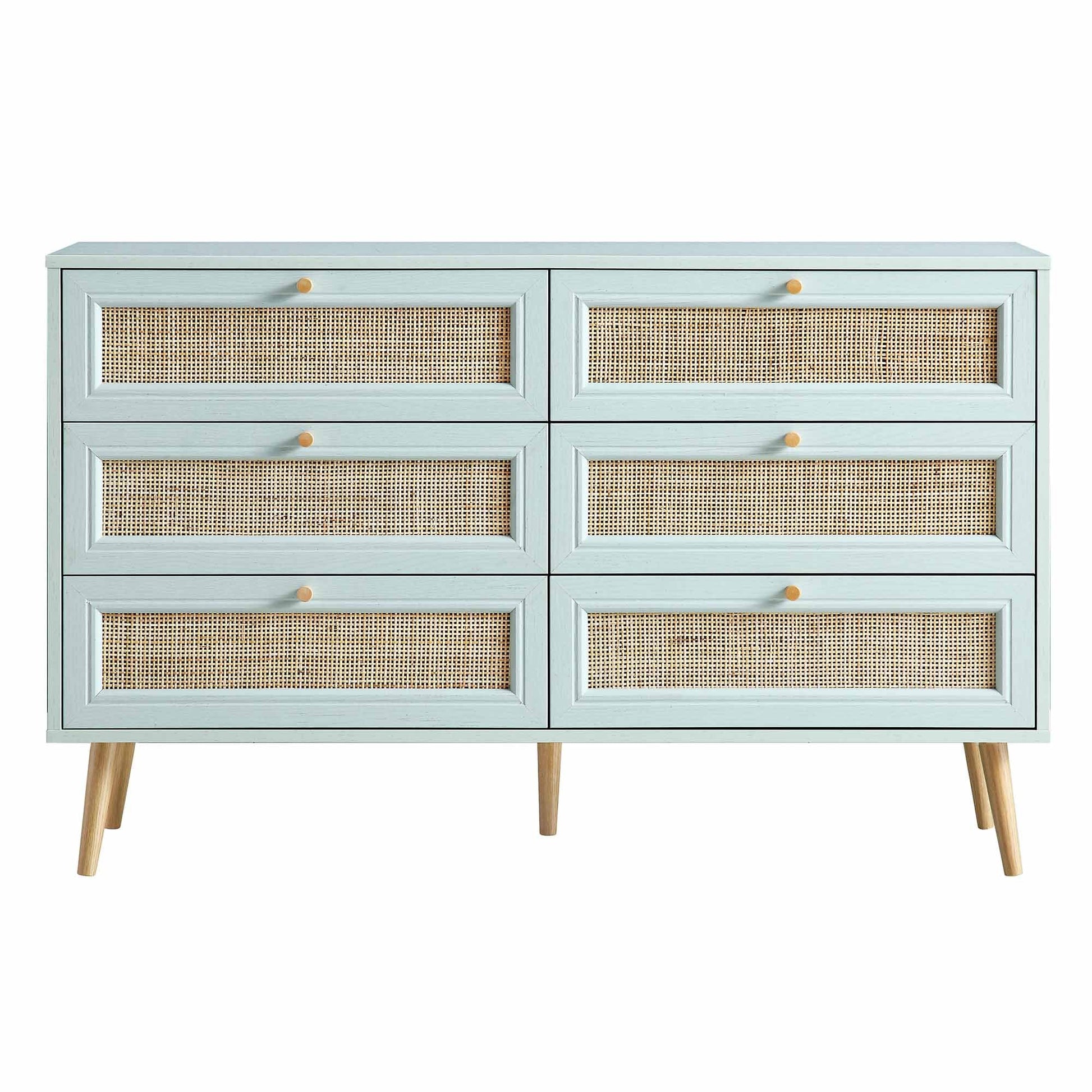 Frances Woven Rattan Chest of 6 Drawers, Mint