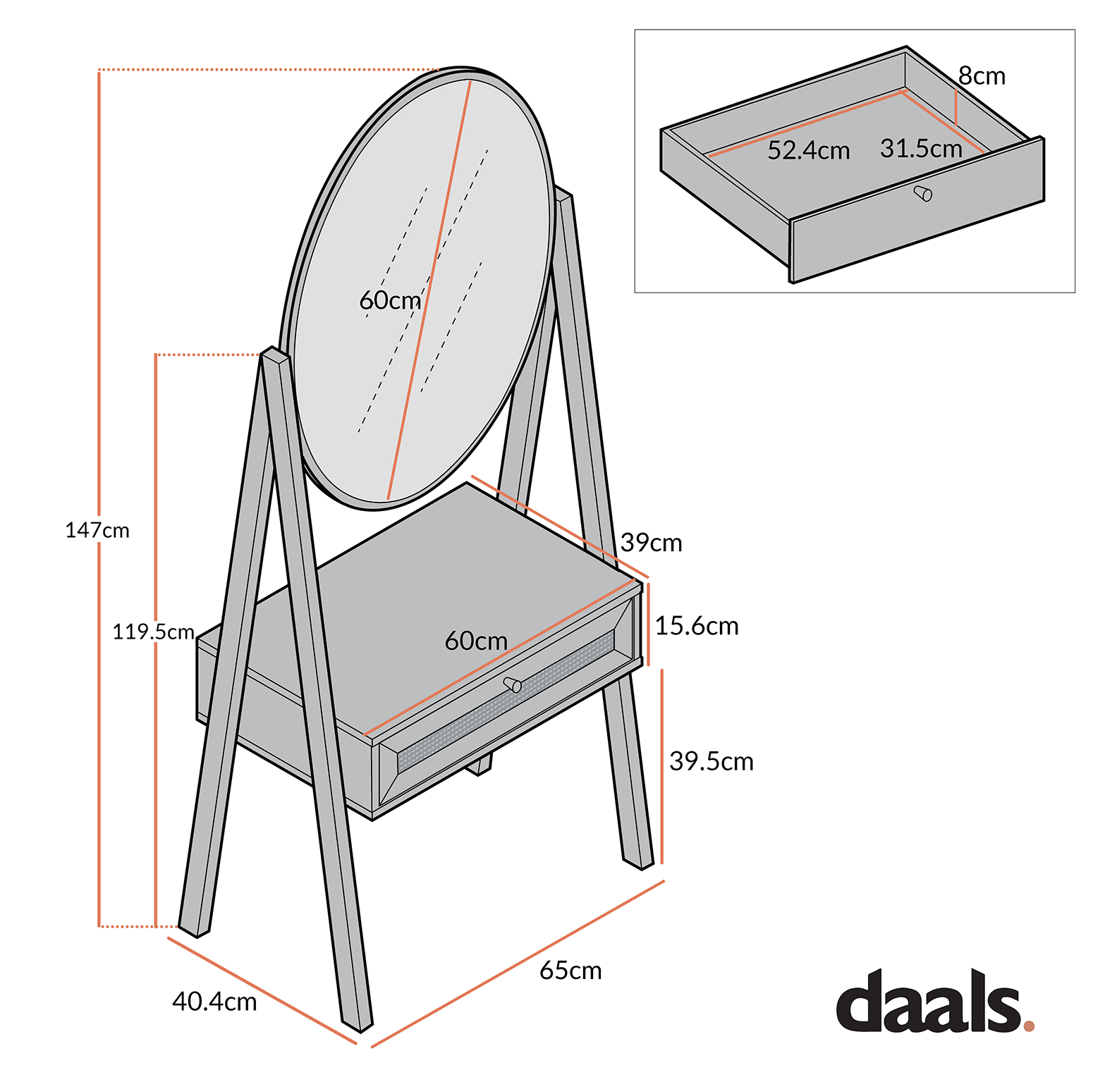Frances Woven Rattan Standing Dressing Table with Mirror, Natural