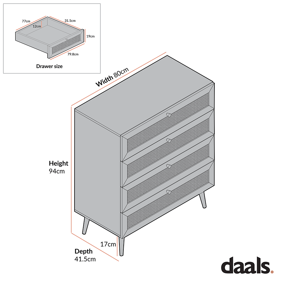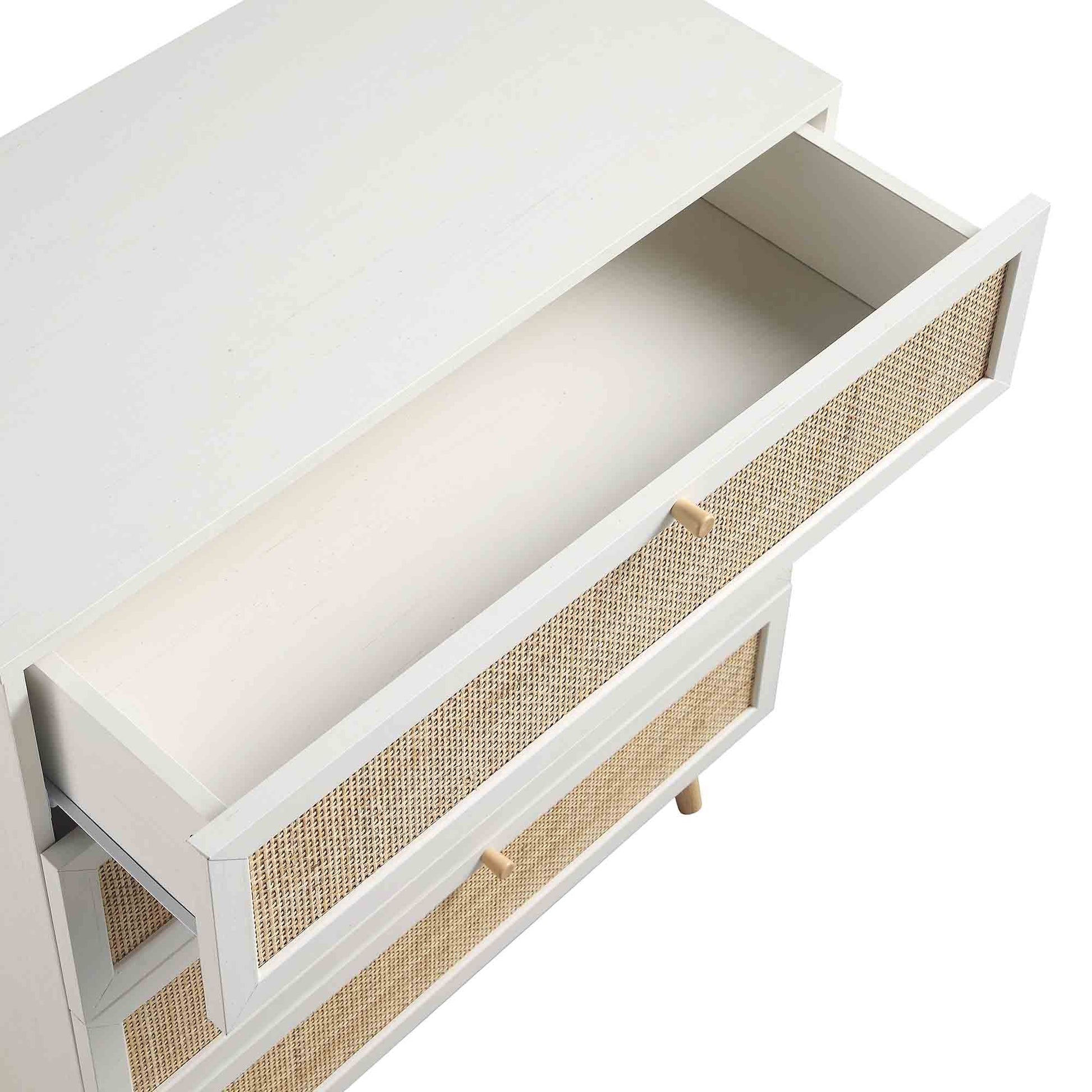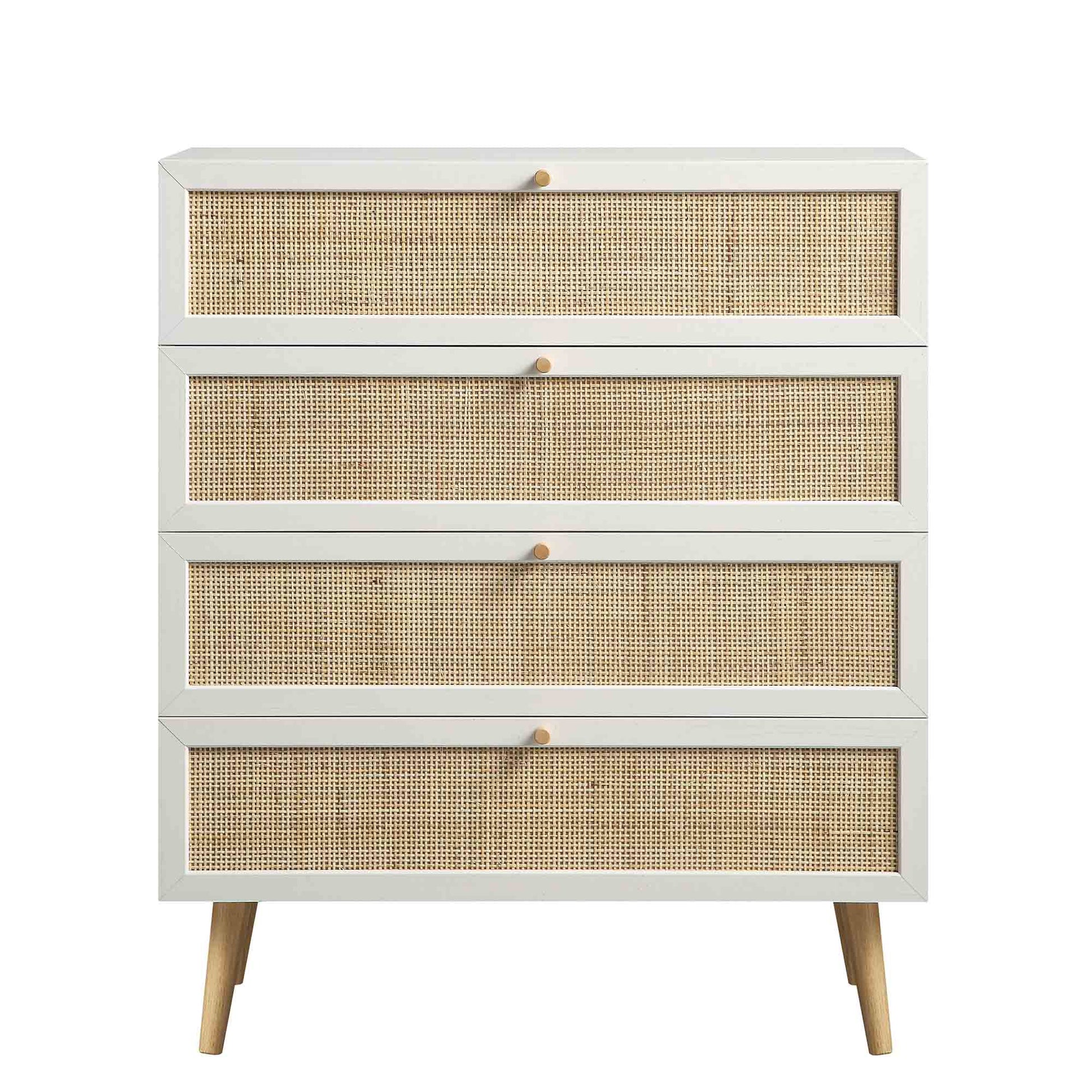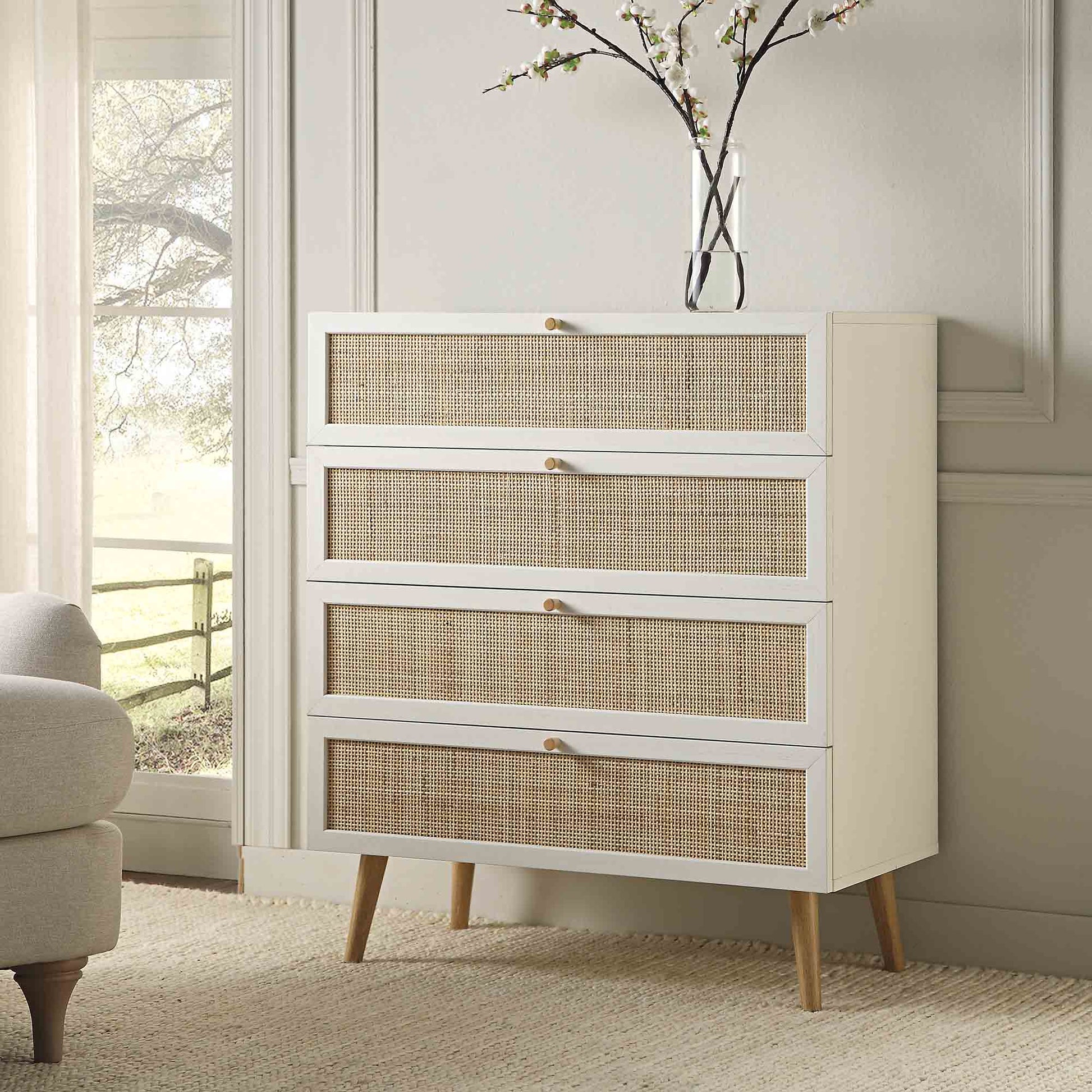 Frances Woven Rattan Tall Chest of 4 Drawers, White