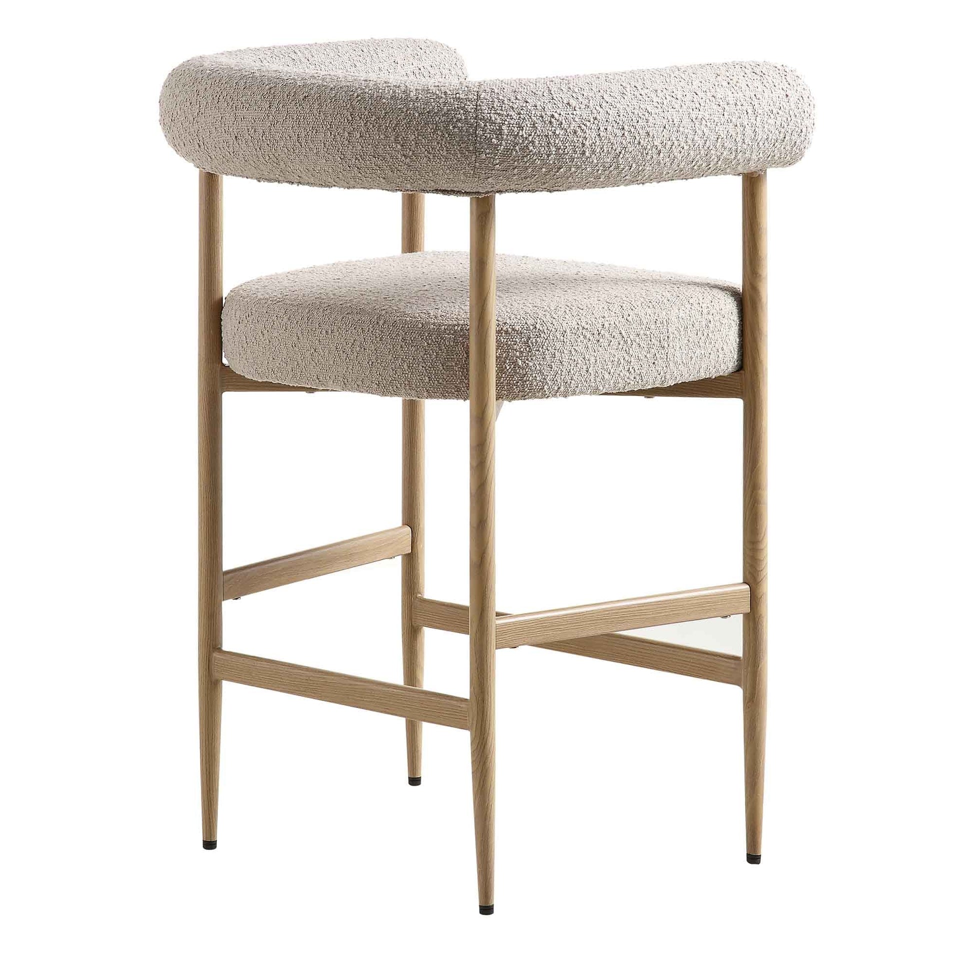 Fulbourn Taupe Boucle Counter Stool with Natural Wood Effect Legs