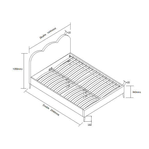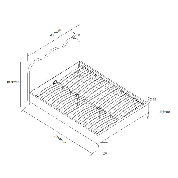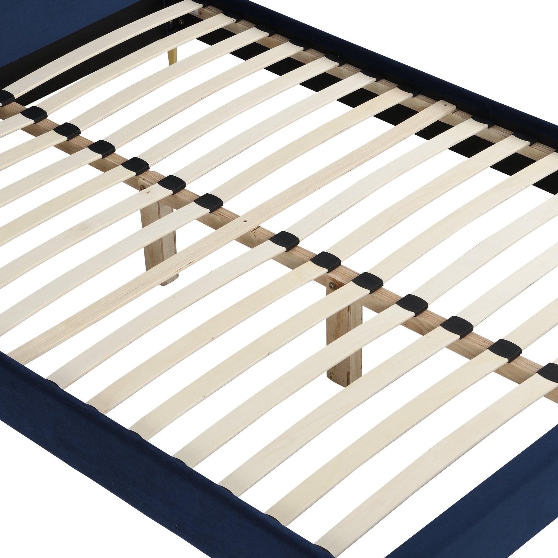 Gidea Velvet Upholstered Bed Frame with Scalloped Headboard & Golden Chrome Legs