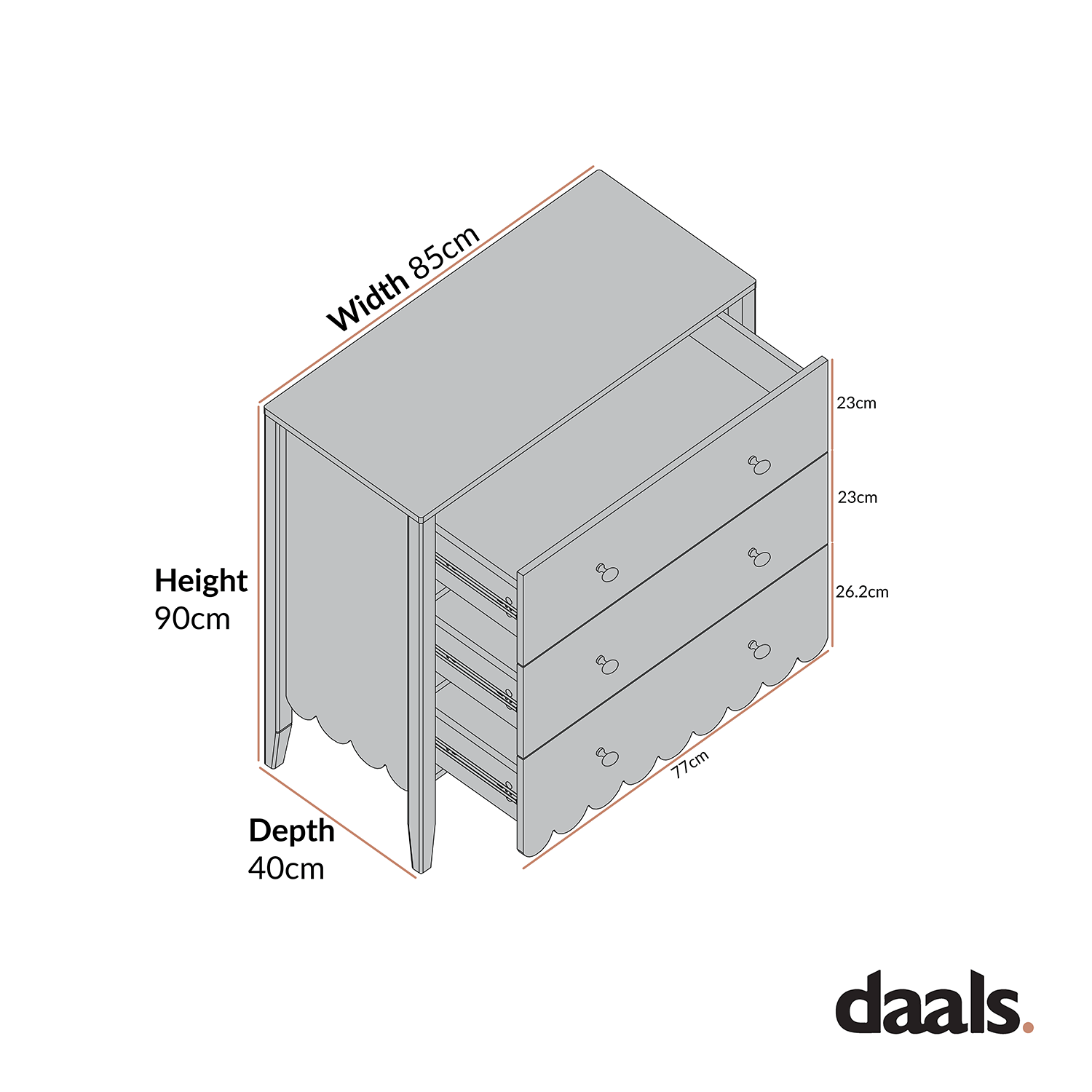 Henley Scalloped Edge 3 Drawer Chest, Blue Spruce