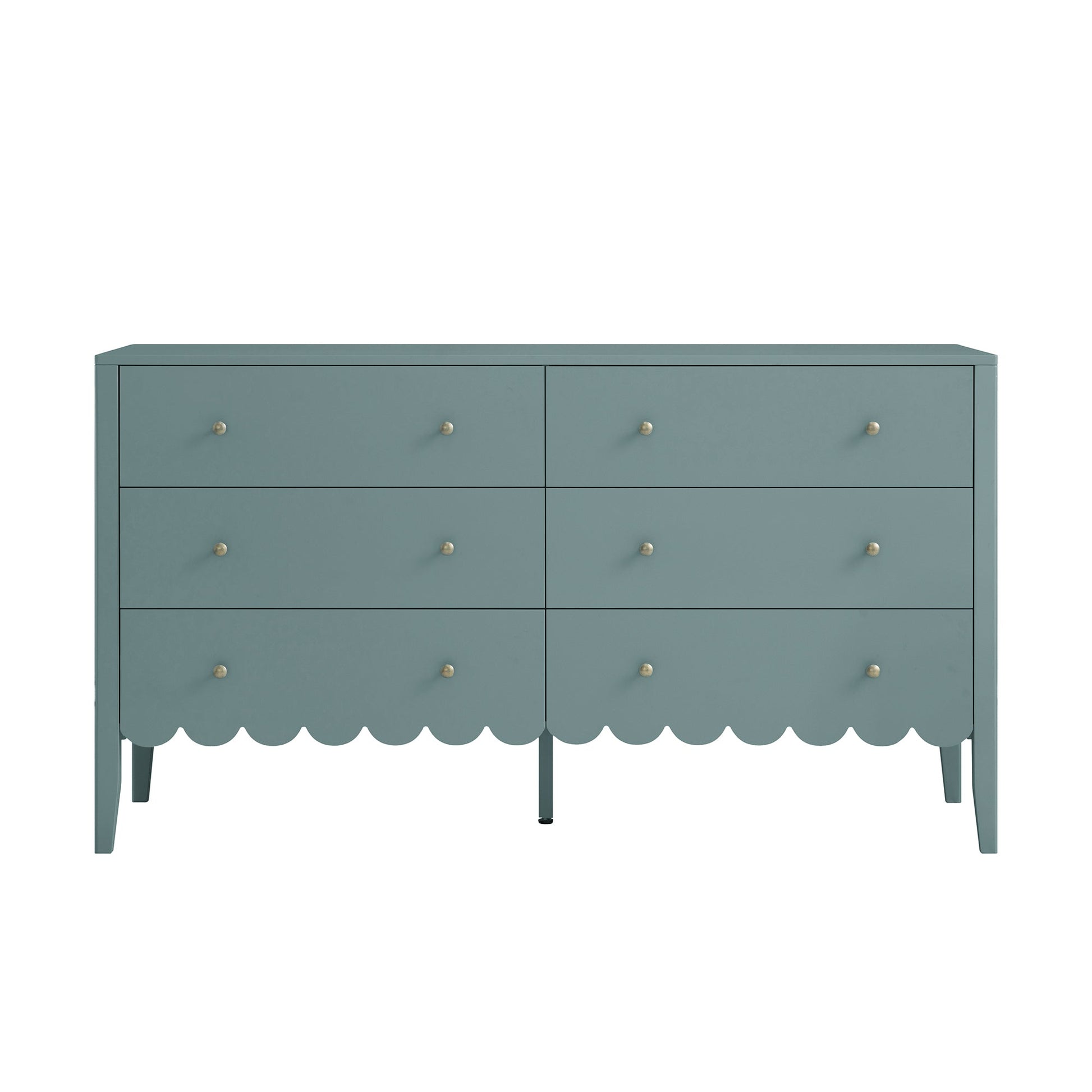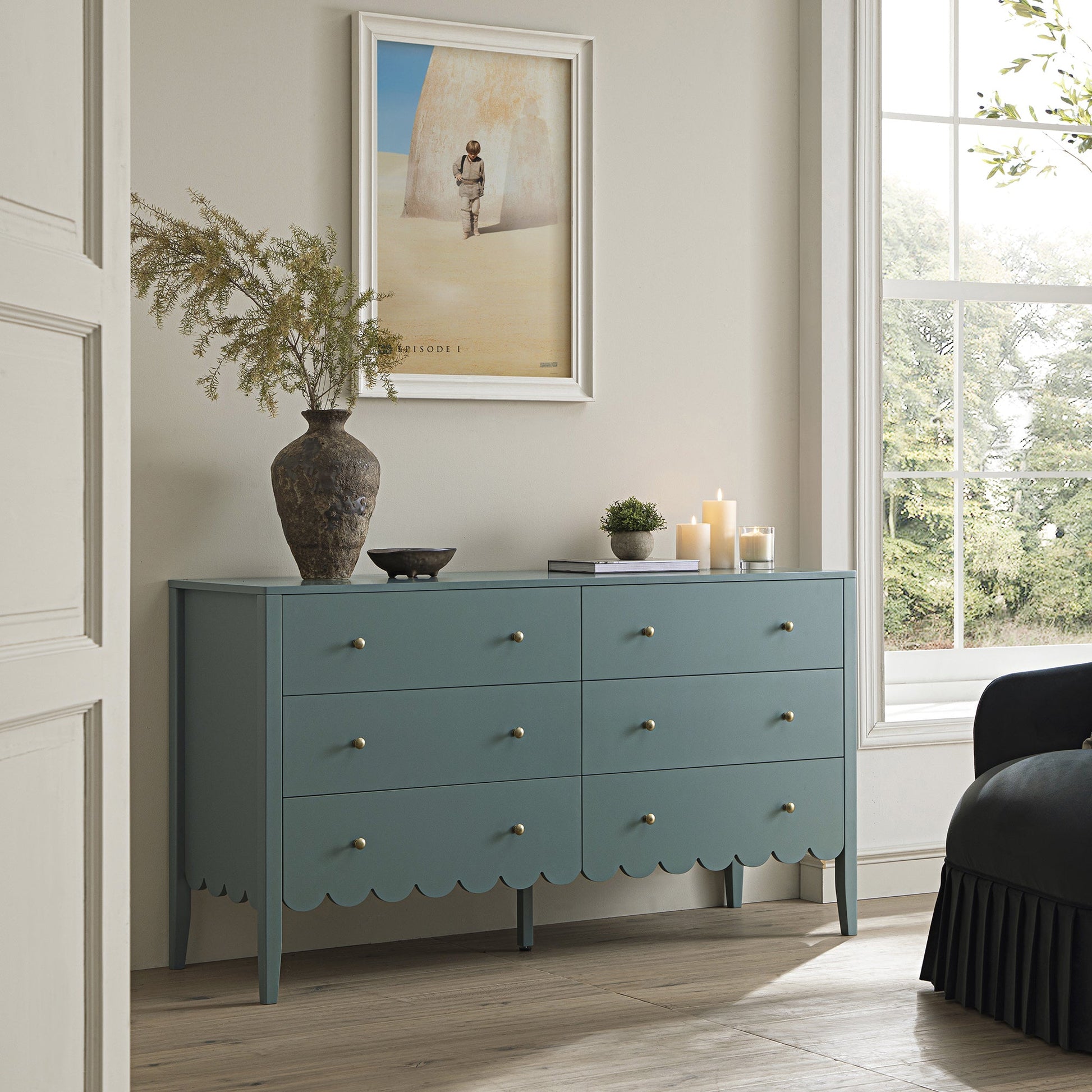 Henley Scalloped Edge 6 Drawer 140cm Wide Chest, Blue Spruce