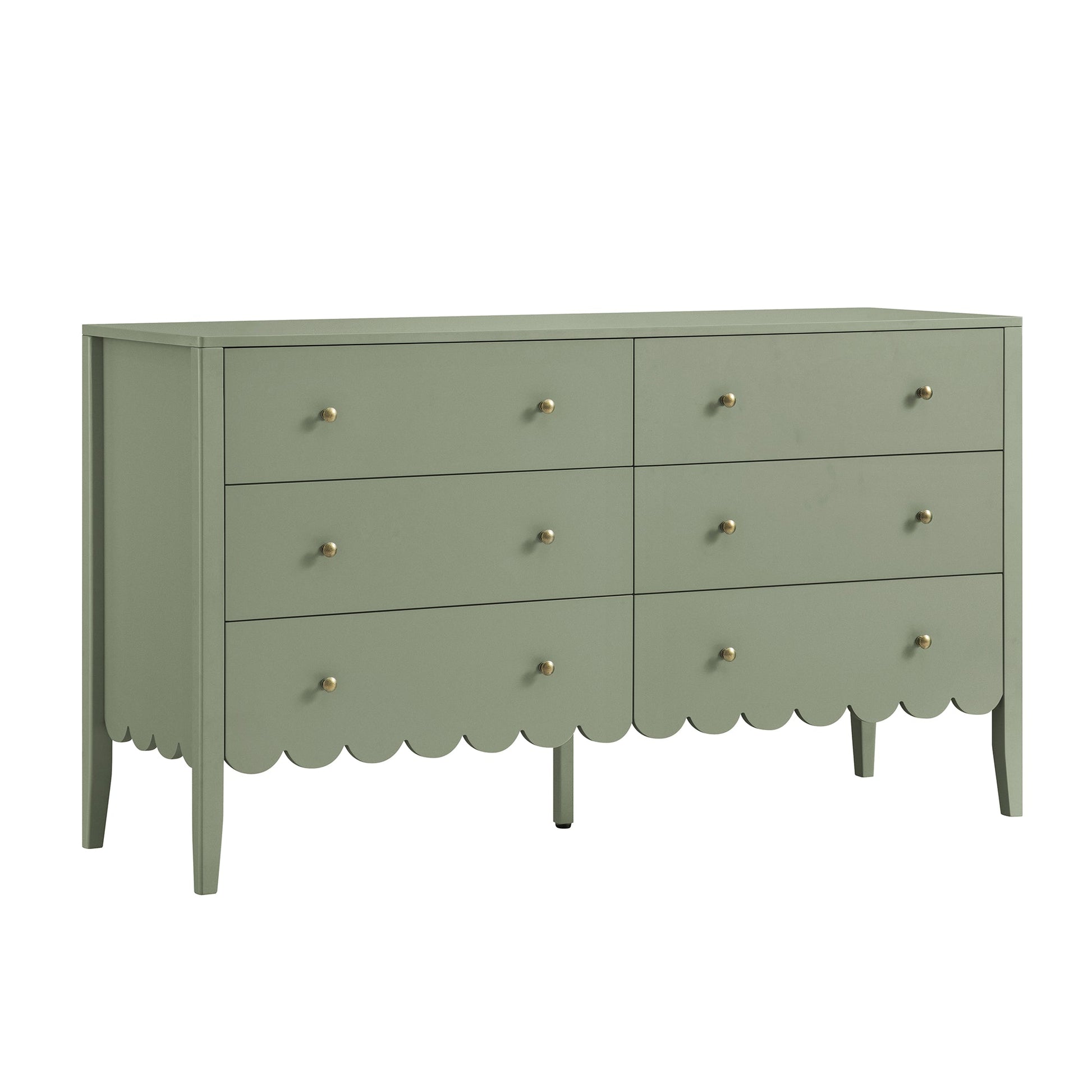 Henley Scalloped Edge 6 Drawer 140cm Wide Chest, Sage Green