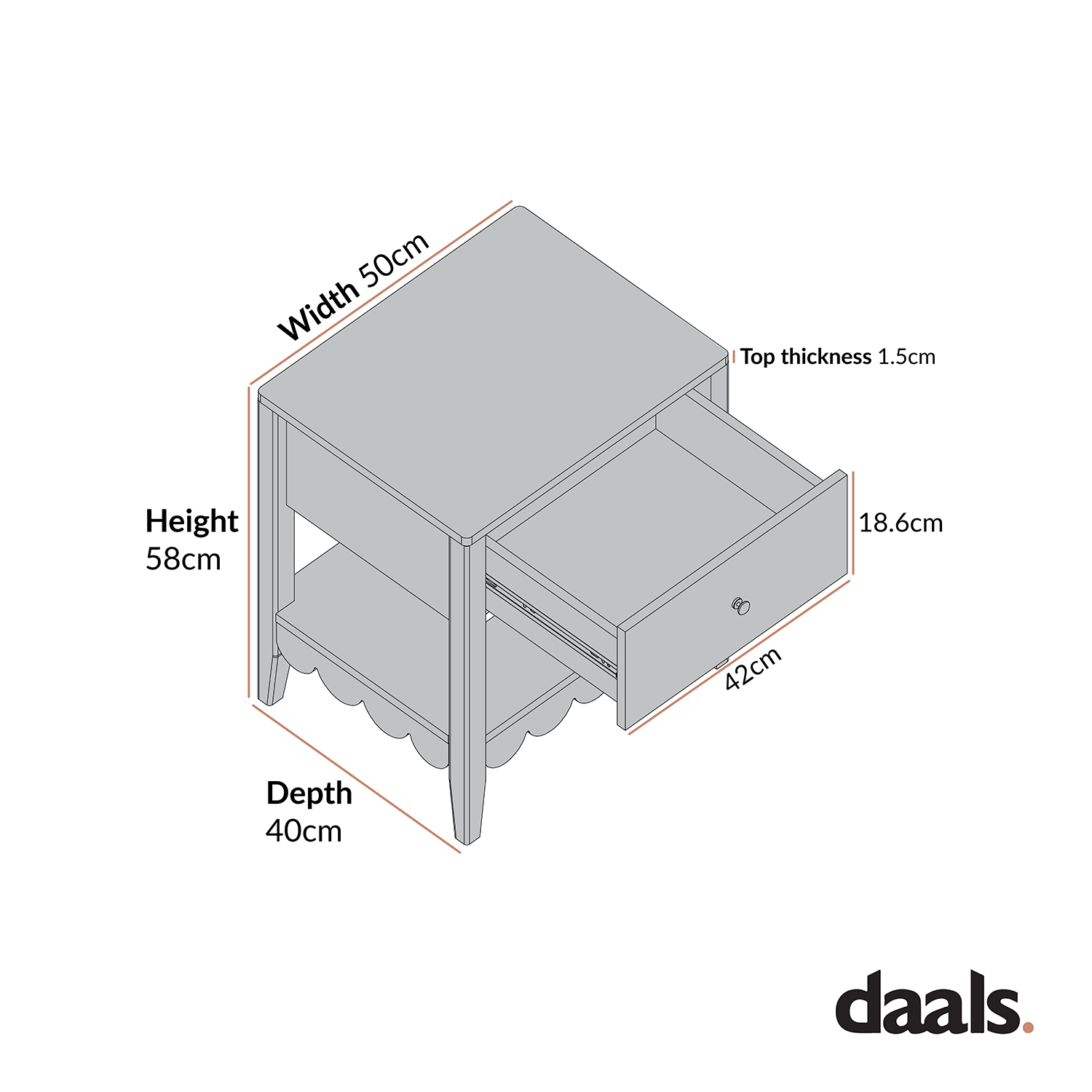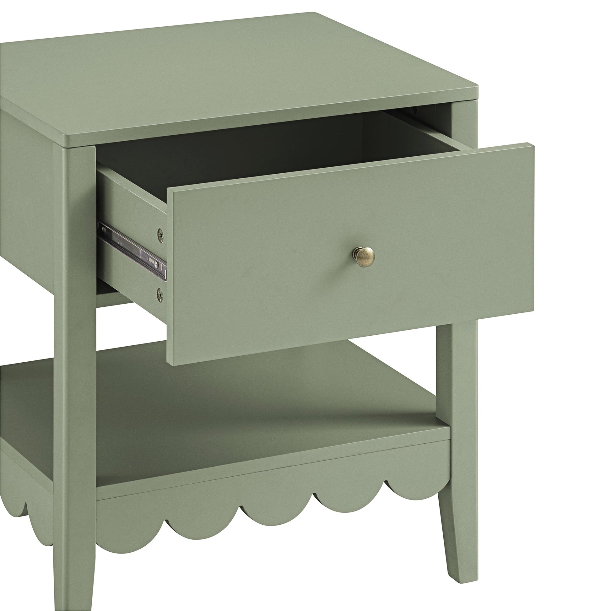 Henley Scalloped Edge Bedside Table with Drawer, Sage Green