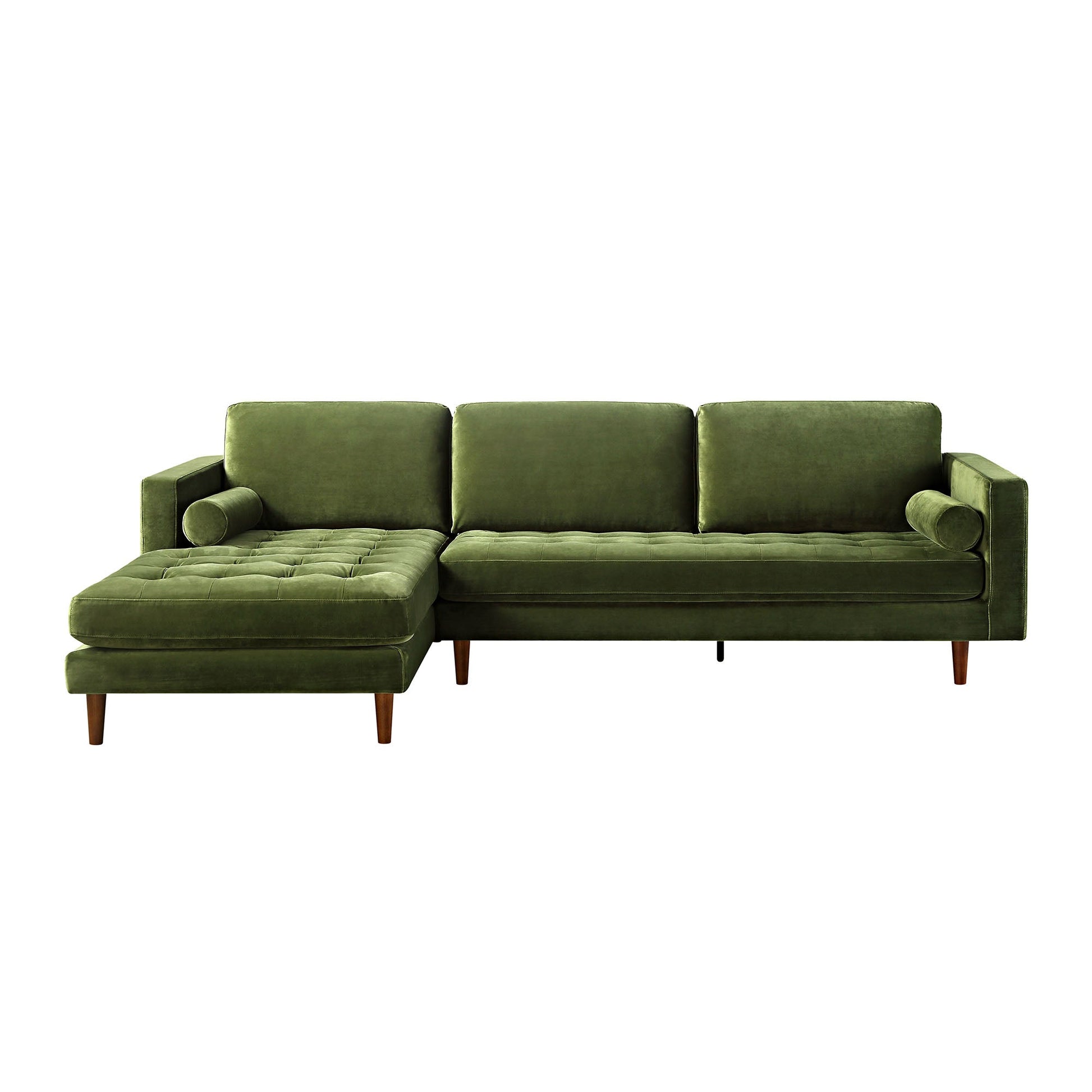 Henrietta Moss Green Velvet Grand 4-Seater Chaise End Sofa, Left Hand Facing