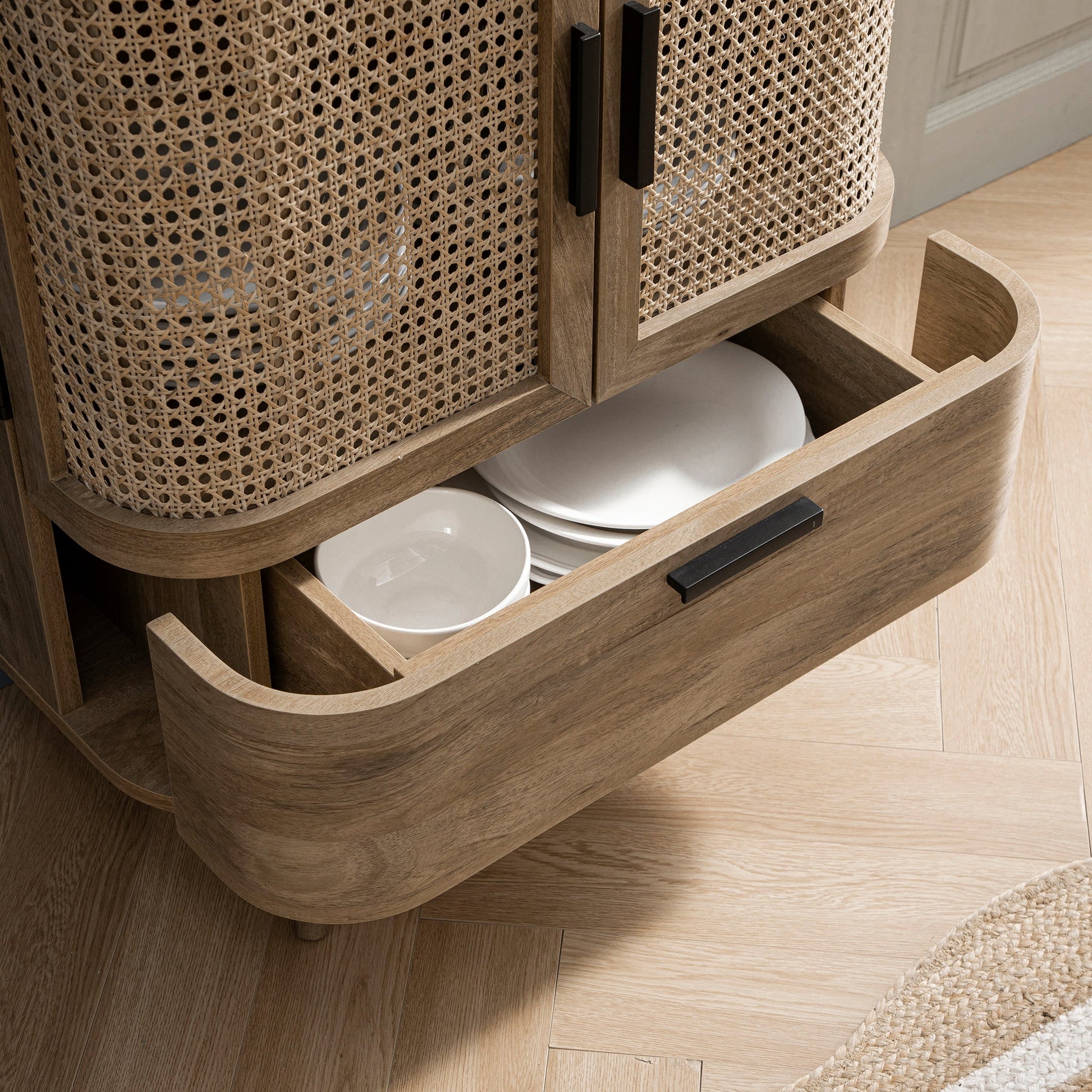 Izzy Curved Rattan 1-Drawer Small Sideboard, Natural