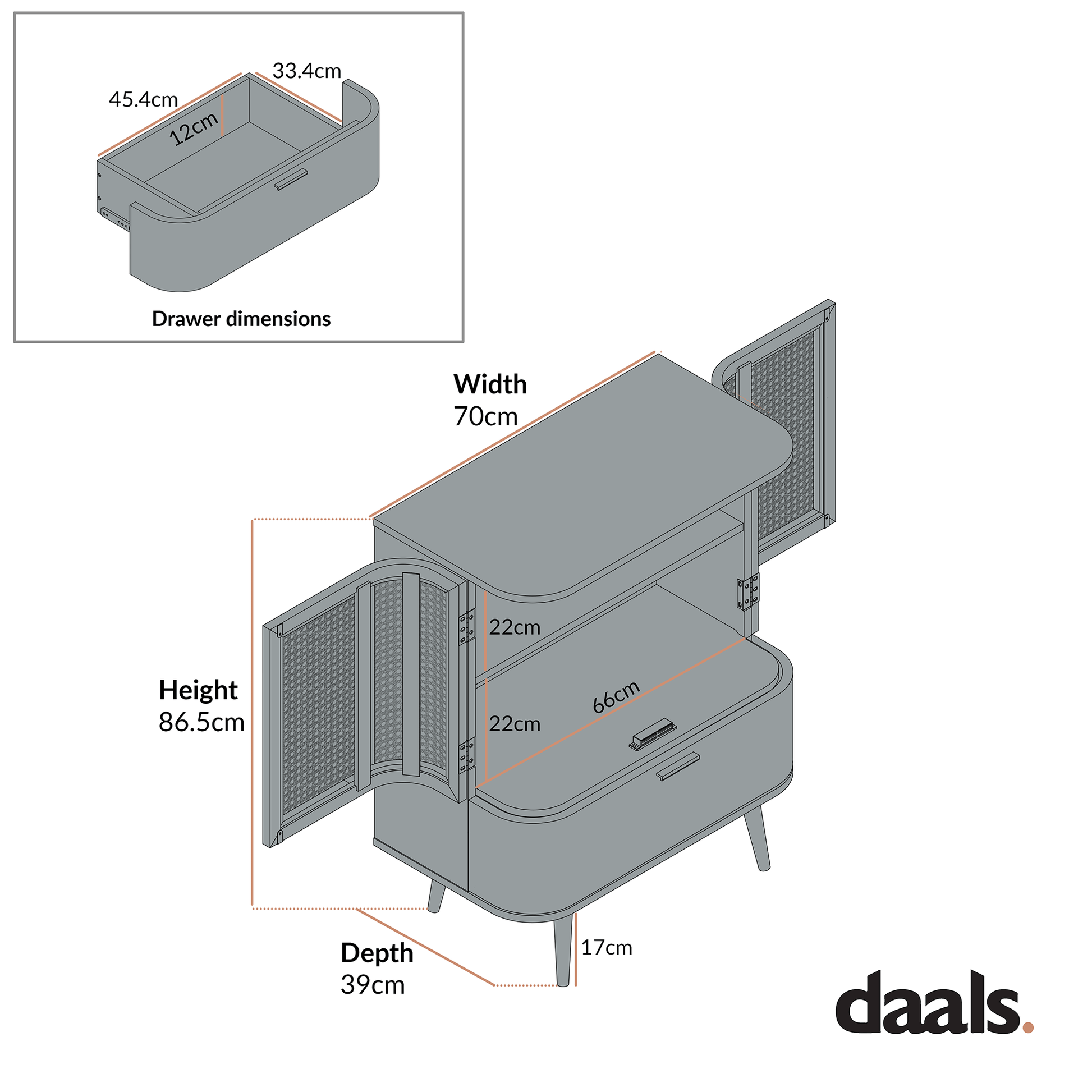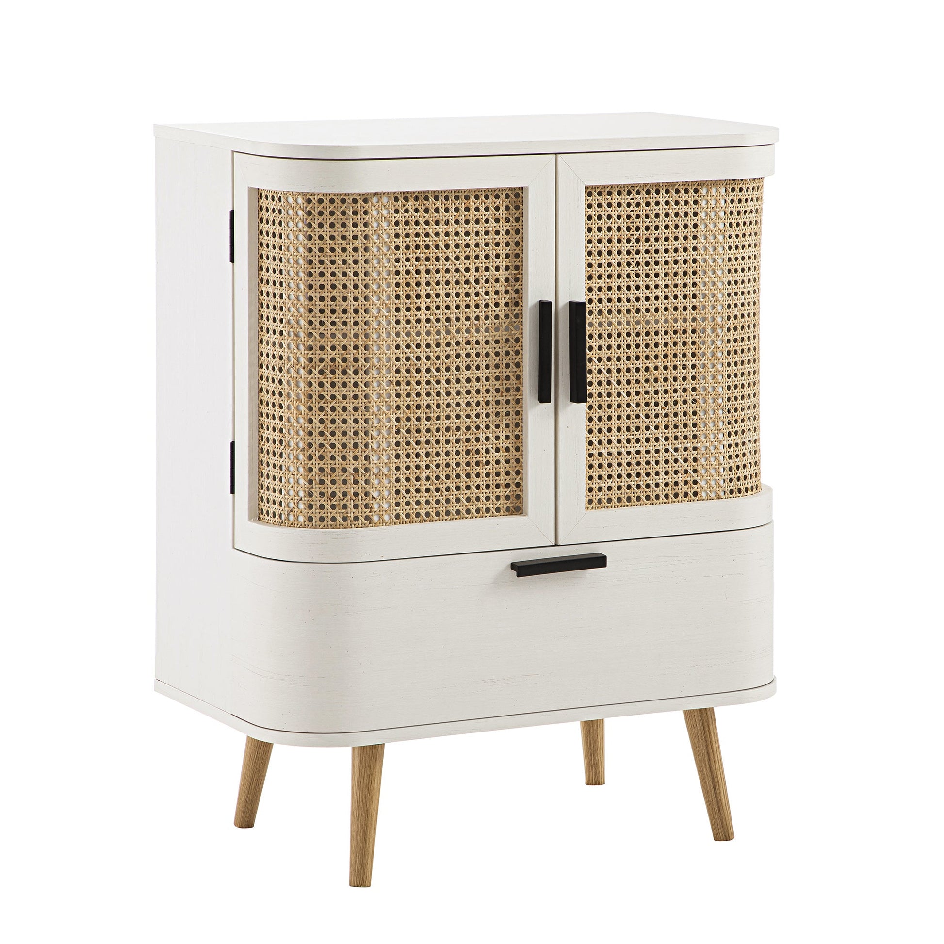 Izzy Curved Rattan 1-Drawer Small Sideboard, White