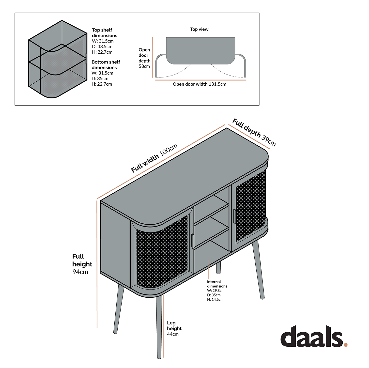 Izzy Curved Rattan 2-Door Buffet Sideboard, White