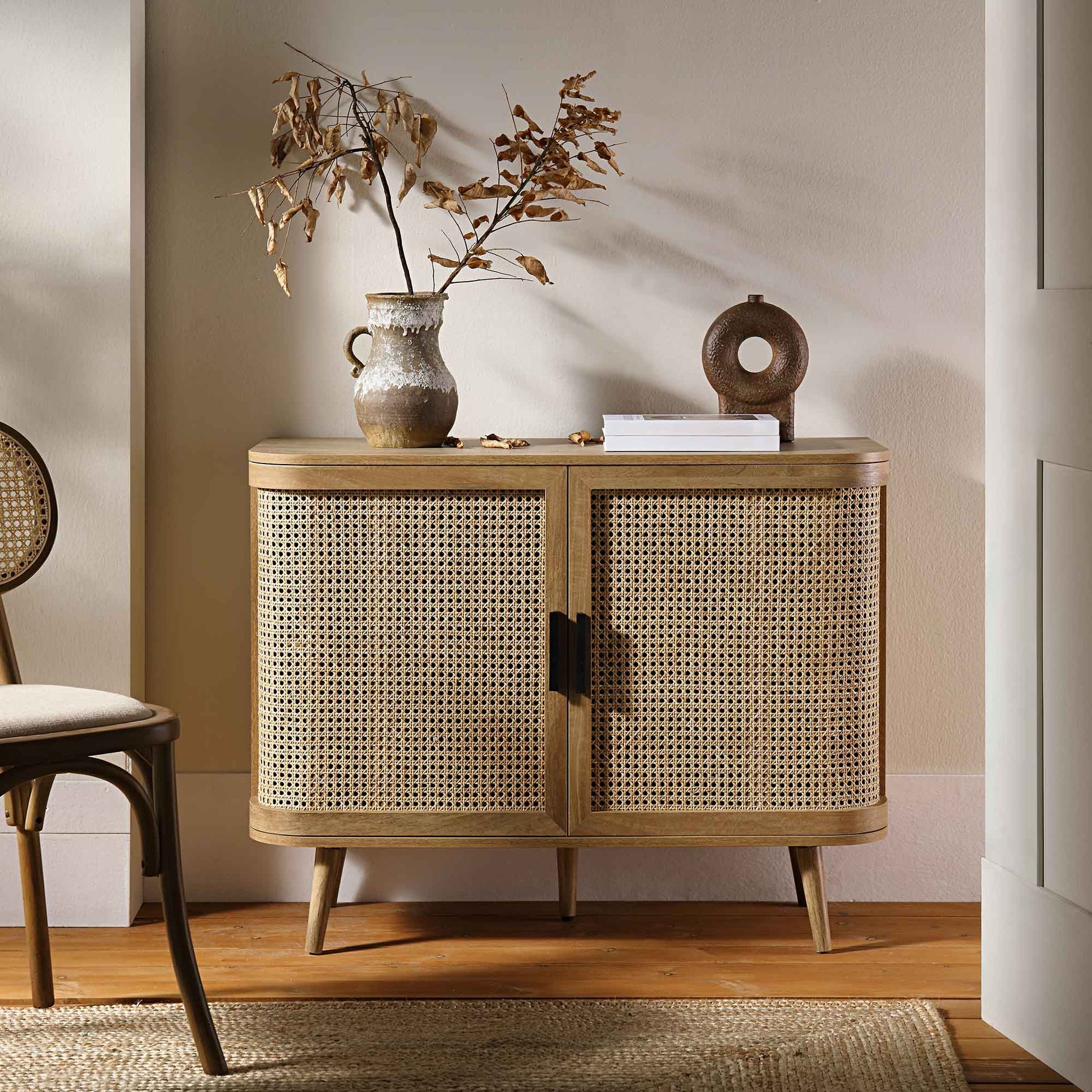 Izzy Curved Rattan 2-Door Small Sideboard, Natural