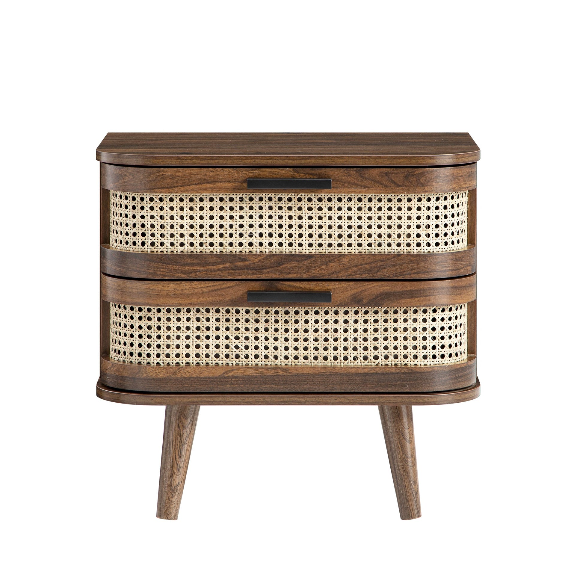 Izzy Curved Rattan 2-Drawer Bedside Table, Walnut