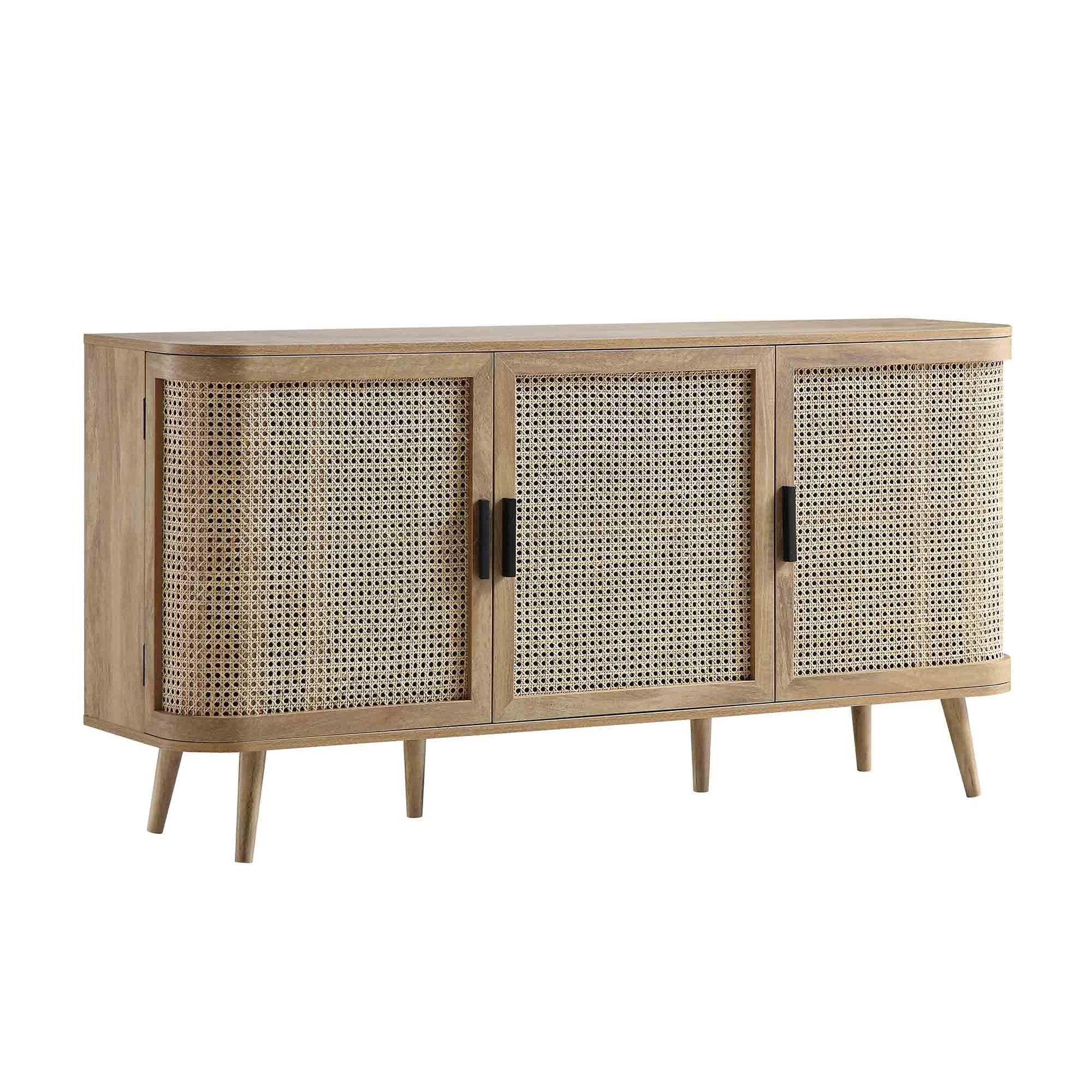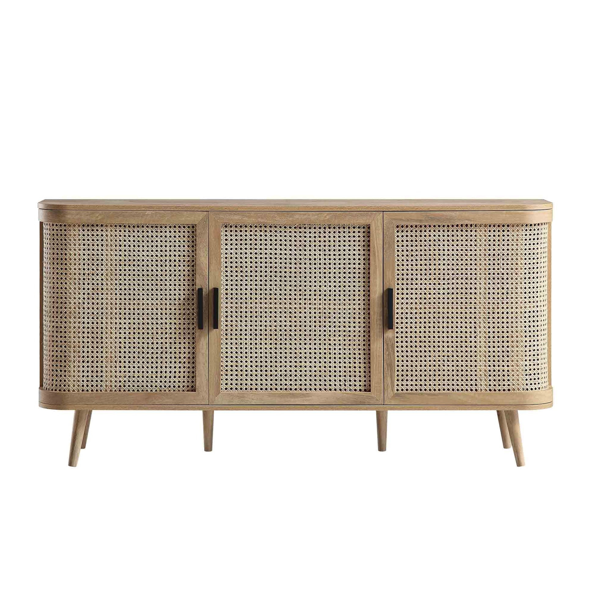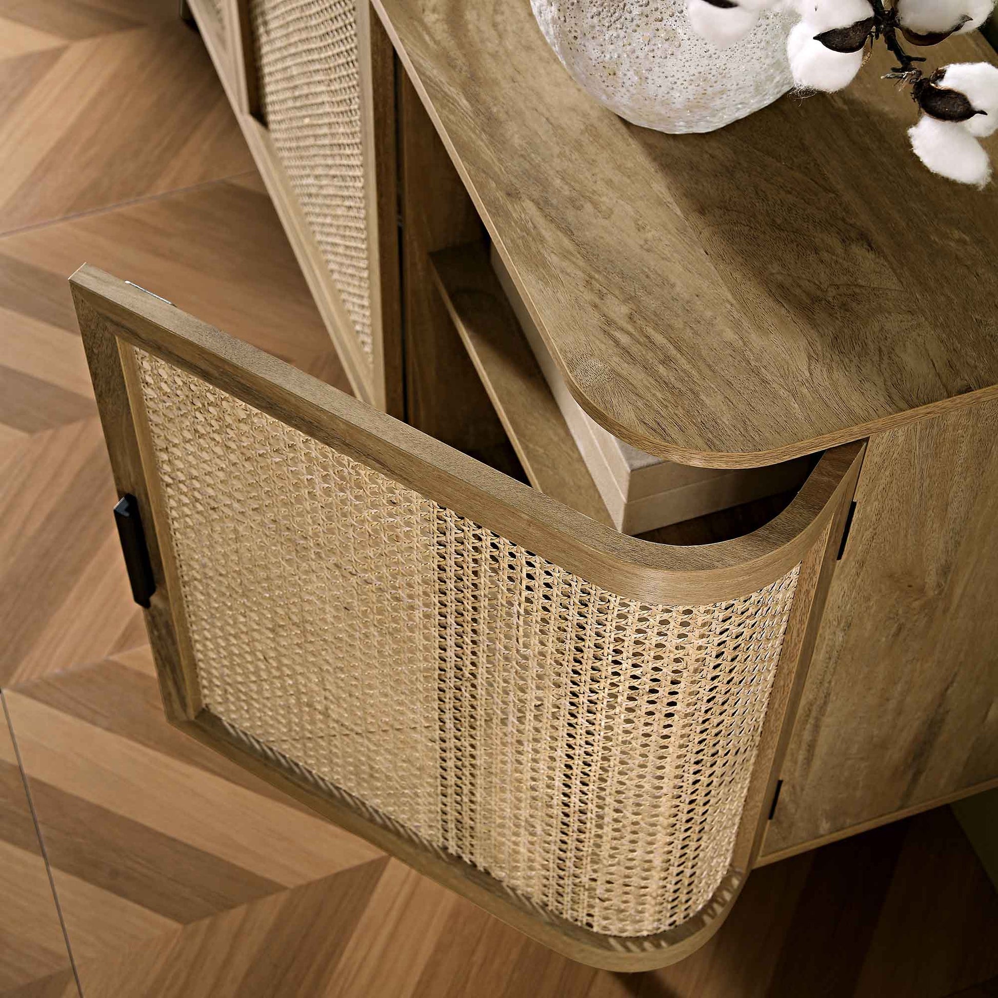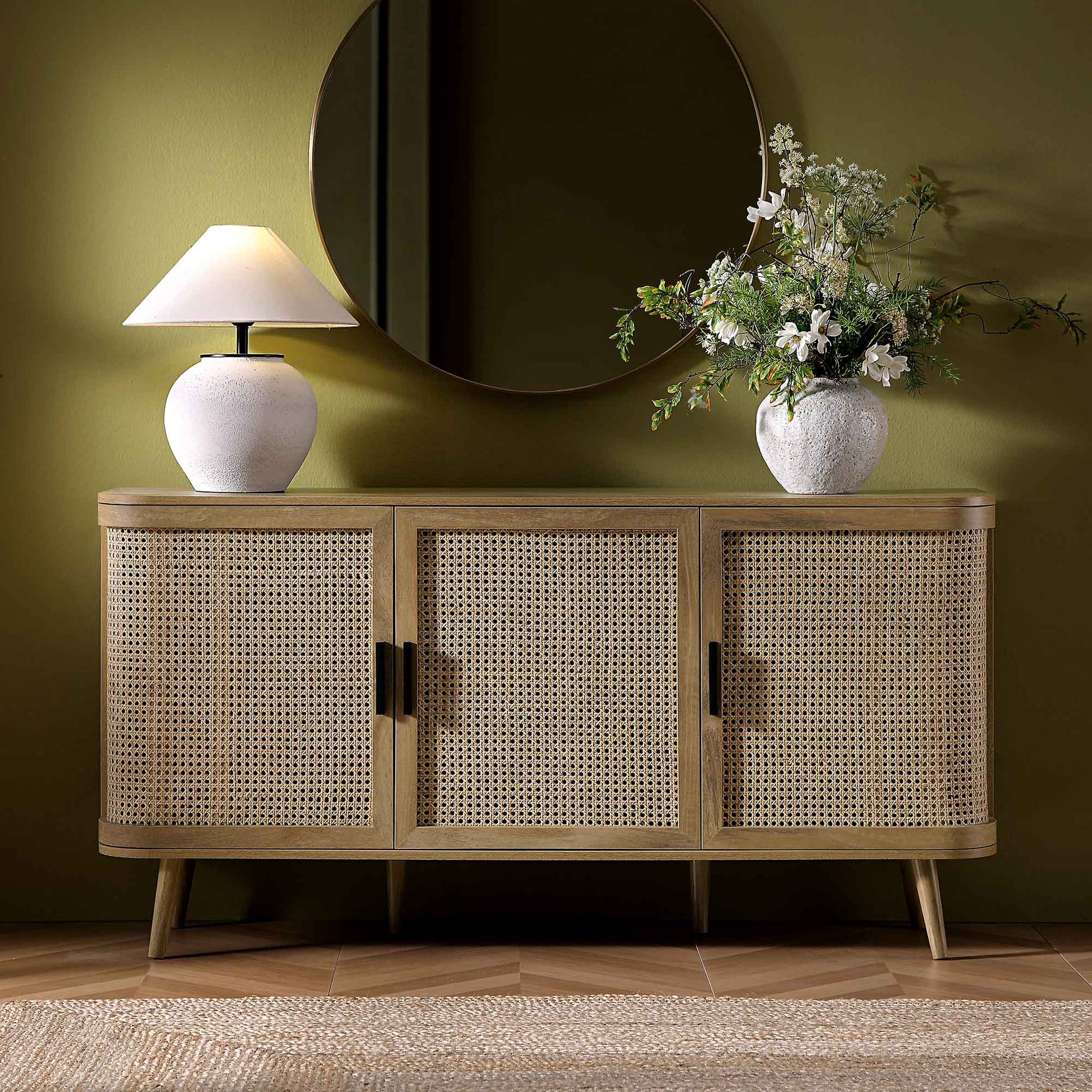 Izzy Curved Rattan Large 3-Door Sideboard, Natural