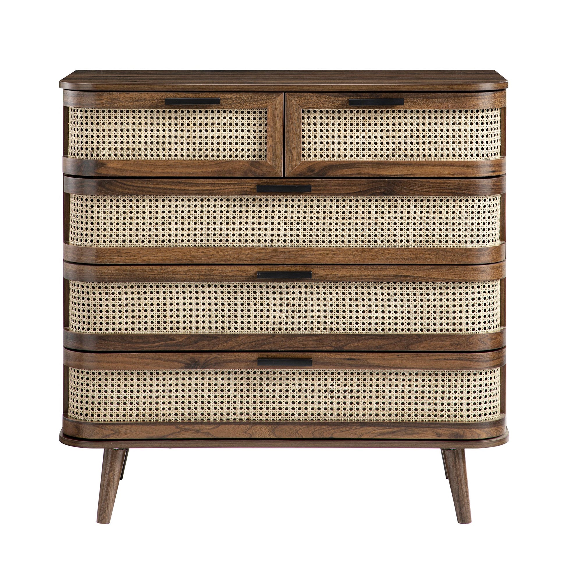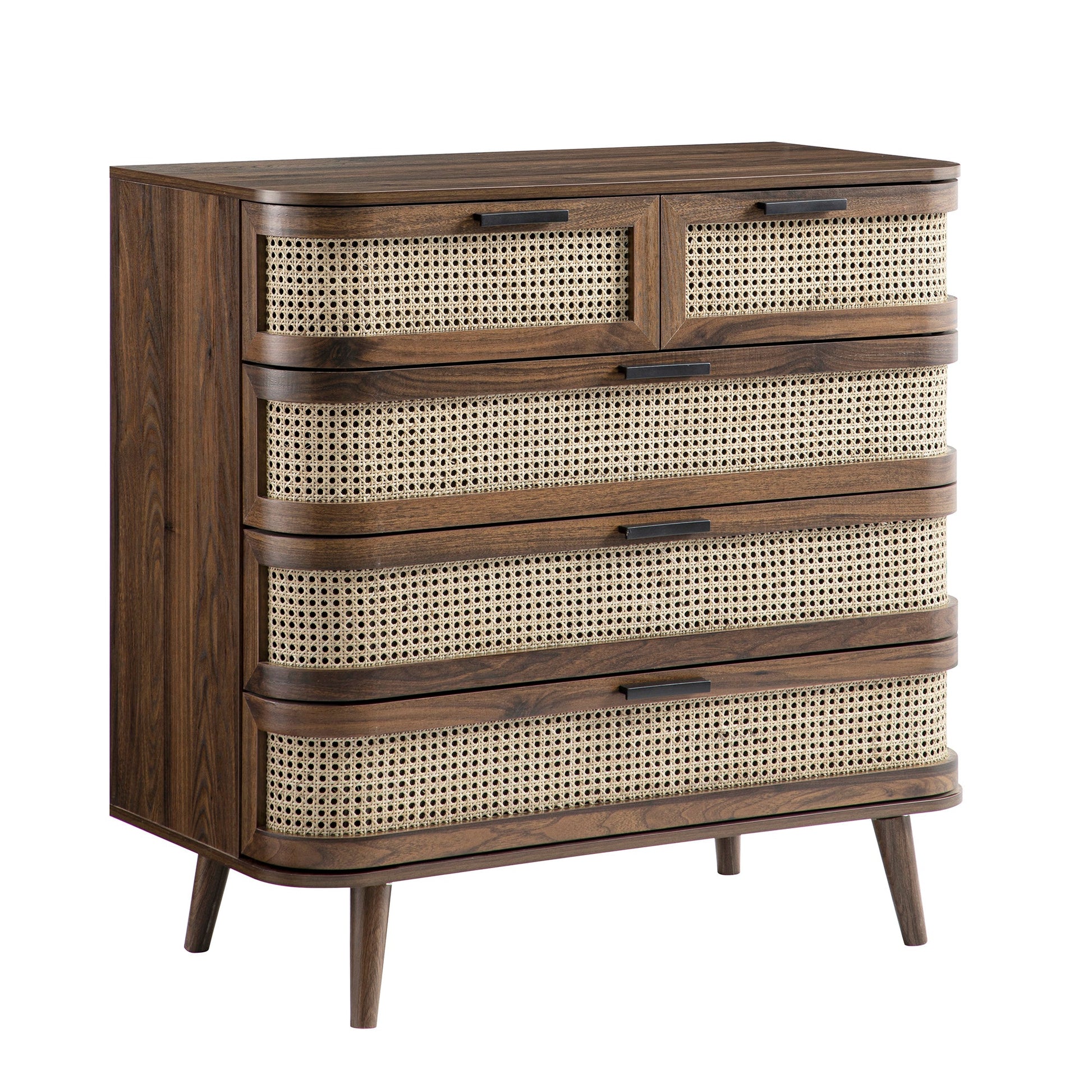Izzy Curved Rattan Chest of 5 Drawers, Walnut