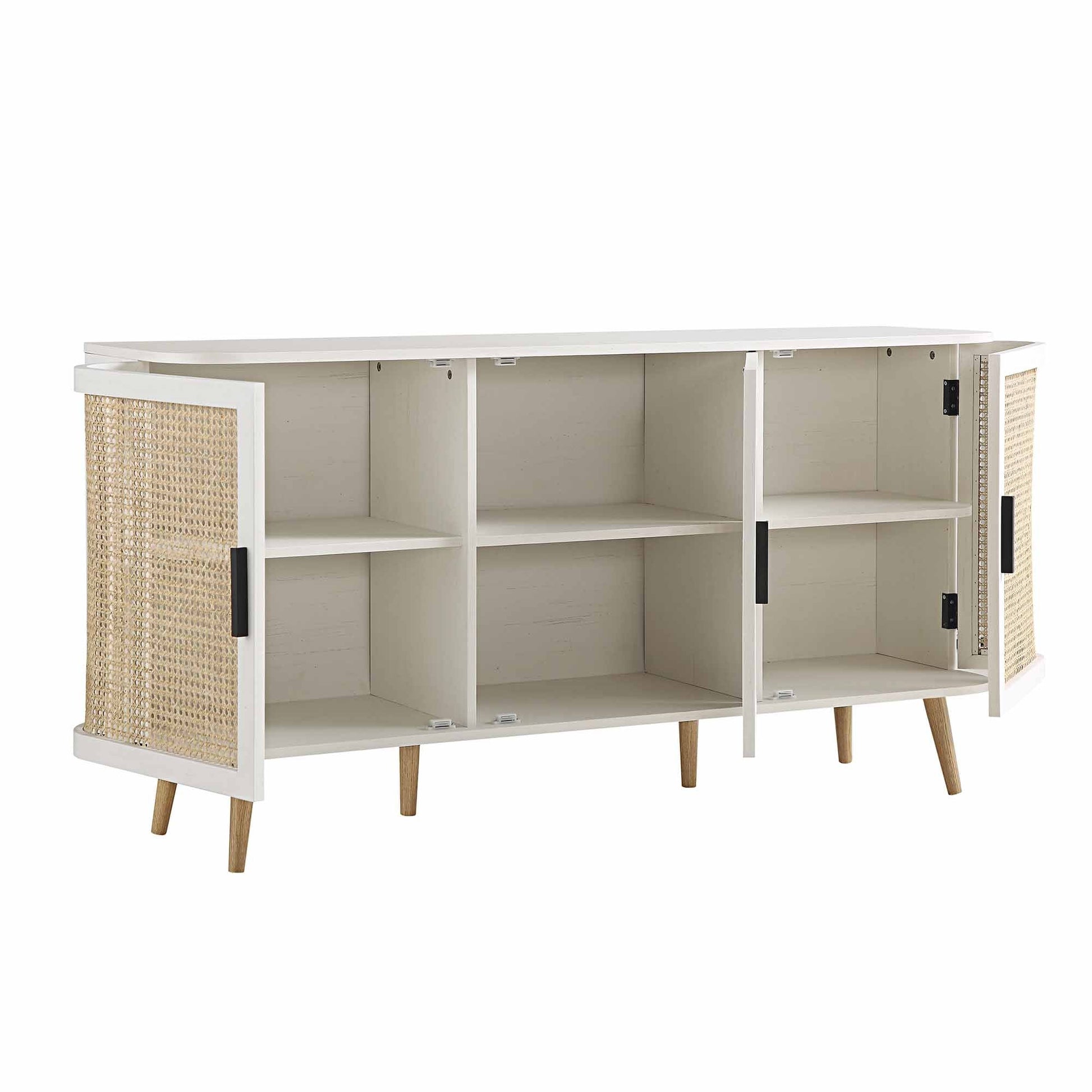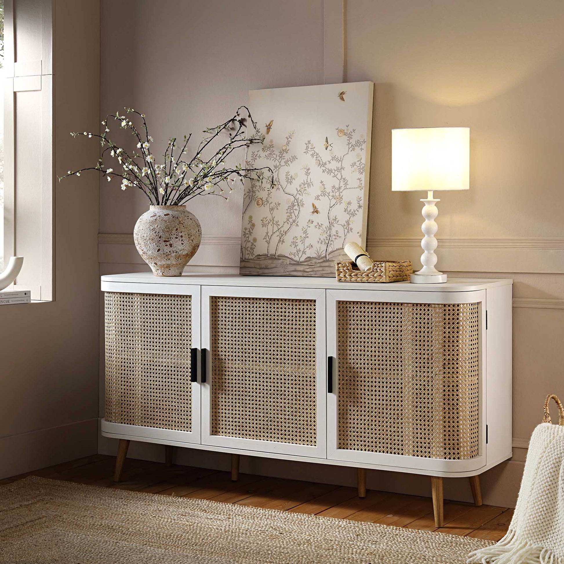 Izzy Curved Rattan Large 3-Door Sideboard, White