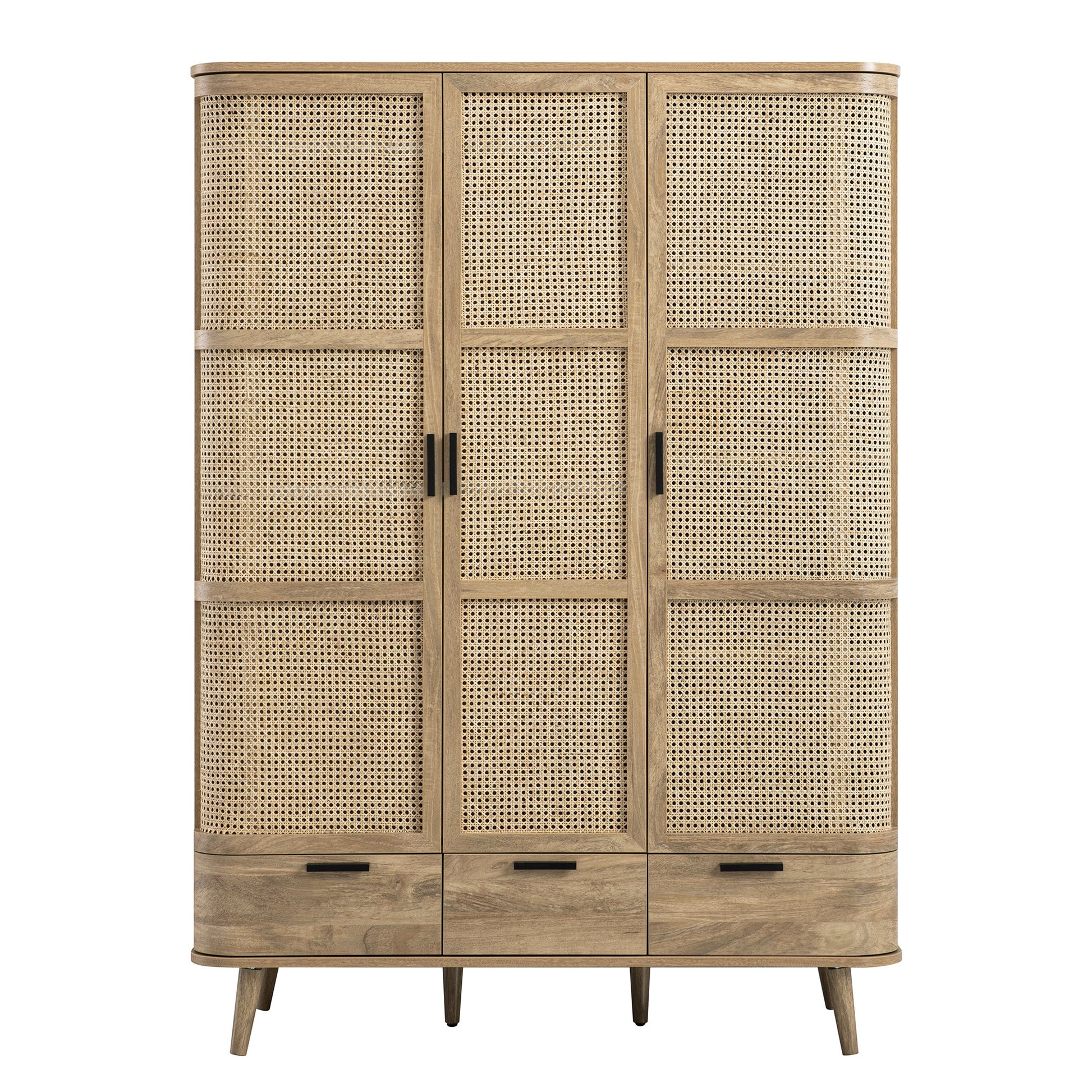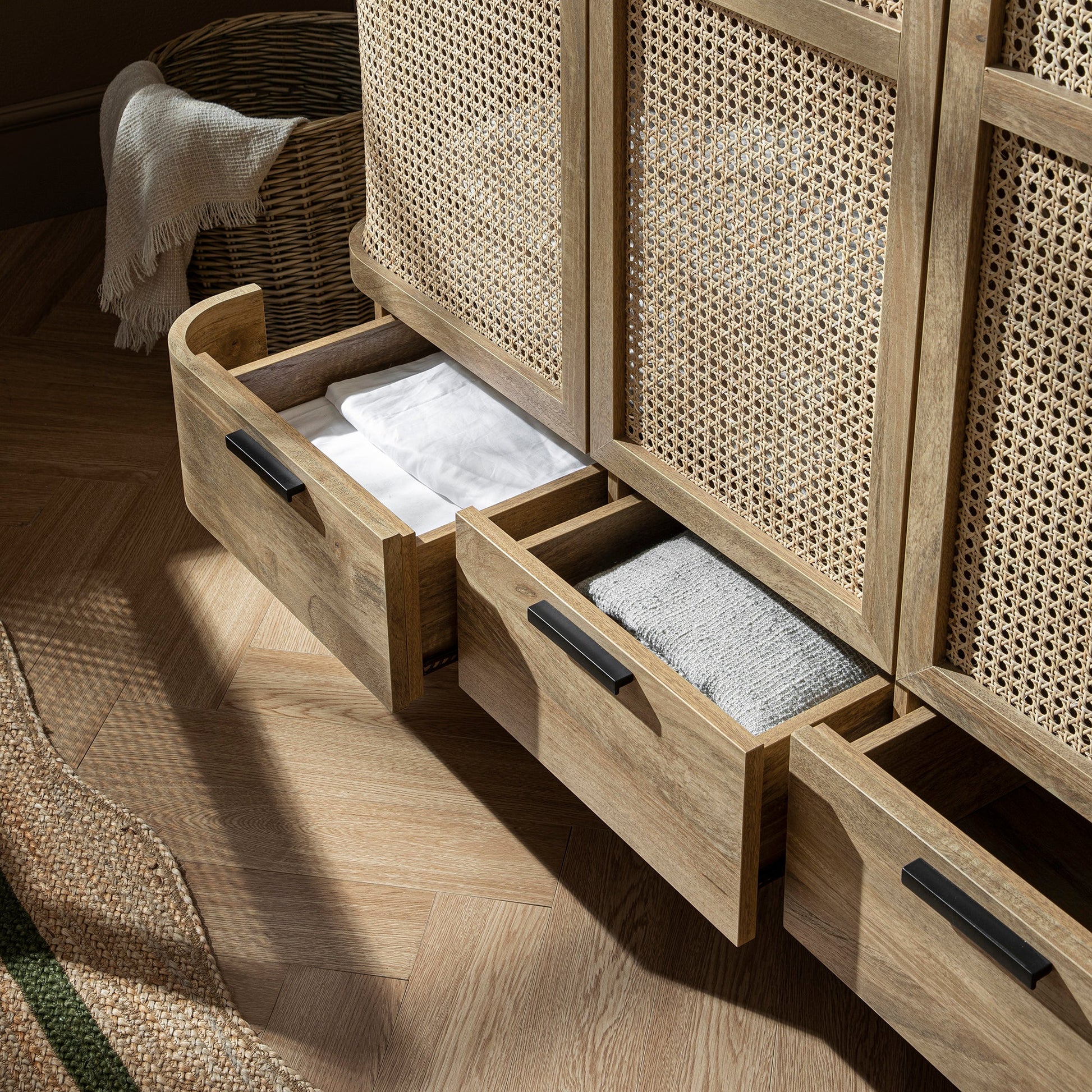 Izzy Curved Rattan Triple Wardrobe, Natural