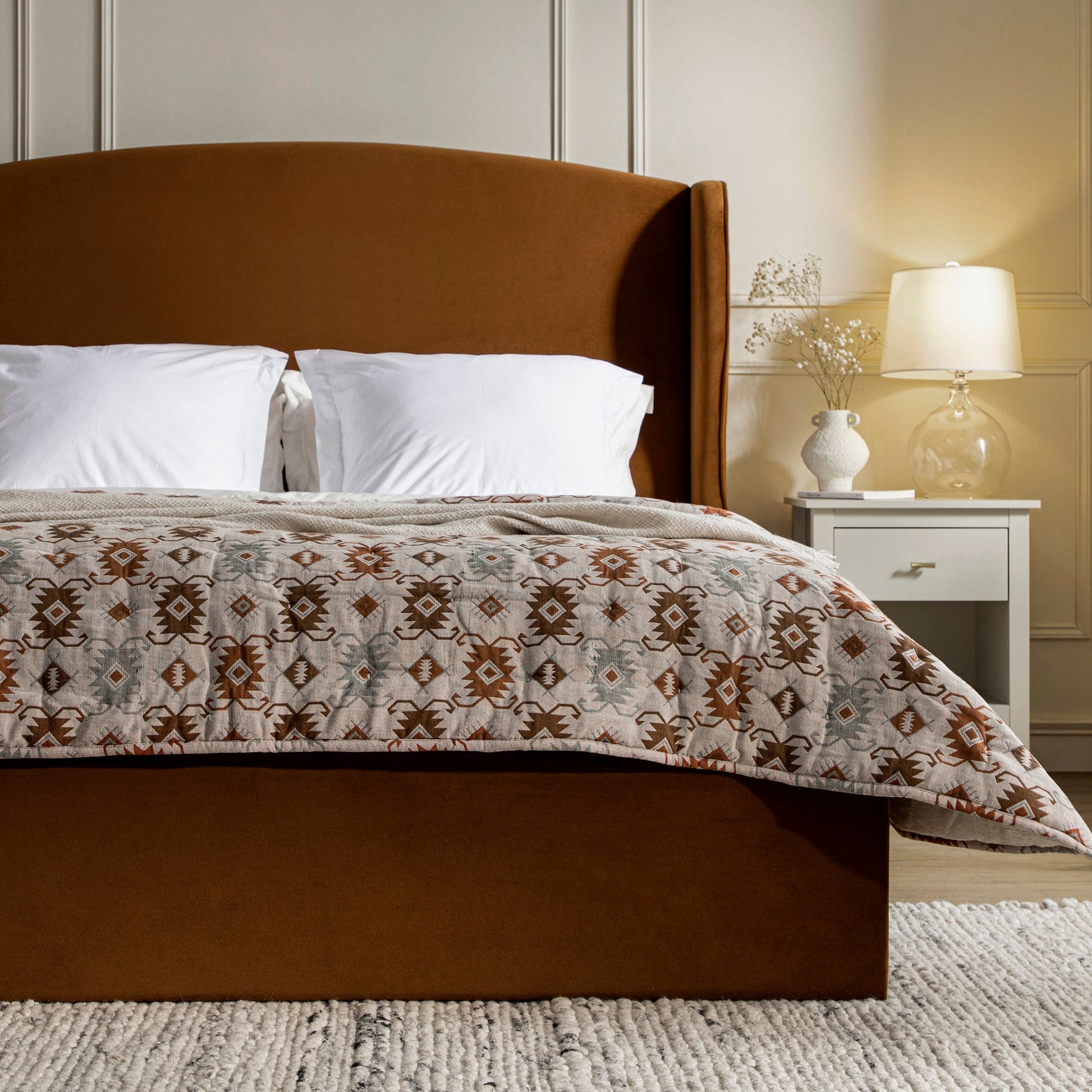 Kimberly Winged Upholstered Storage Bed, Cinnamon Velvet