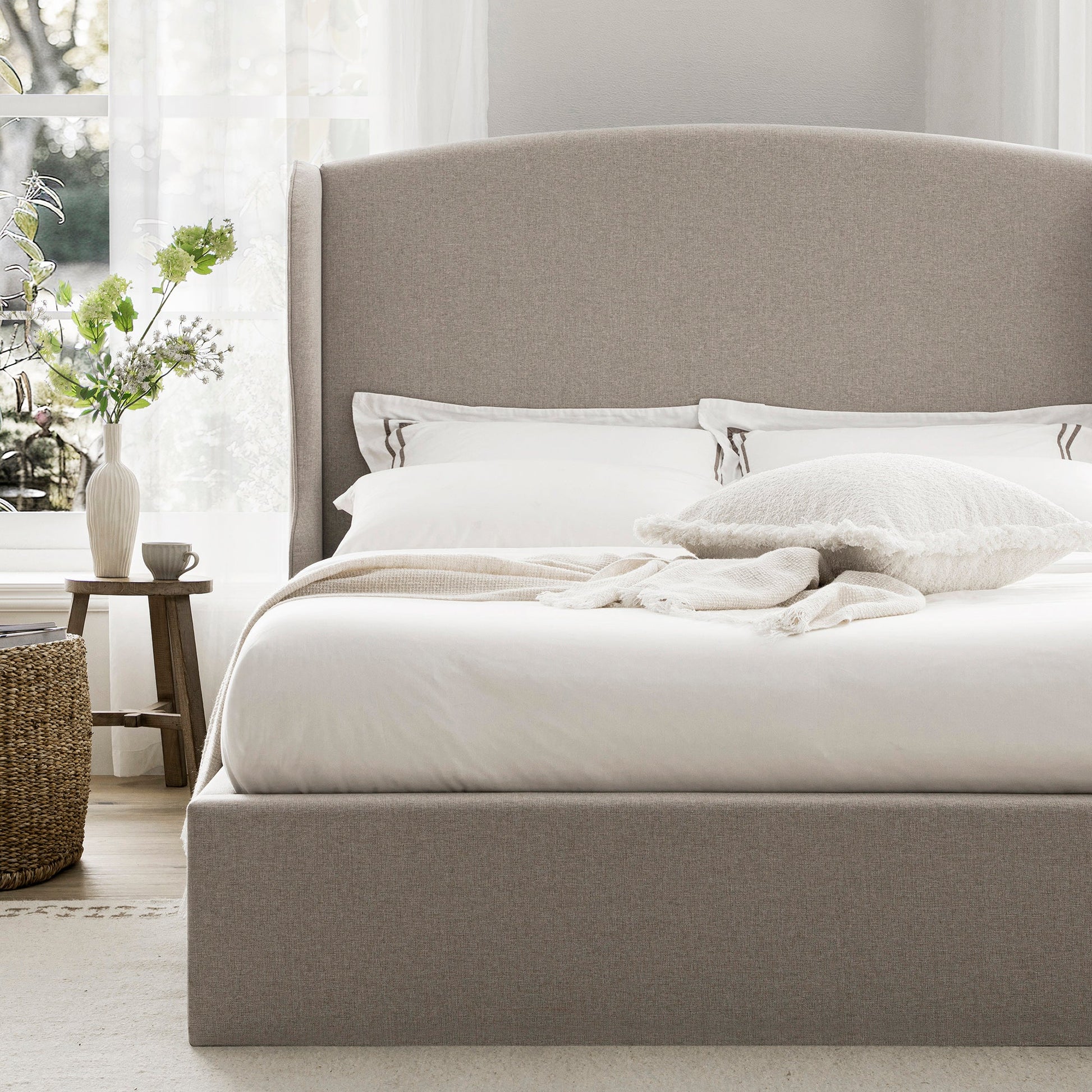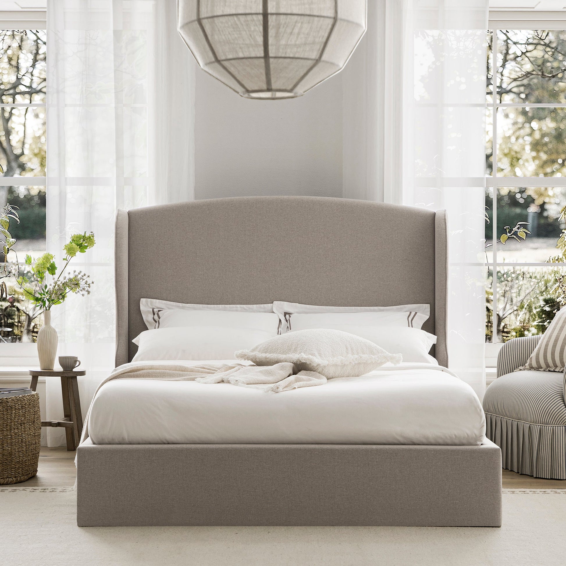 Kimberly Winged Upholstered Storage Bed, Sand Fabric