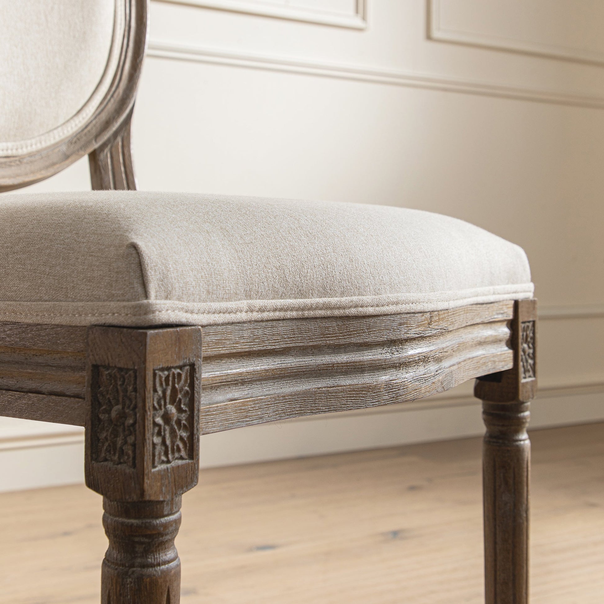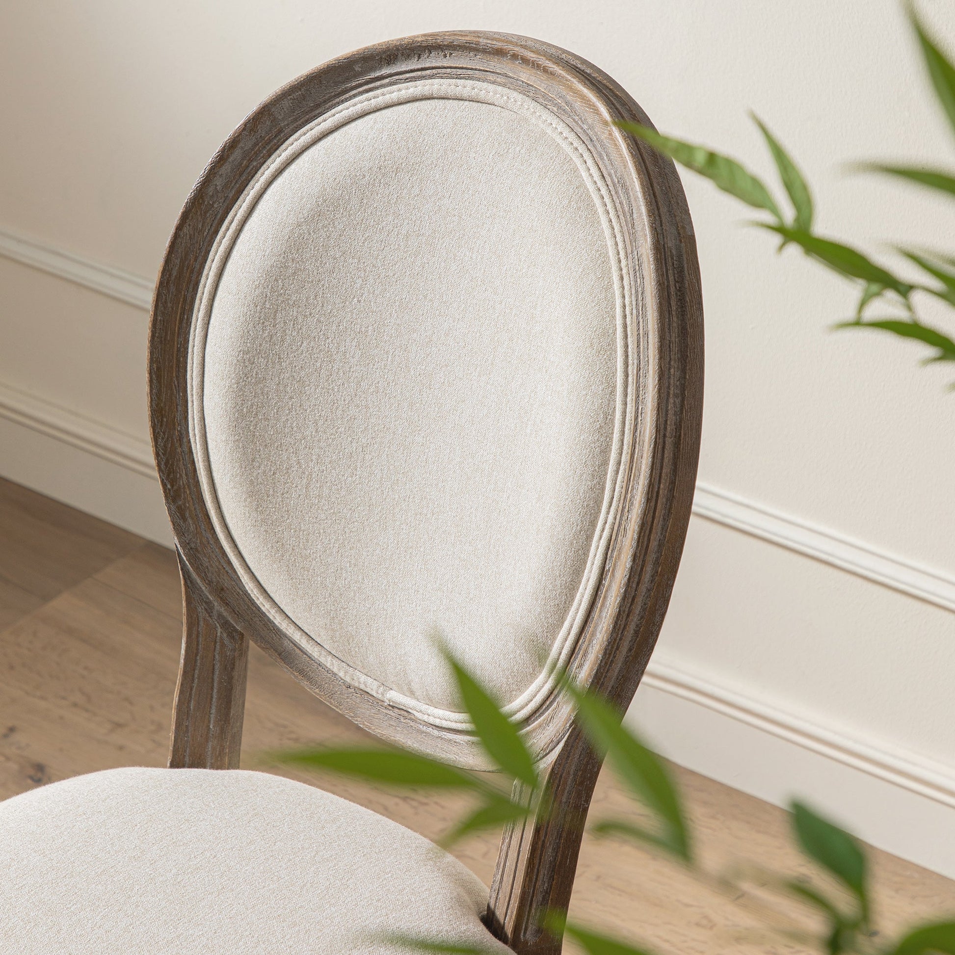 Lainston Set of 2 Classic Weathered Oak Dining Chairs, Oatmeal Brushed Fabric
