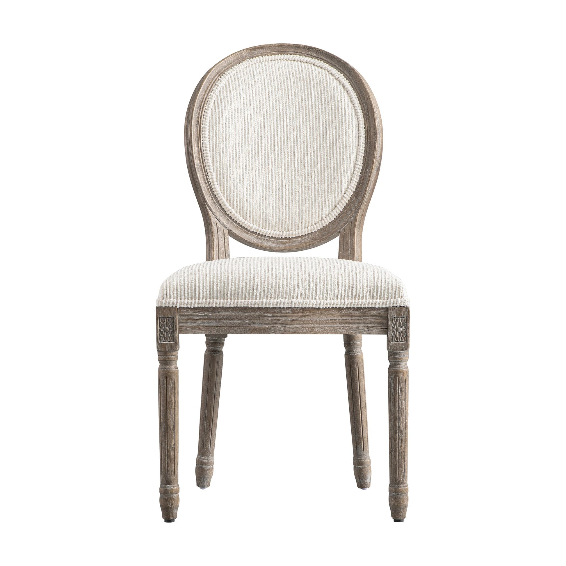 Lainston Set of 2 Classic Weathered Oak Dining Chairs, Beige Textured Fabric