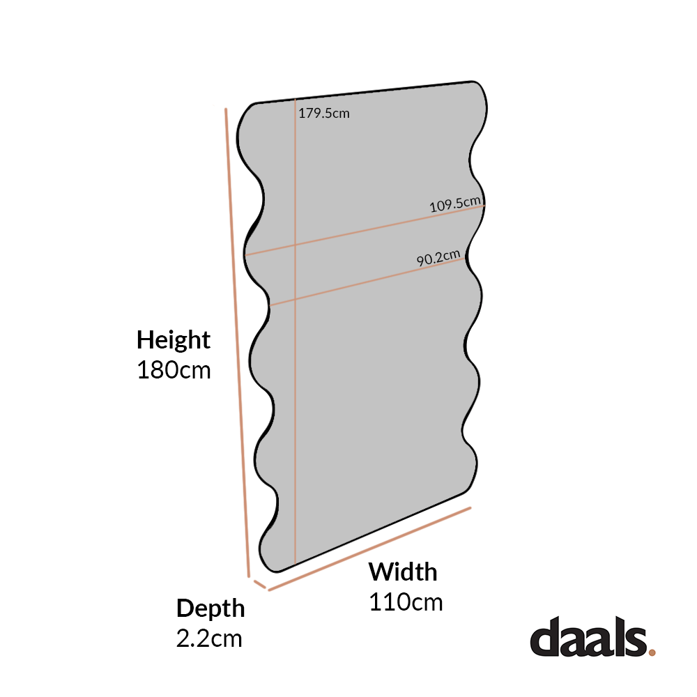 Luisa Wavy Curved Full length Mirror 180 x 110 cm, Gold