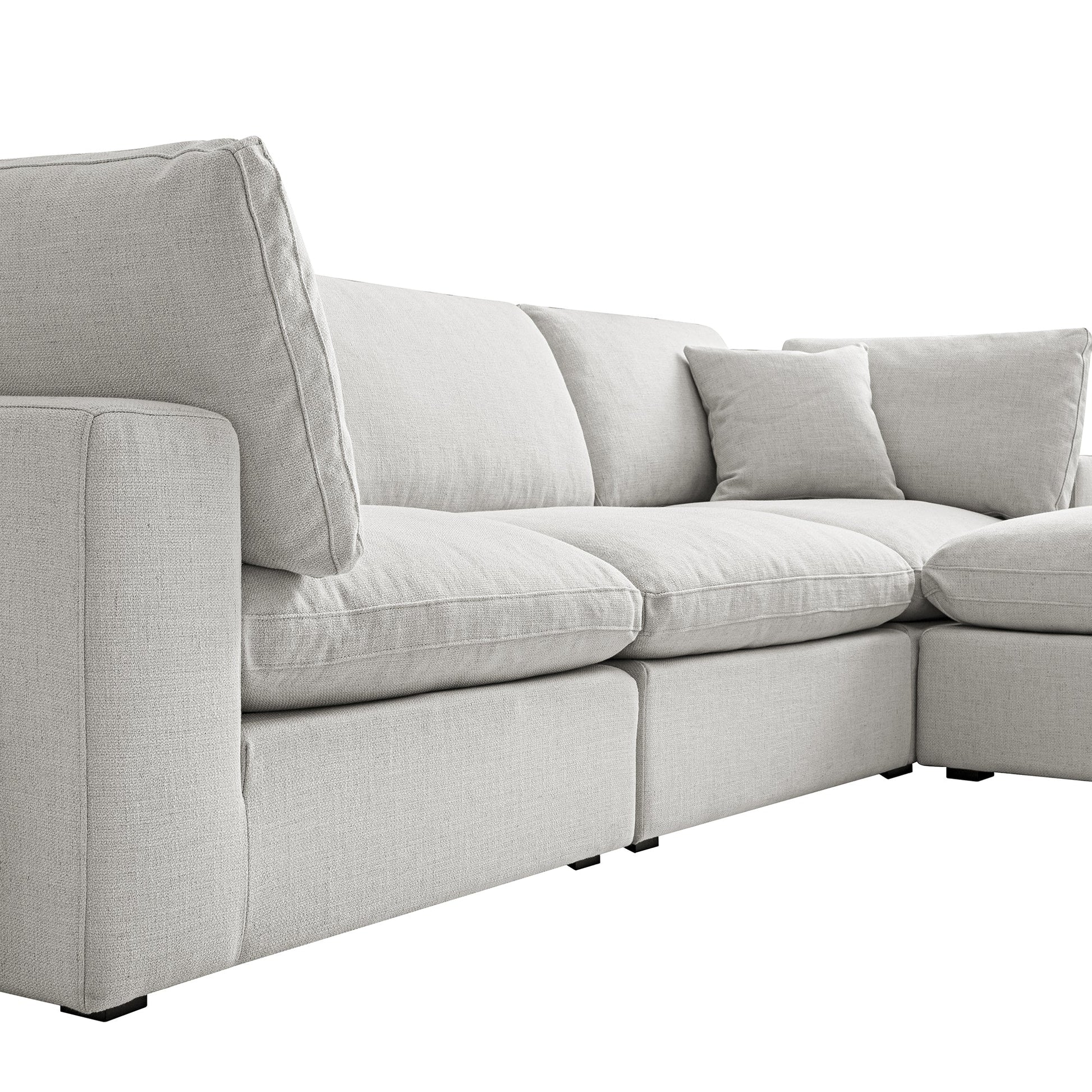 Lutyens Light Grey Linen Blend Modular Sofa, 3-Piece Chaise