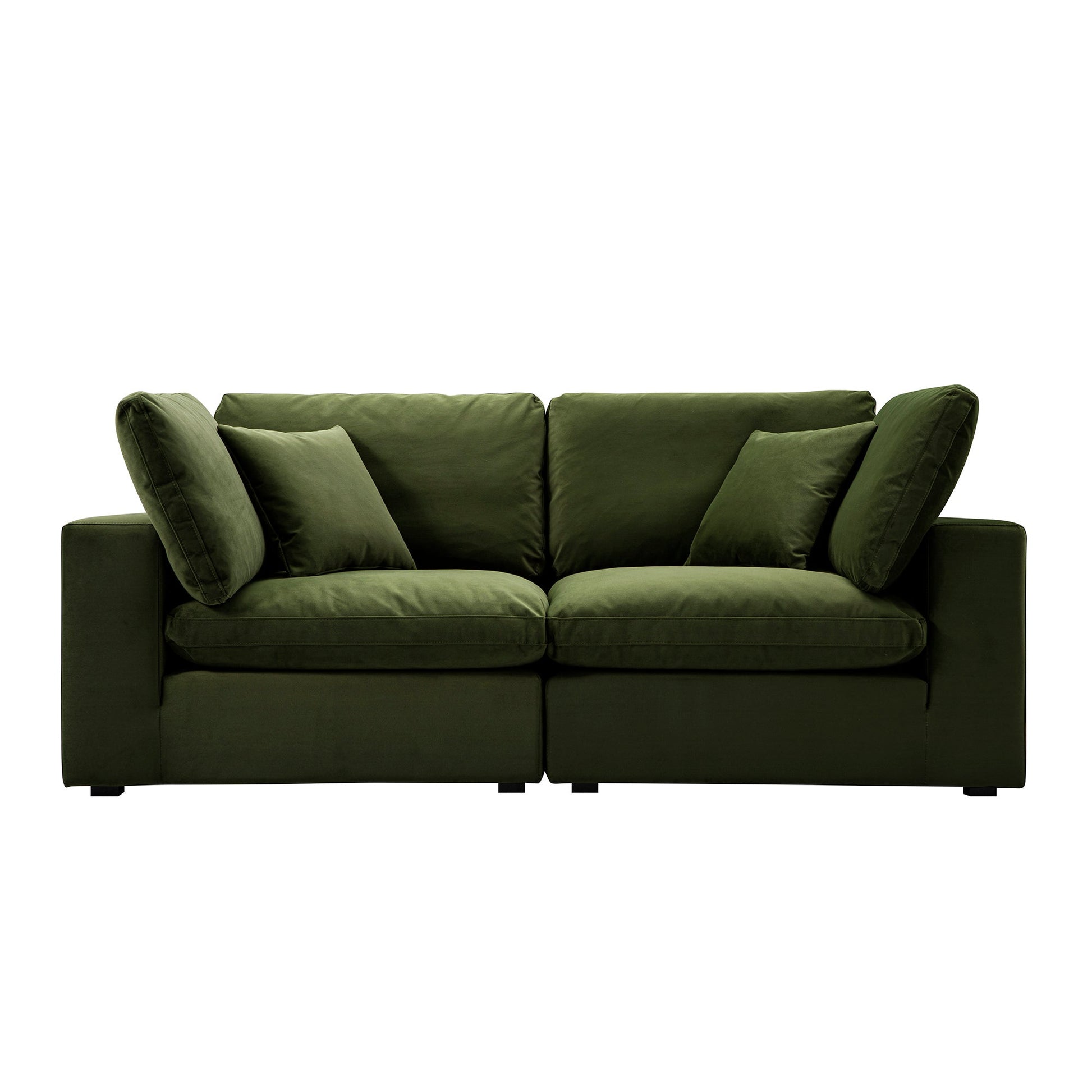 Lutyens Moss Green Velvet Modular Sofa, 2-Piece