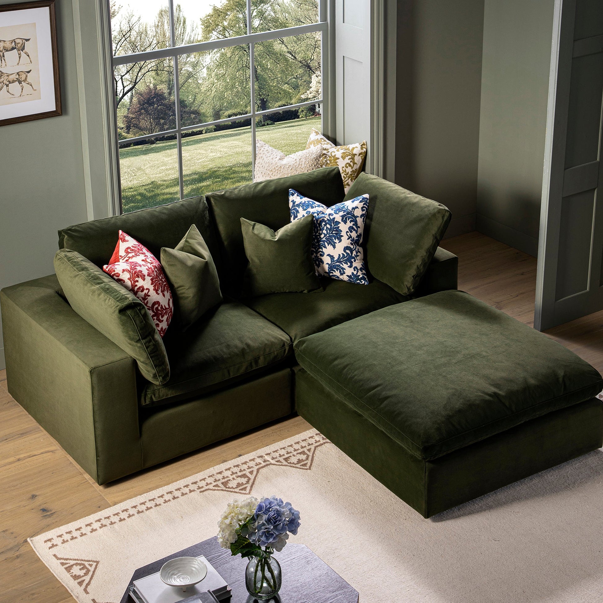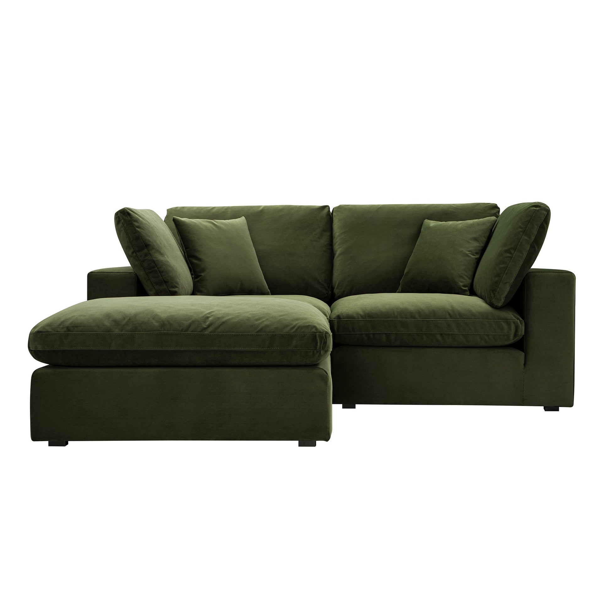 Lutyens Moss Green Velvet Modular Sofa, 2-Piece Chaise