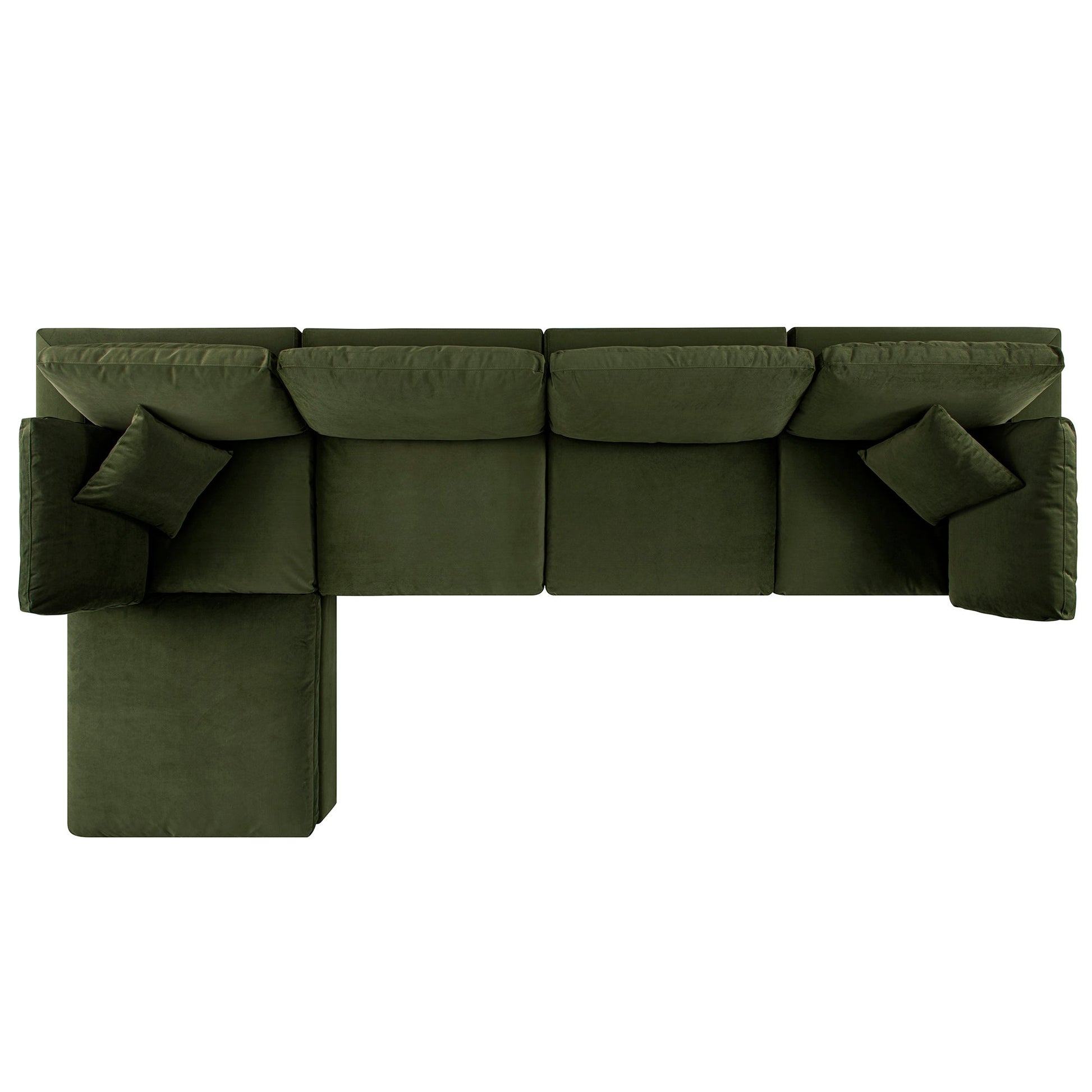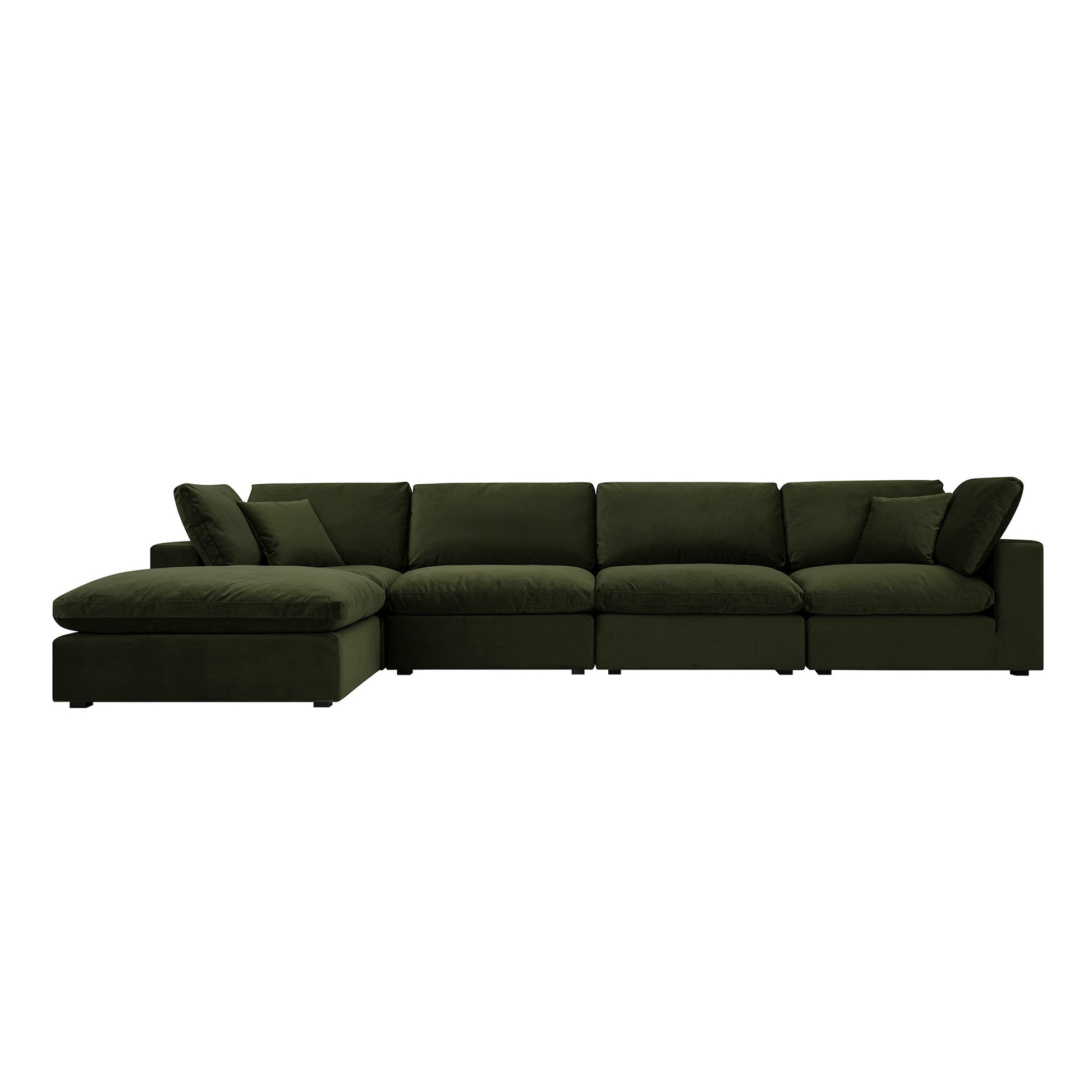 Lutyens Moss Green Velvet Modular Sofa, 4-Piece Chaise