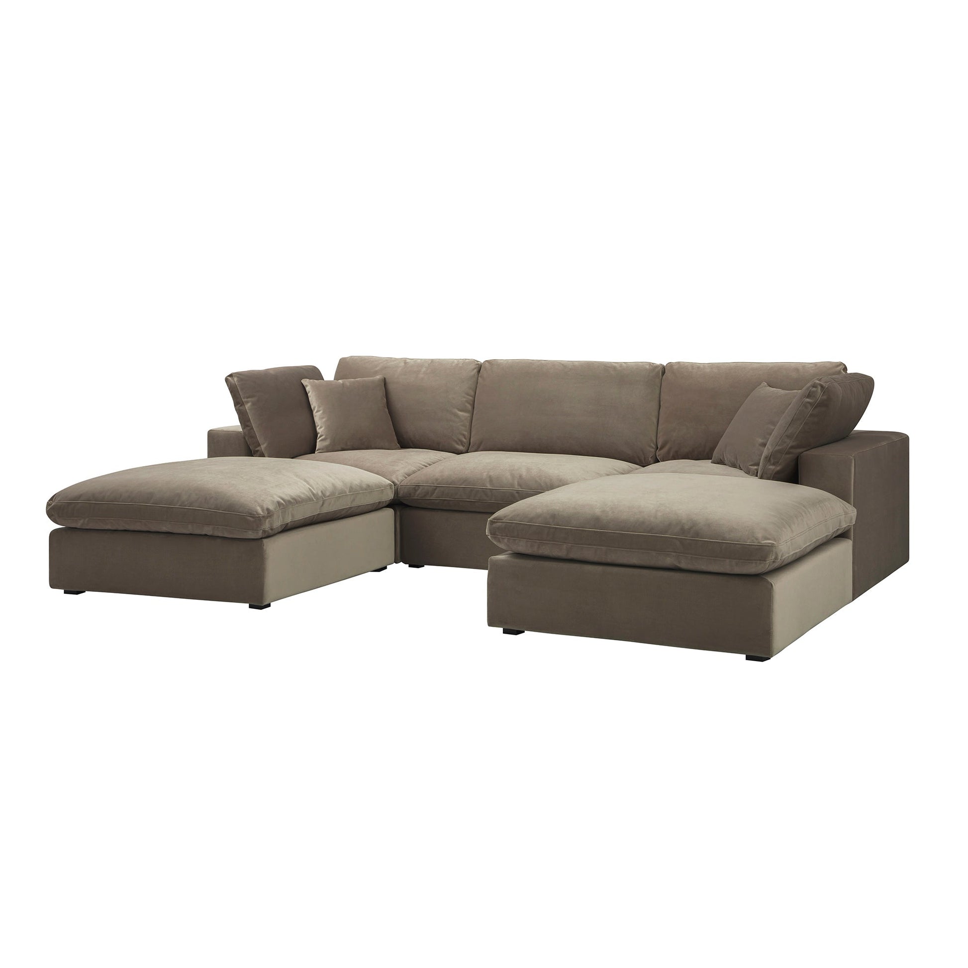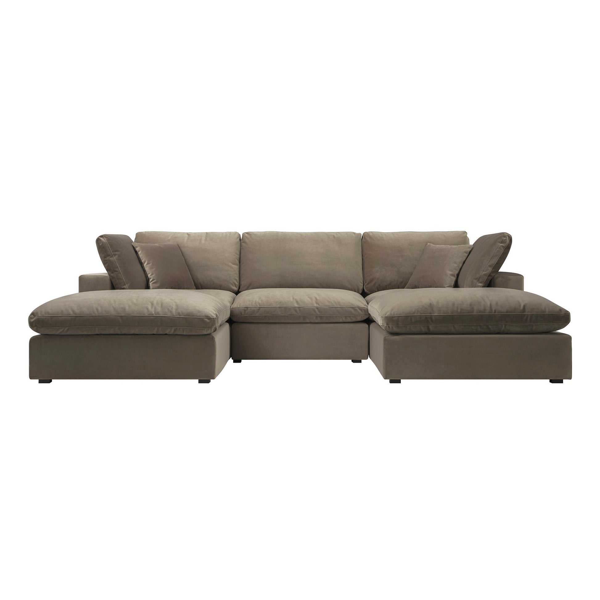 Lutyens Taupe Velvet Modular Sofa, 5-Piece U-Shape Set