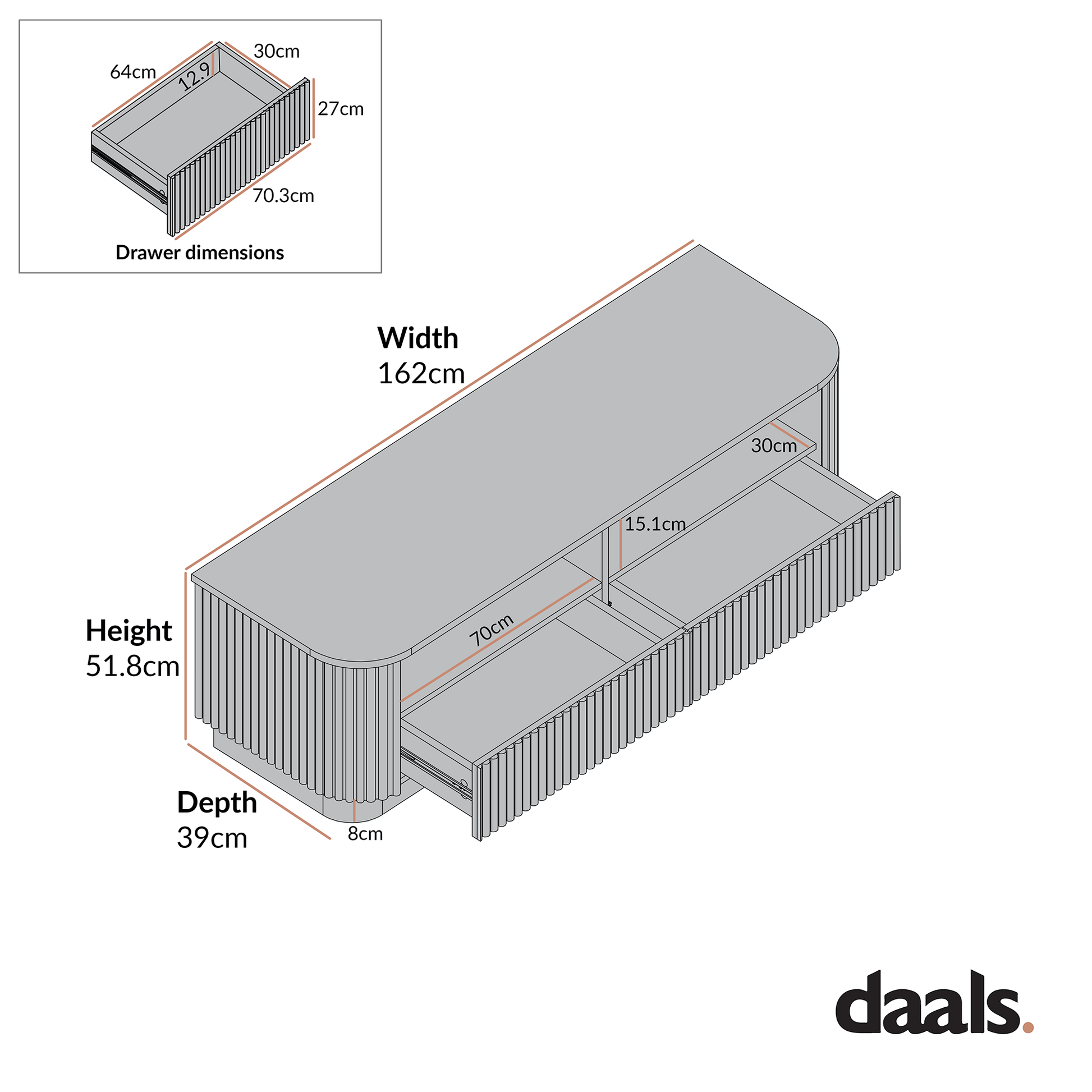 Maru 162cm TV Unit with Drawers, Washed White
