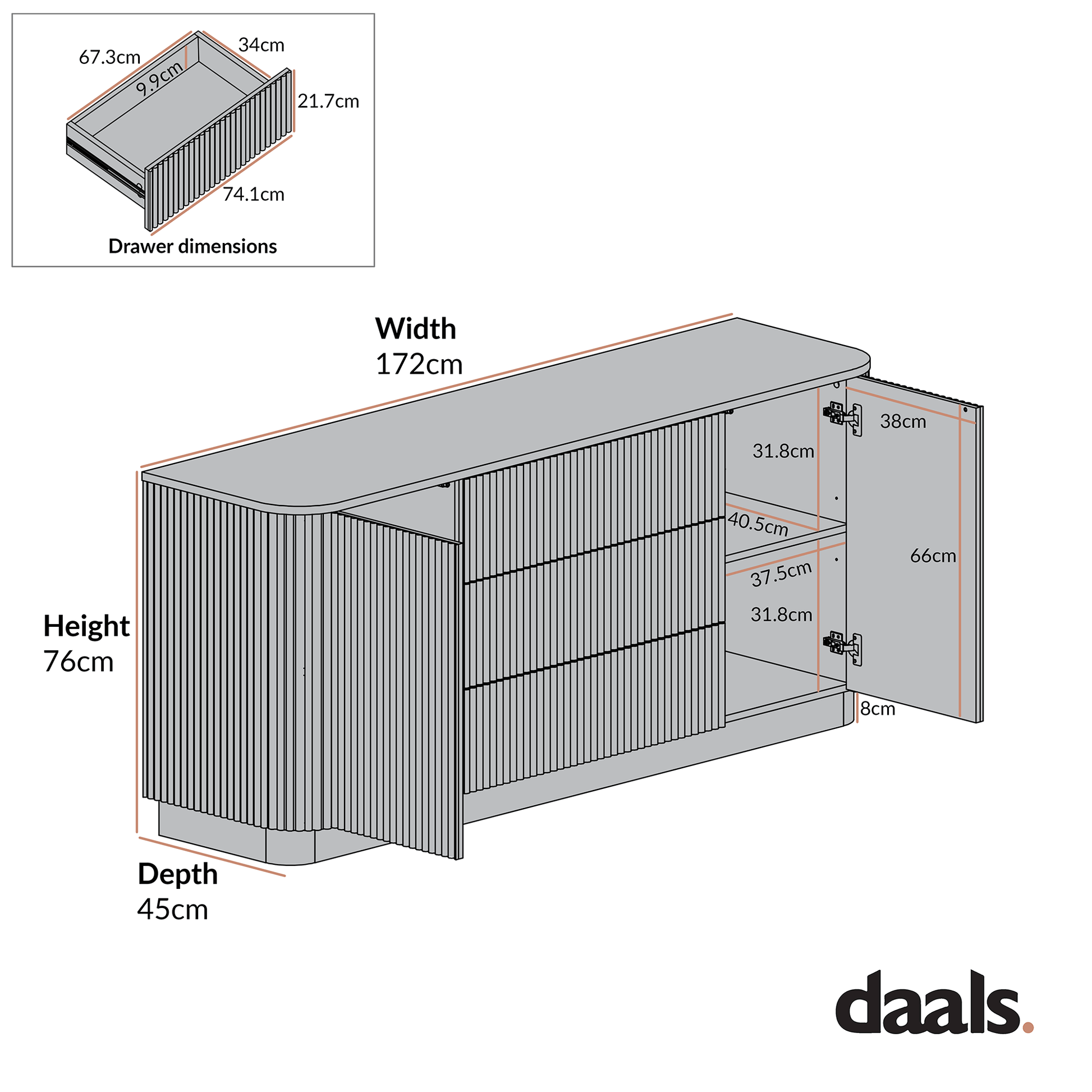 Maru Large 2-Door Sideboard with Drawers, Silver Oak