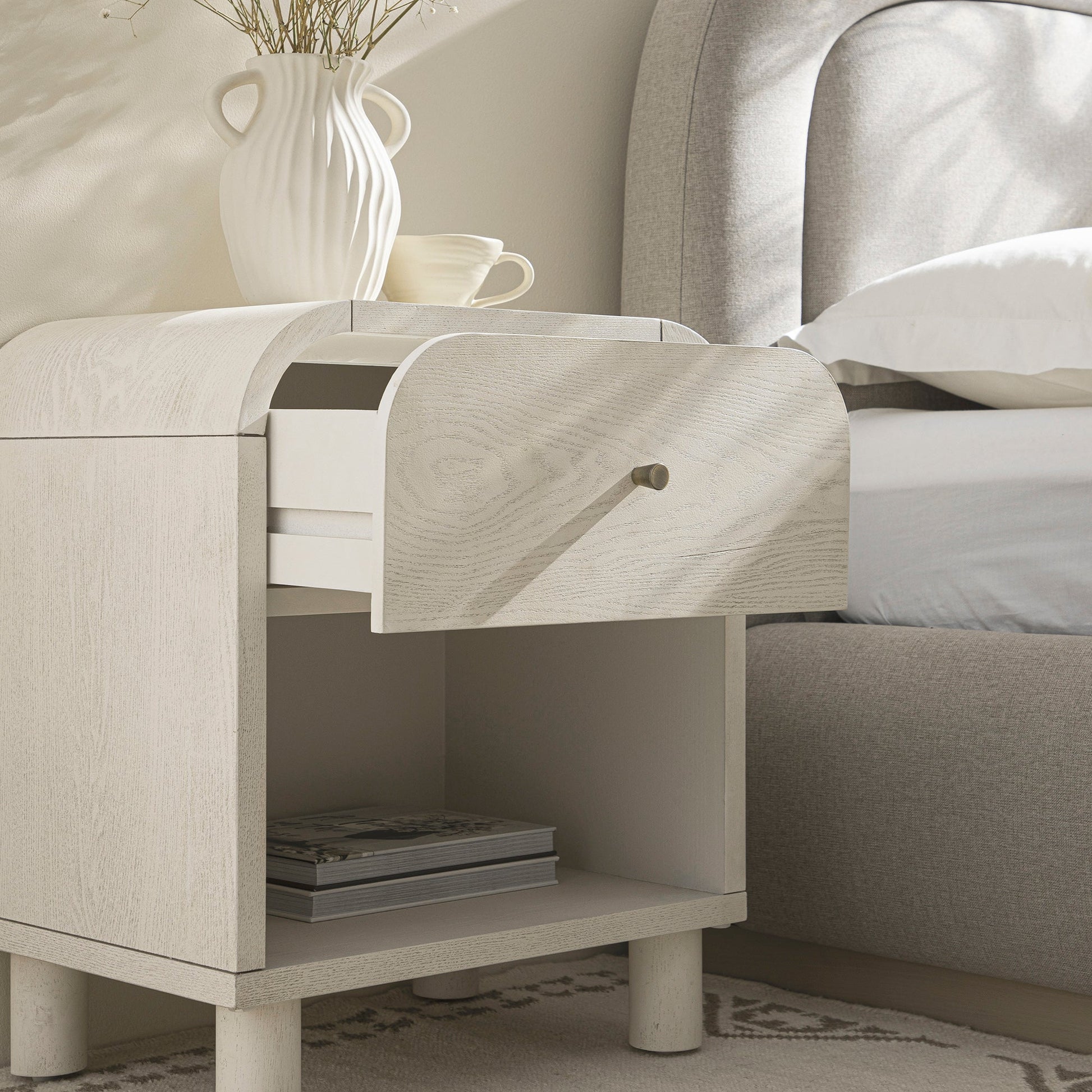 Maude 1 Drawer Bedside Table, Washed White Ash
