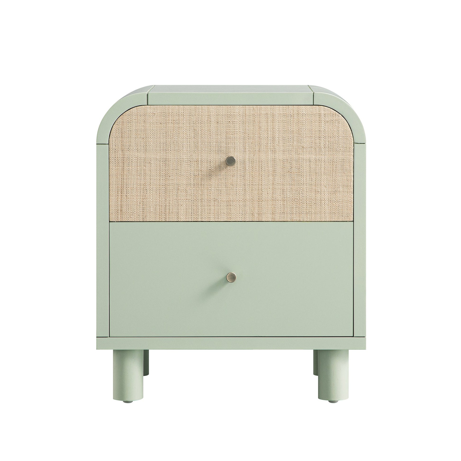 Maude 2 Drawer Bedside Table, Muted Pistachio Ash with Raffia