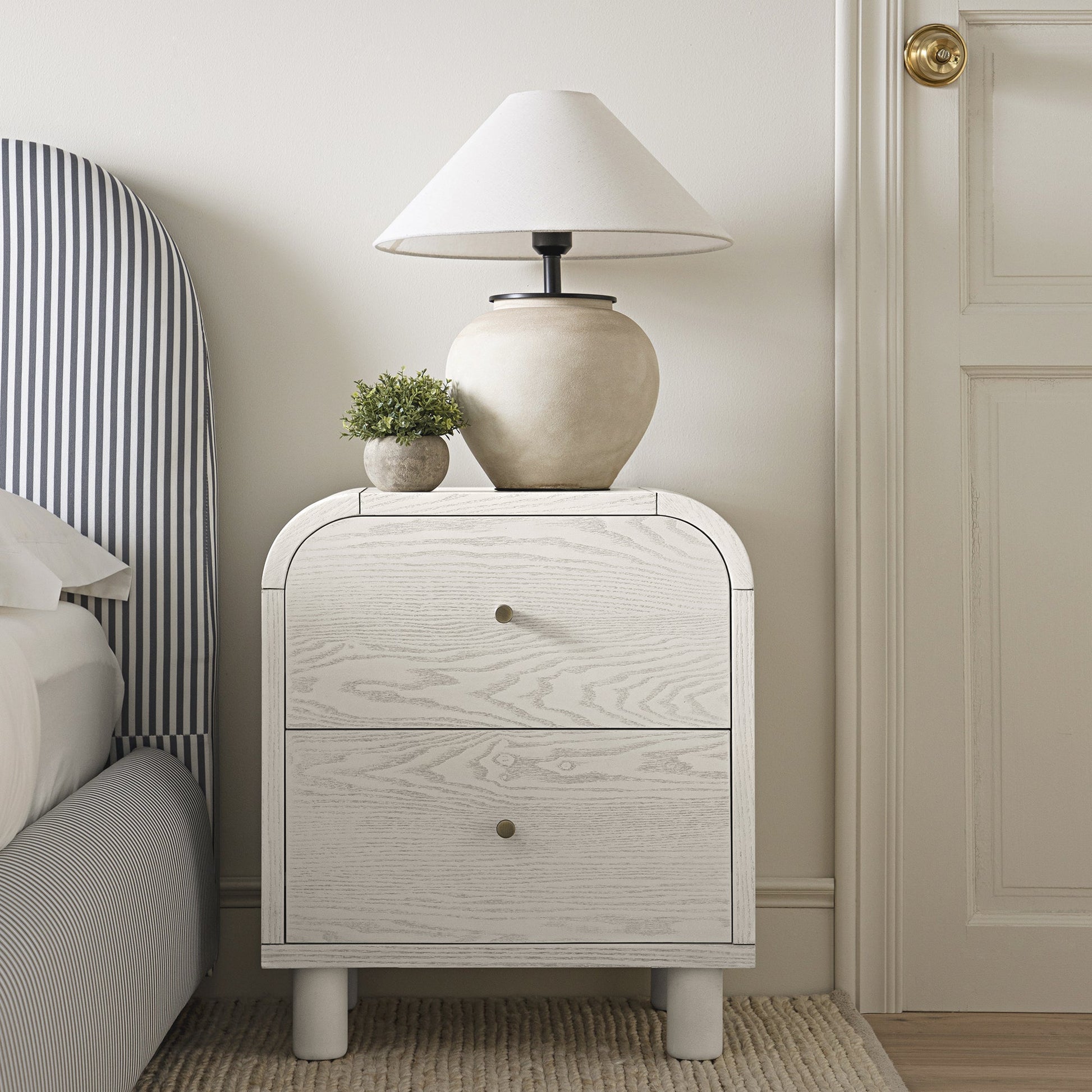 Maude 2 Drawer Bedside Table, Washed White Ash