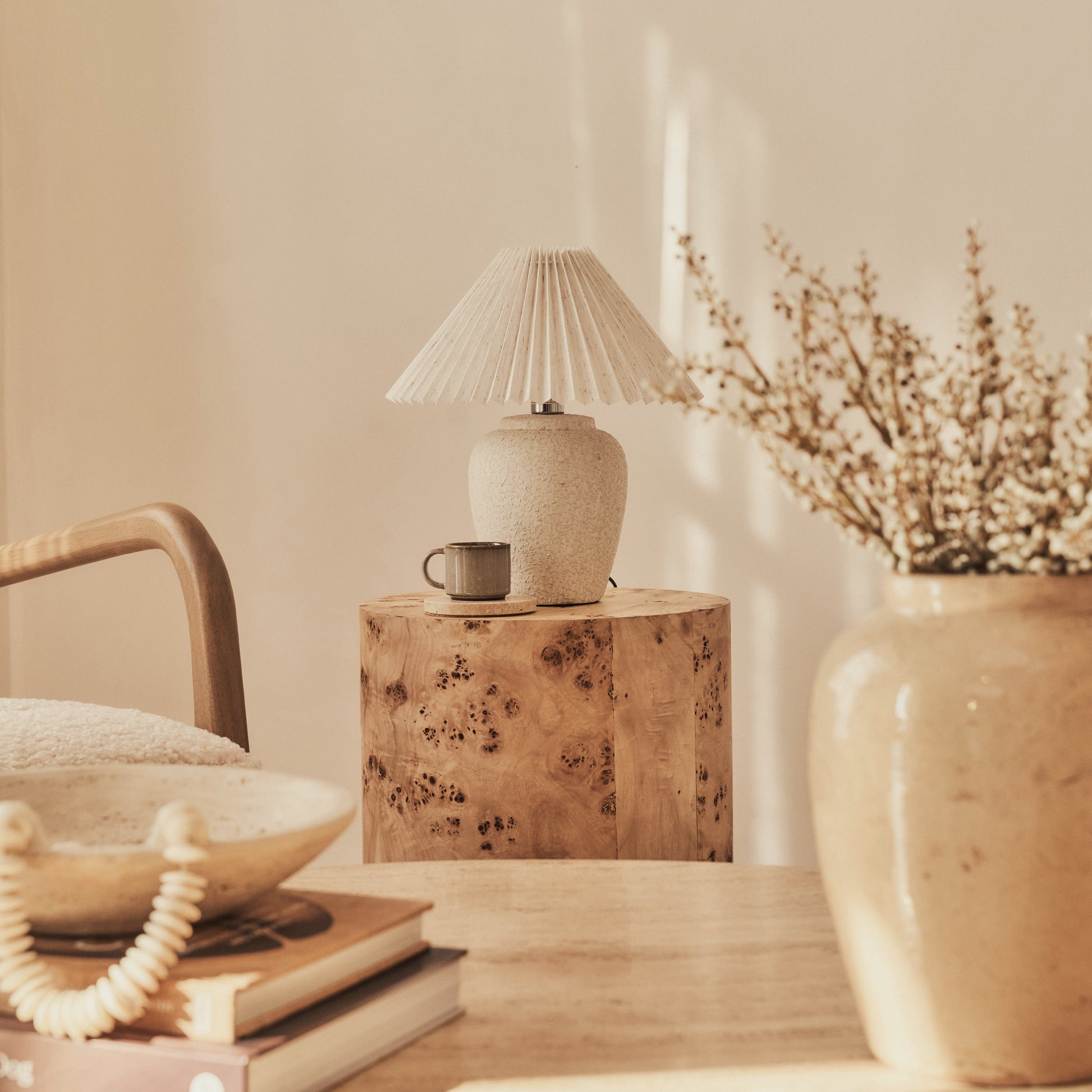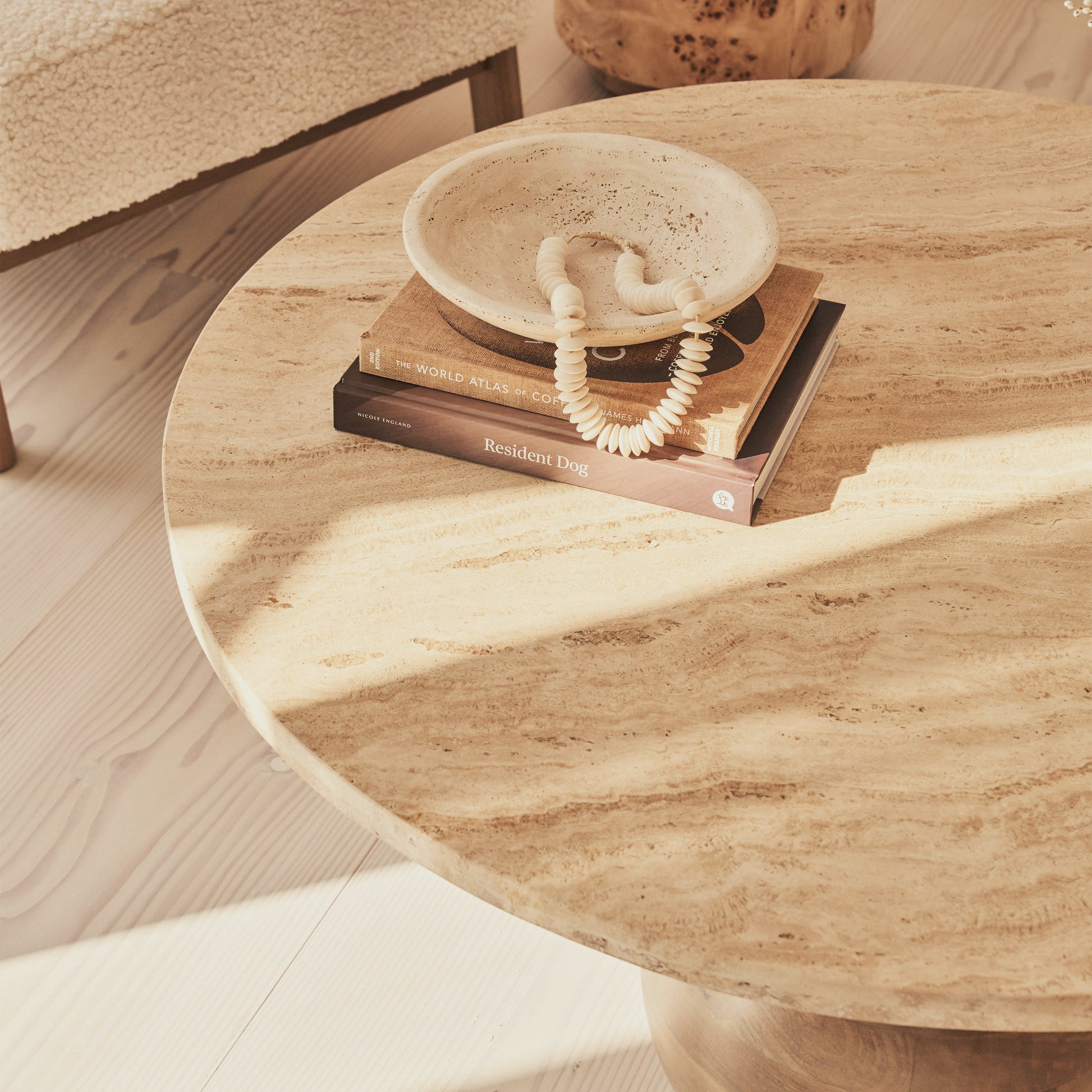 Melrose - Beige Travertine Round Warm Wood Premium Coffee Table