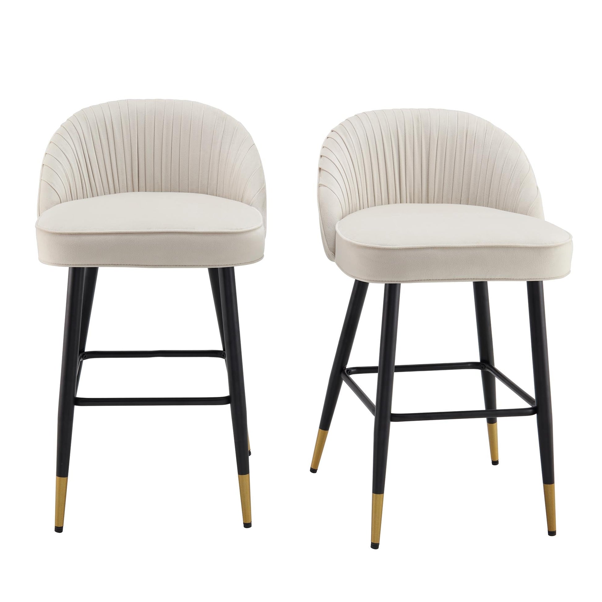 Miyae Set of 2 Pleated Champagne Beige Velvet Upholstered Counter Stools