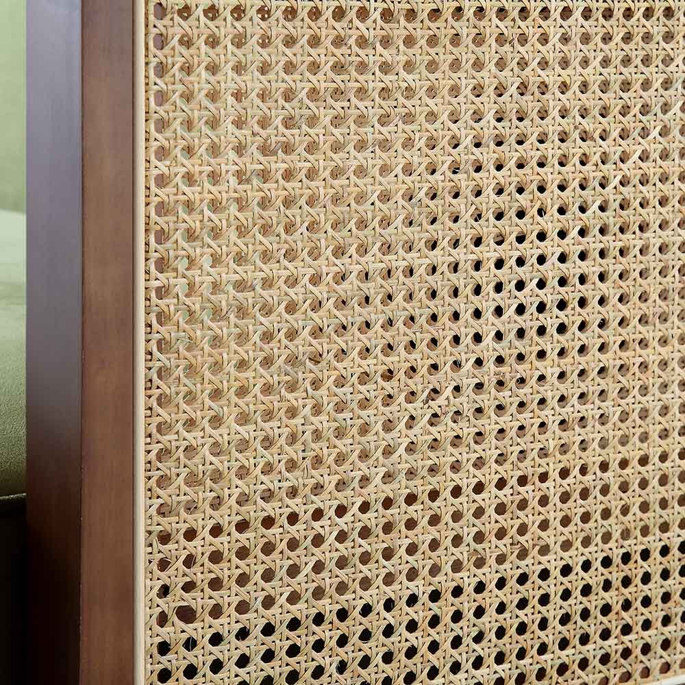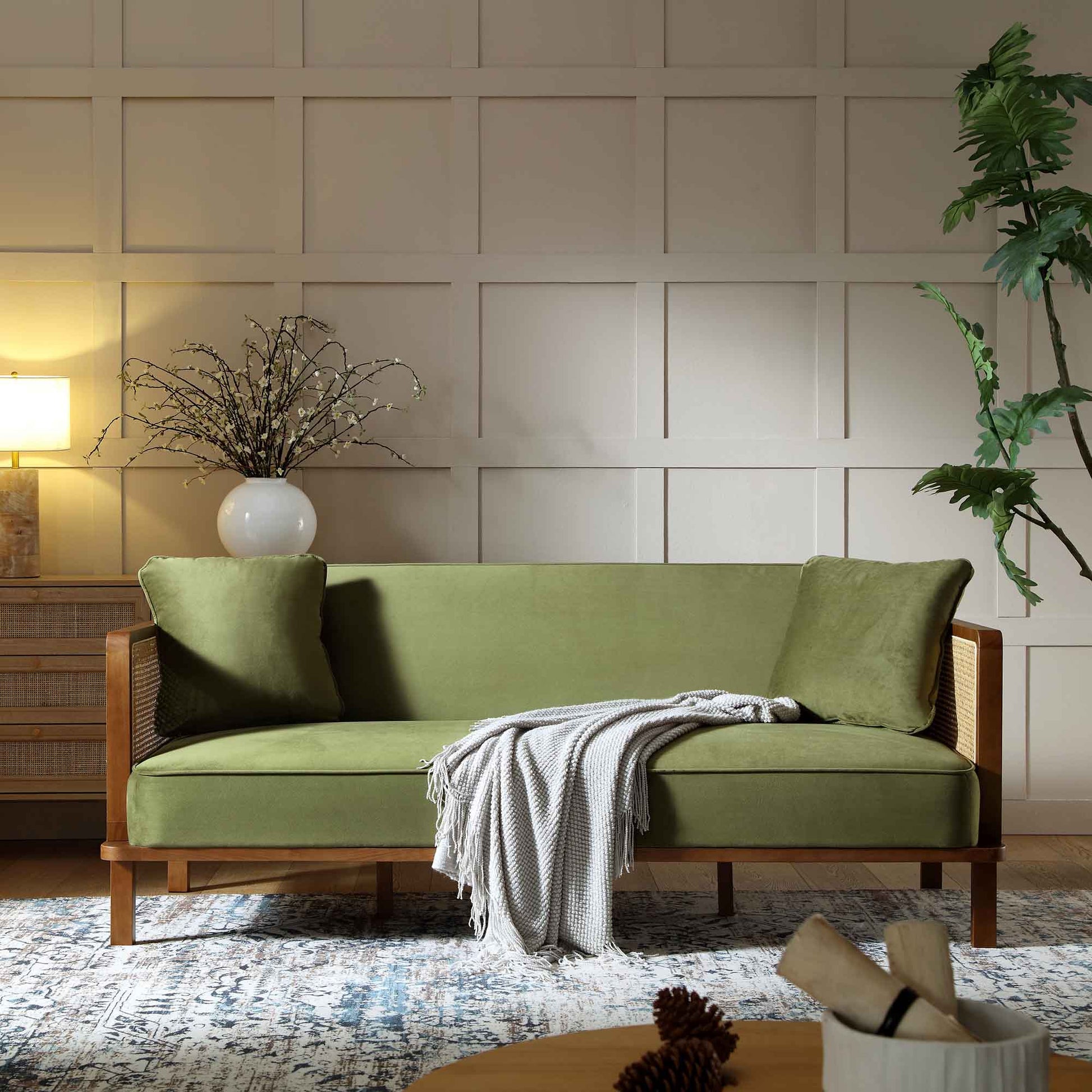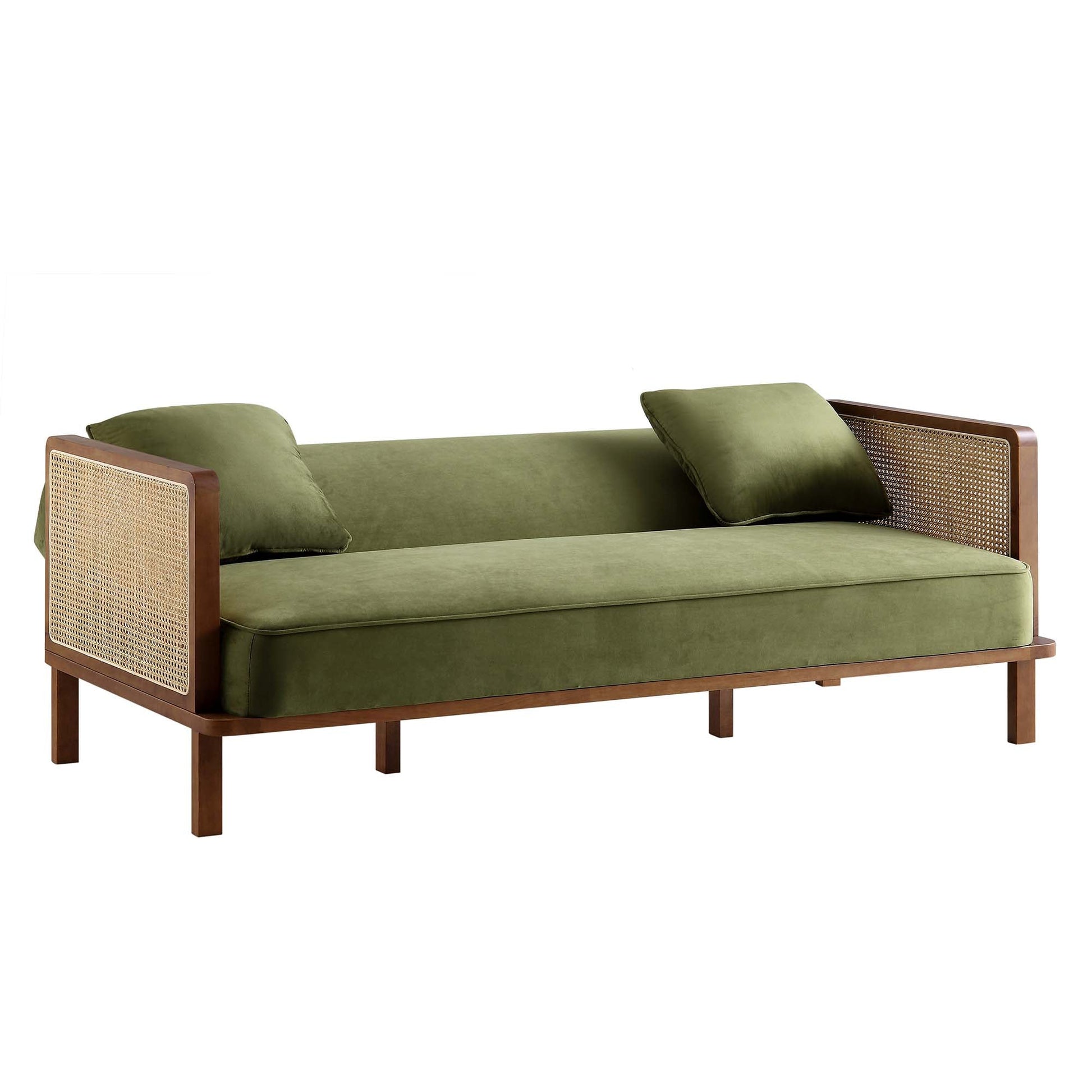 Pienza Cane Sofa Bed, Moss Green Velvet with Walnut Frame