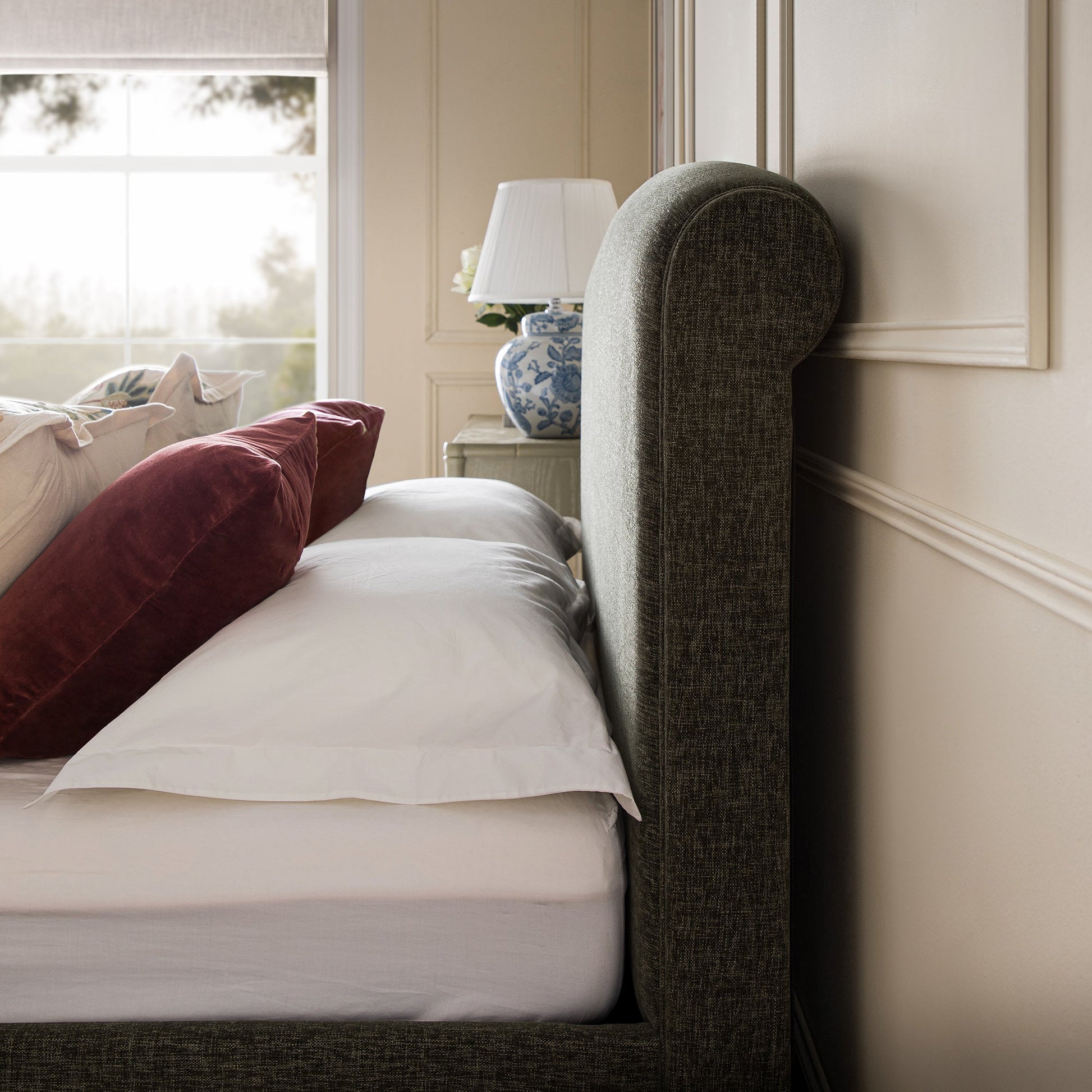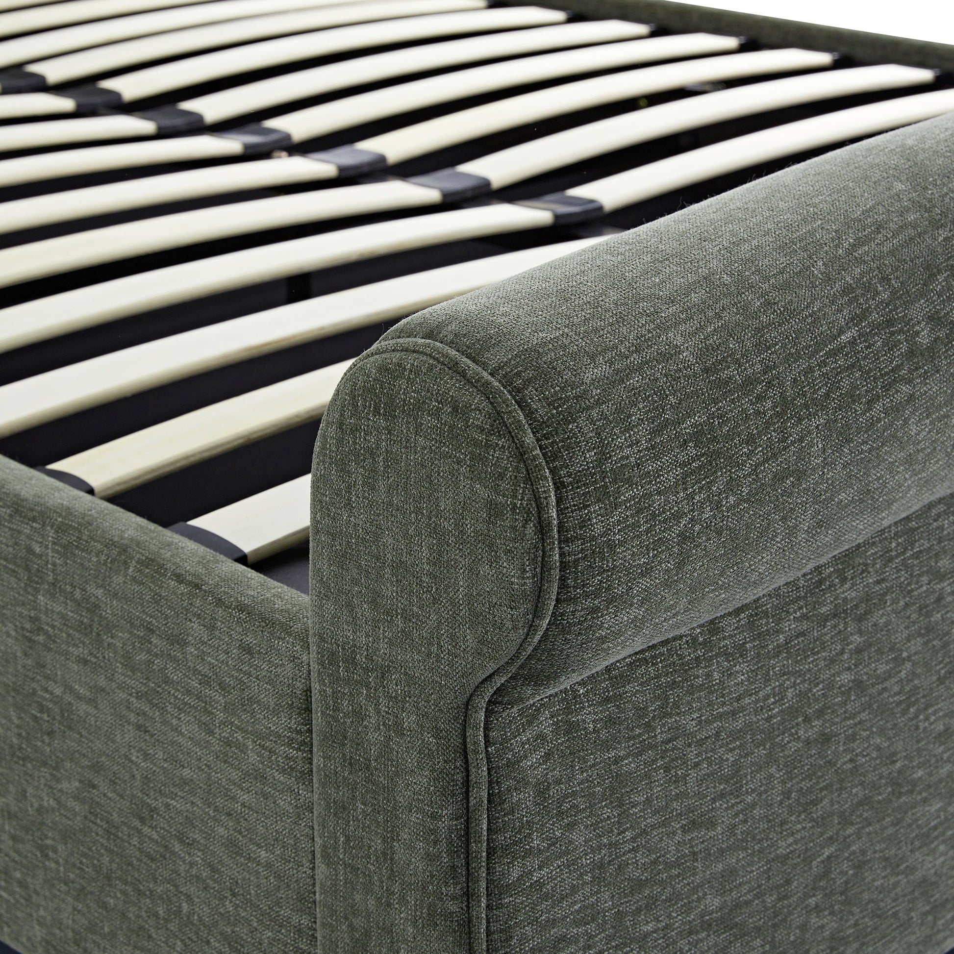 Porchester Ottoman Storage Sleigh Bed, Forest Green Chenille