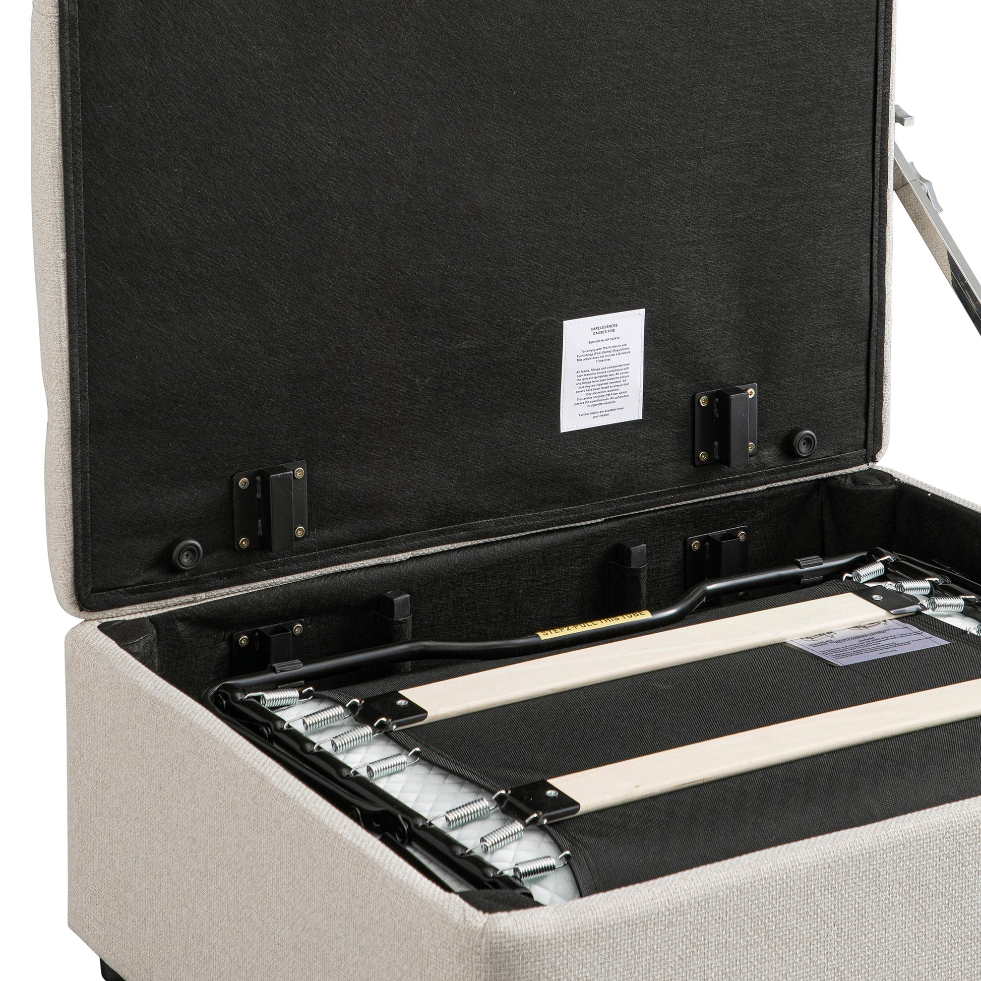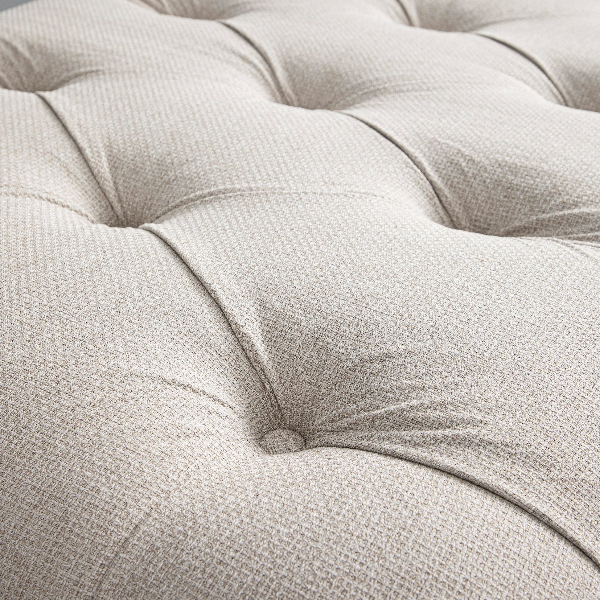 Portland Single Buttoned Fold-Out Bed in Ottoman, Beige Woven Fabric