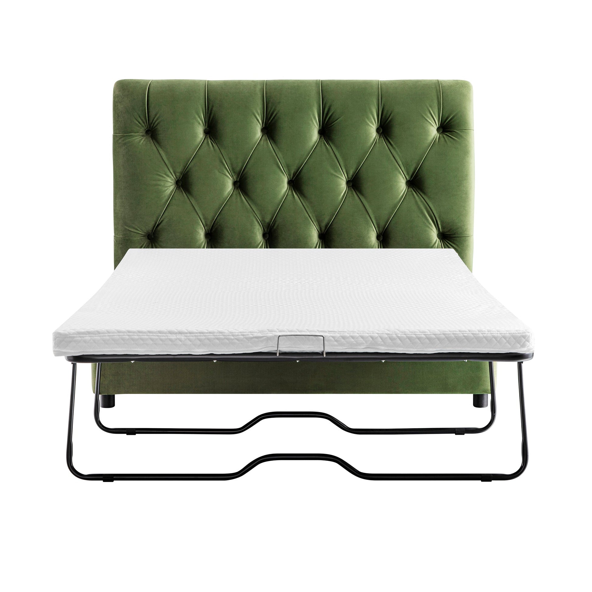 Portland Small Double Buttoned Fold-Out Bed in Ottoman, Moss Green Velvet