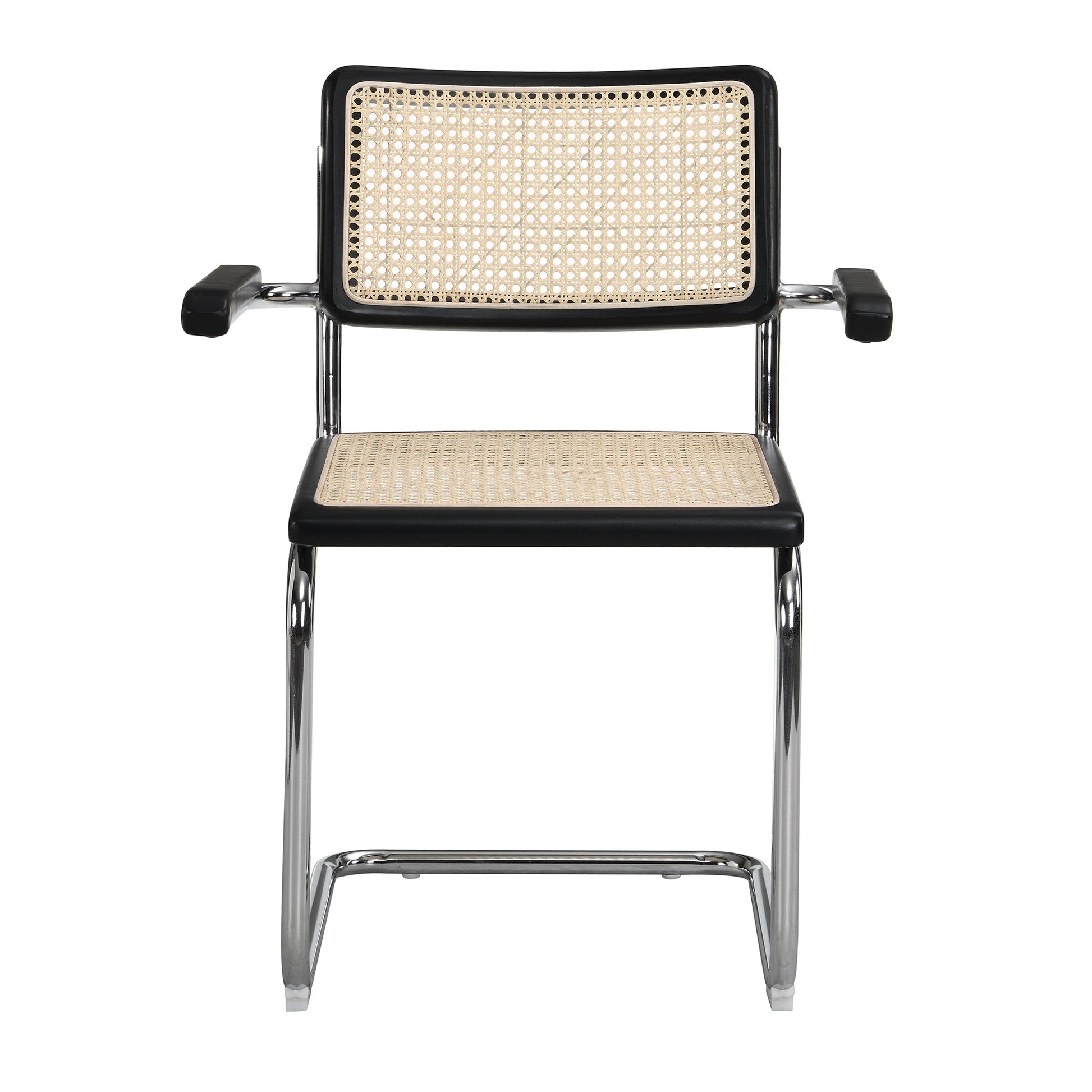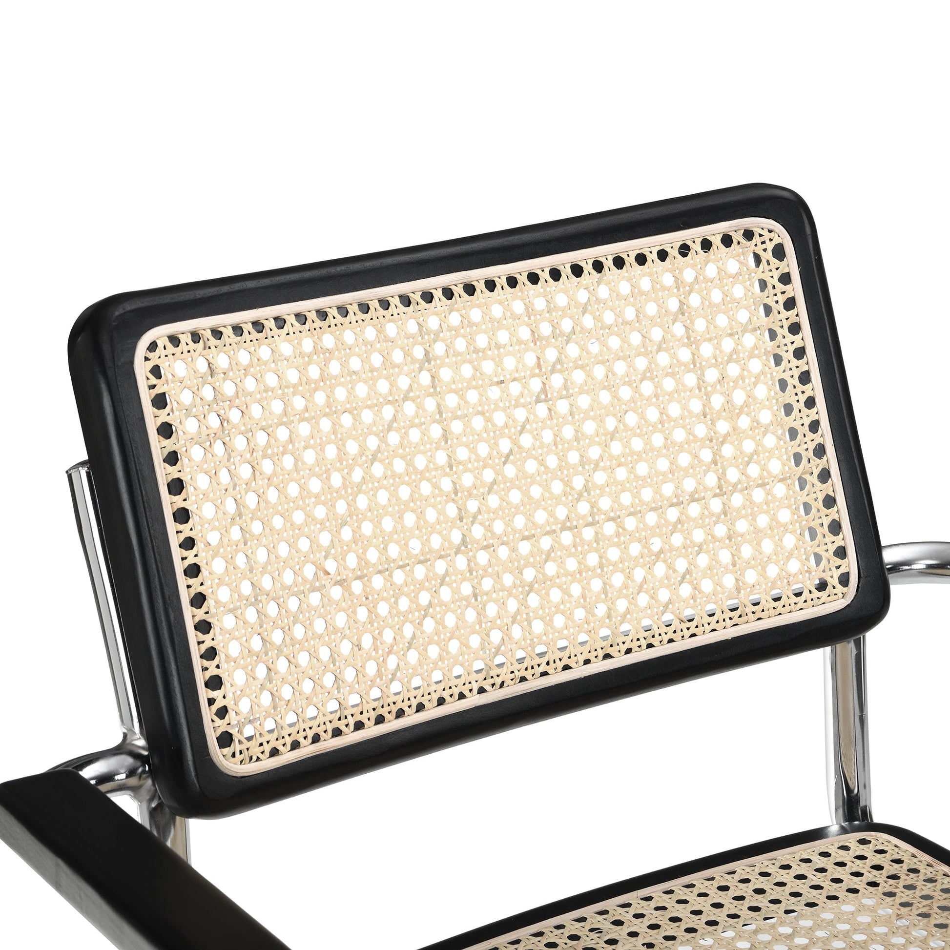 Rayna Pair of 2 Solid Beech Dining Chairs with Armrests, Natural Cane & Chrome (Black)
