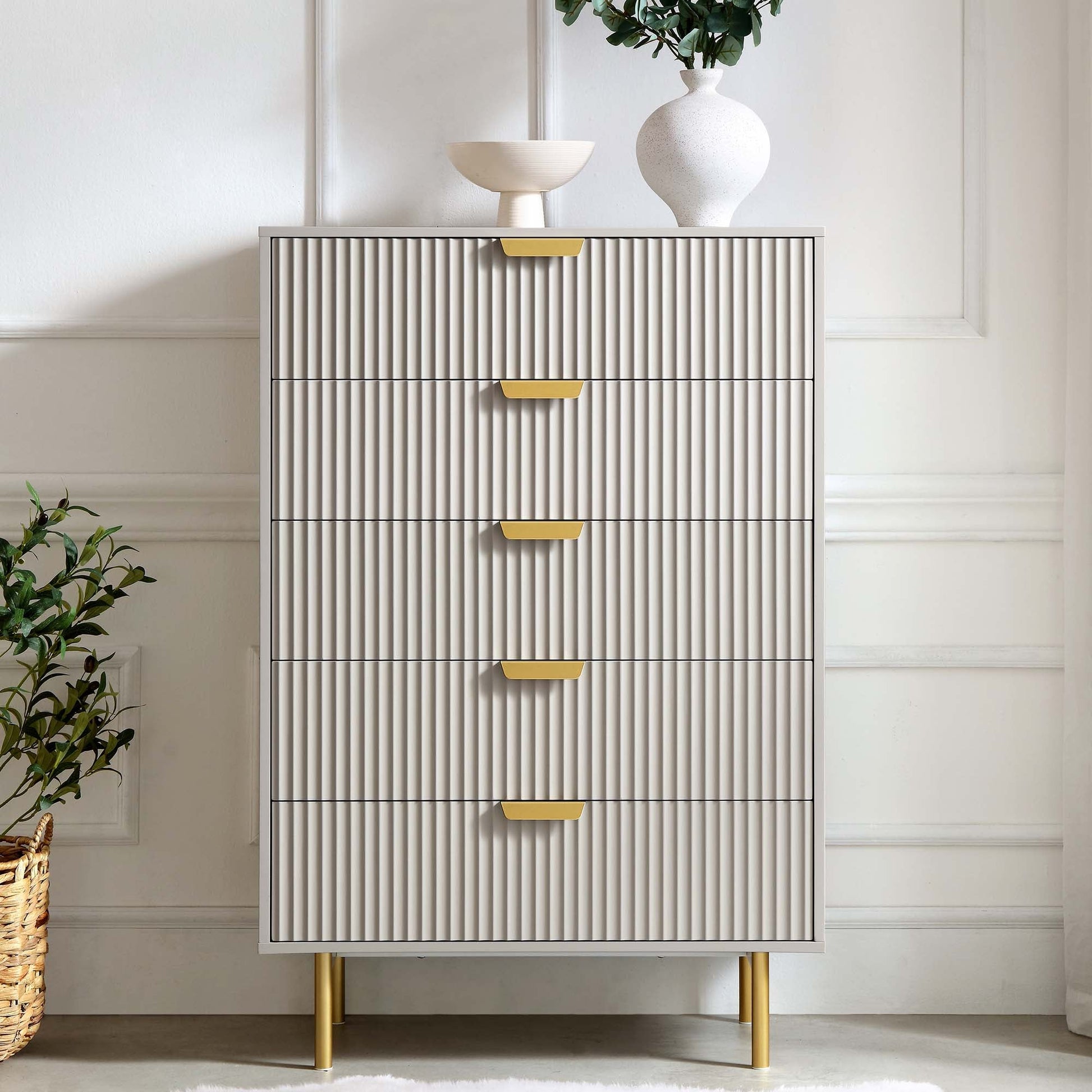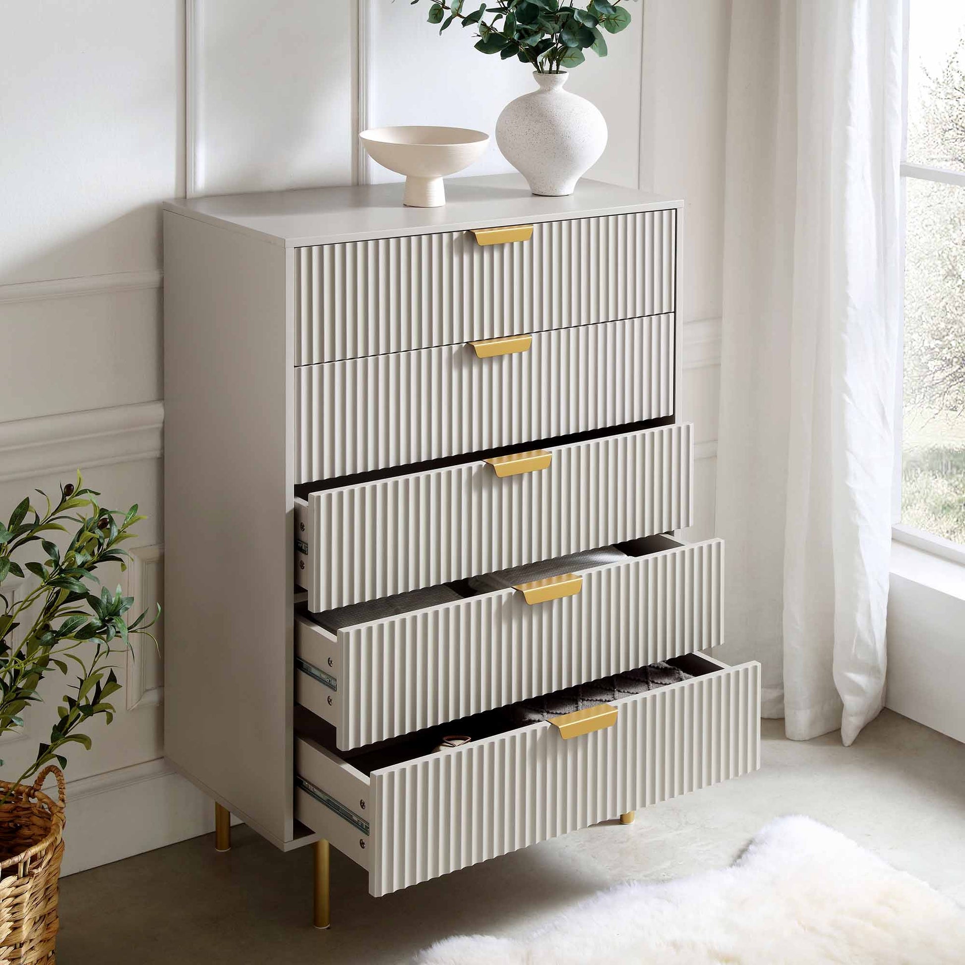 Richmond Ridged Chest of 5 Drawers, Matte Taupe