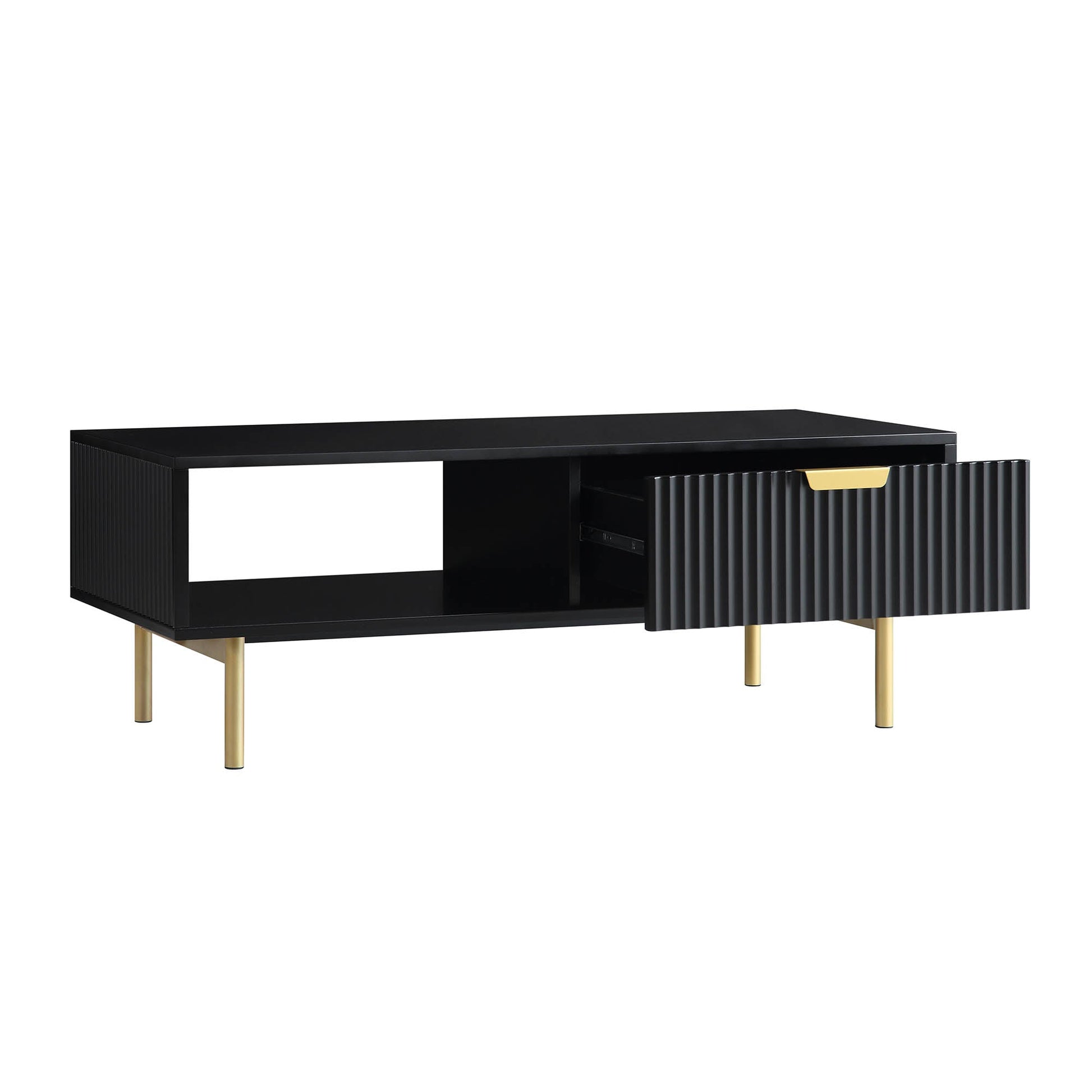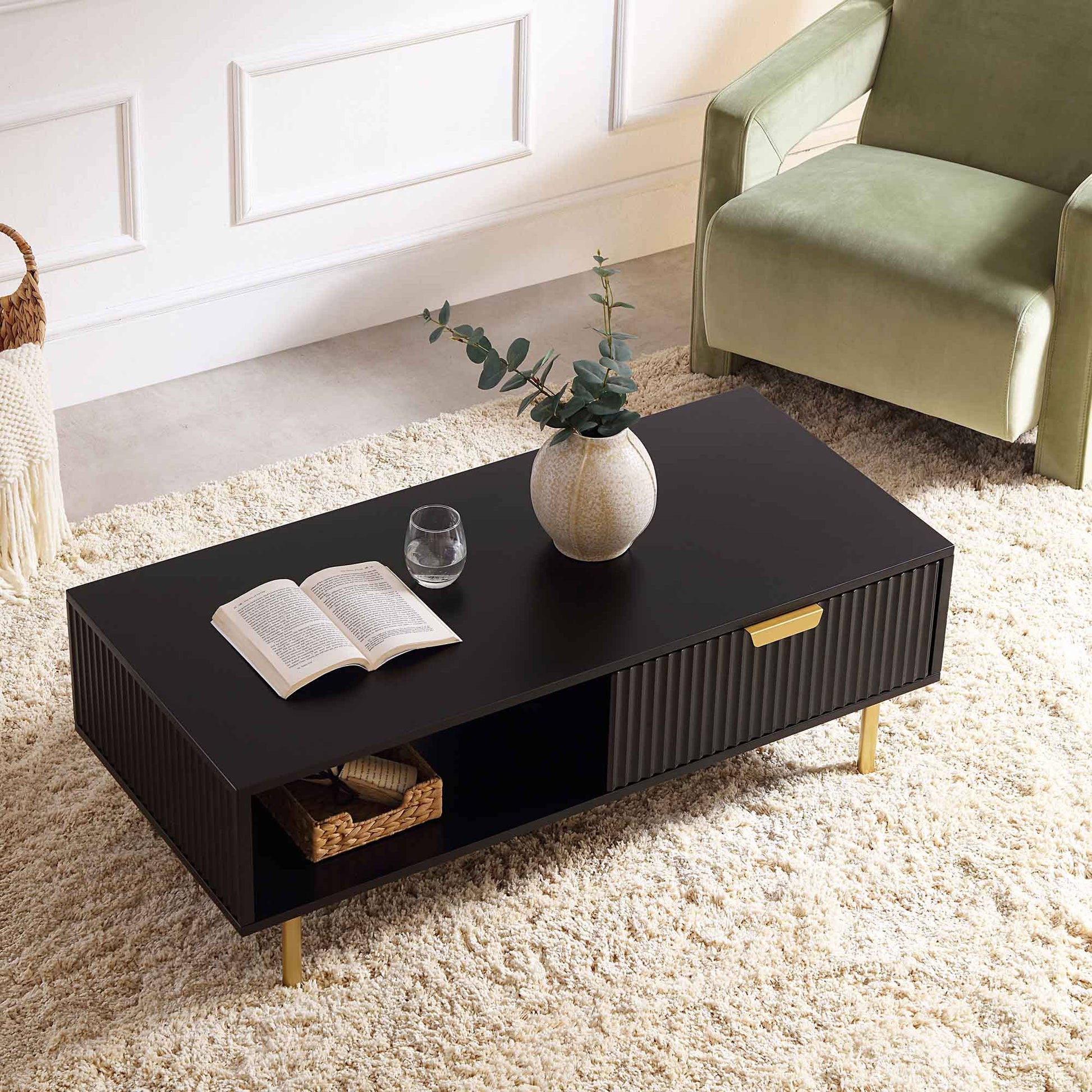 Richmond Ridged Coffee Table with Drawer, Matte Black